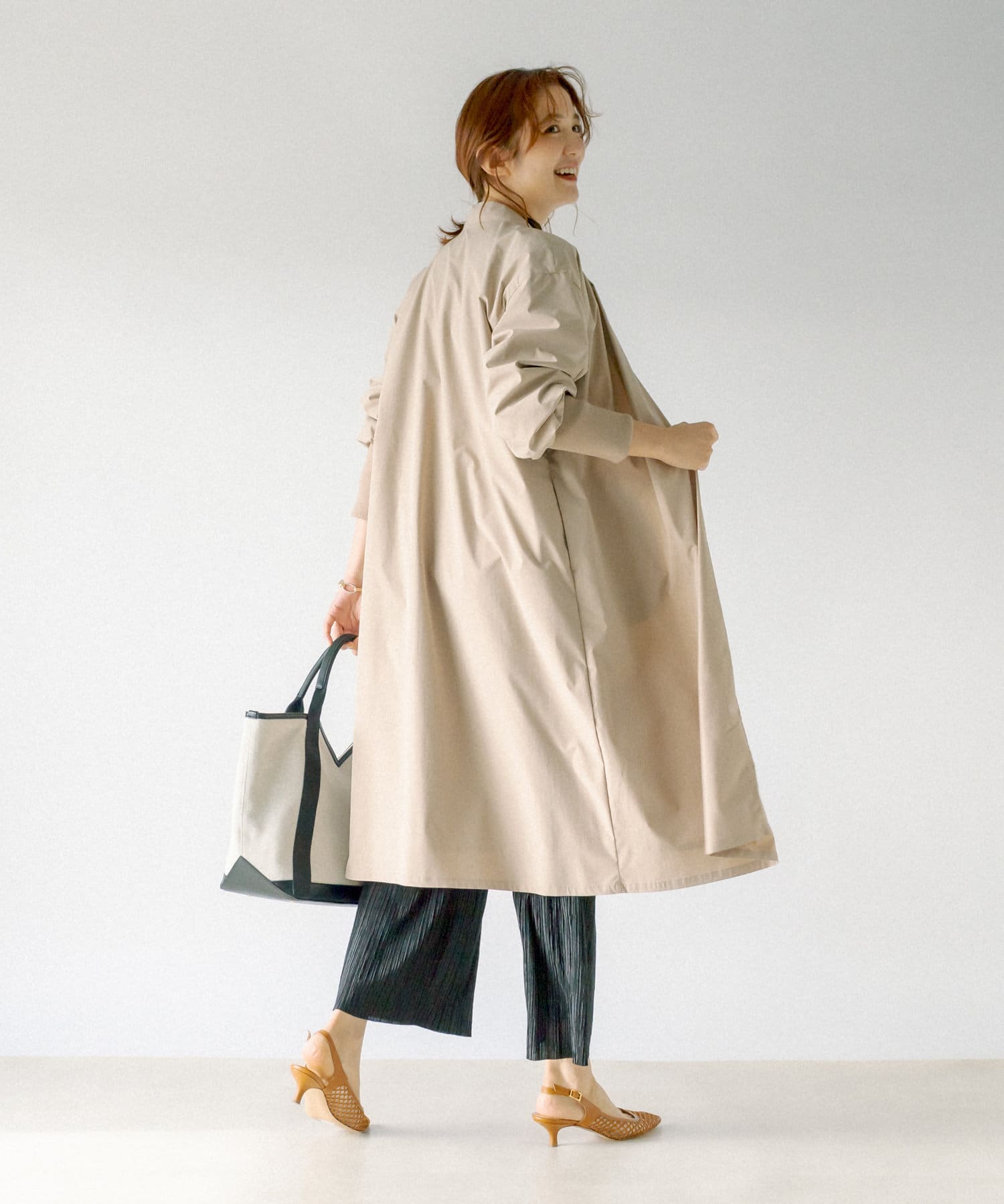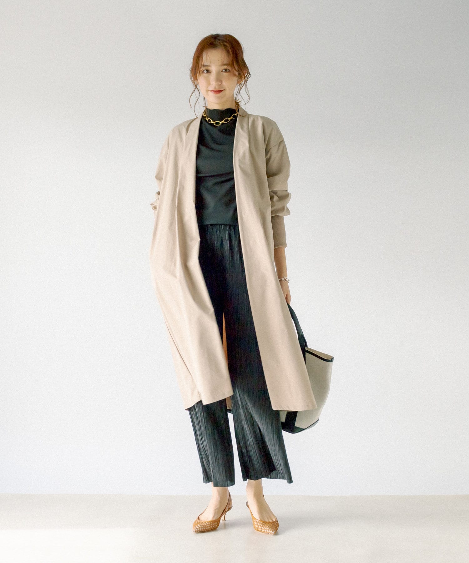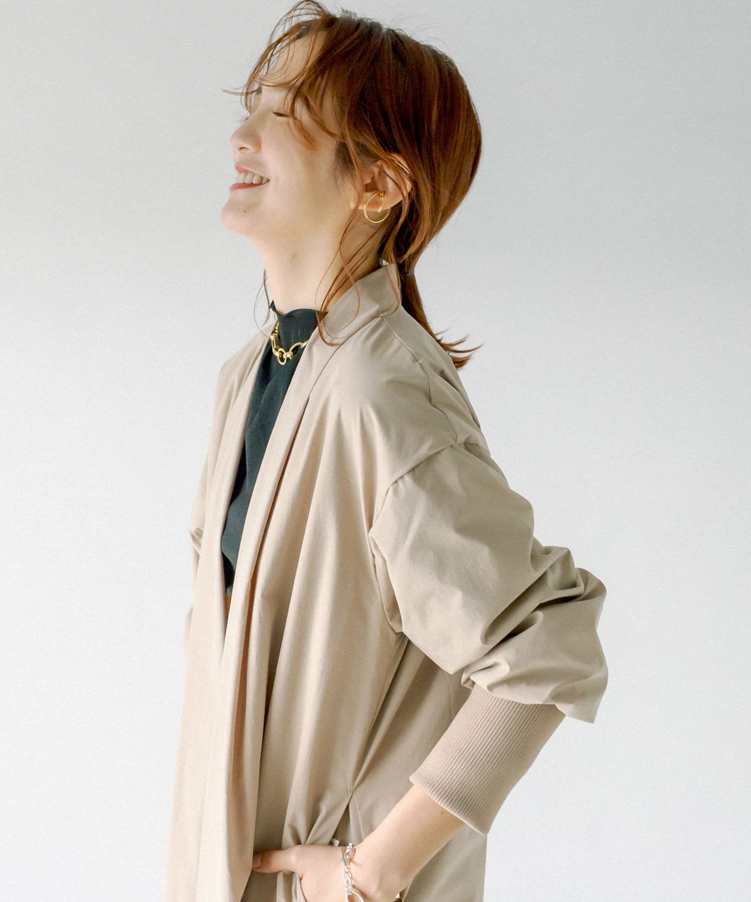釦レスでさらっと着用頂けるガウンコート。