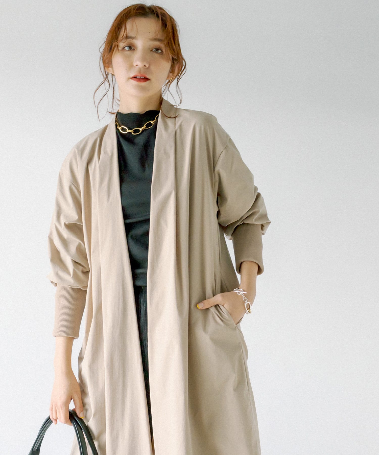 【LIVE紹介・さらっと羽織って決まる】袖リブガウンコート(RDZ1021108A0001)