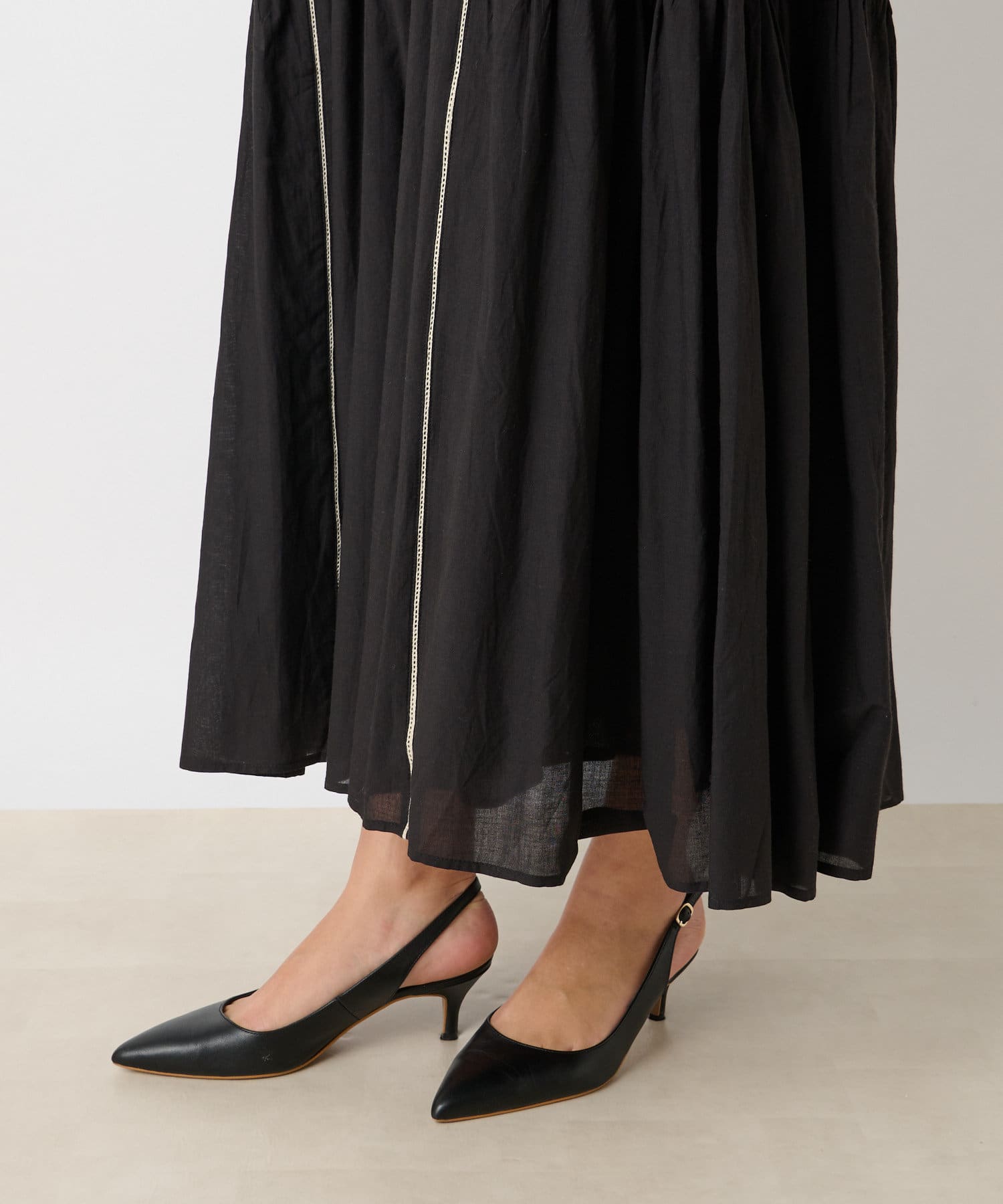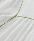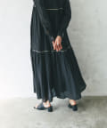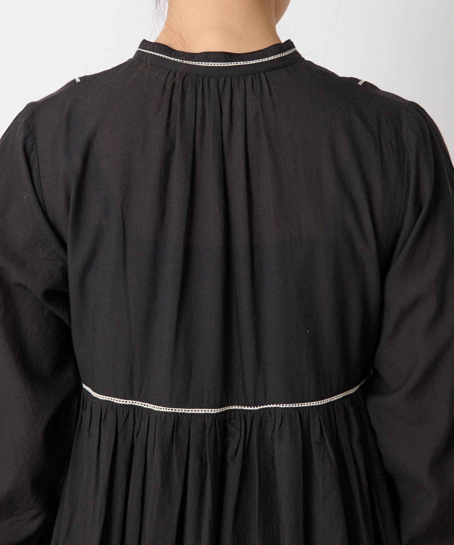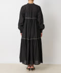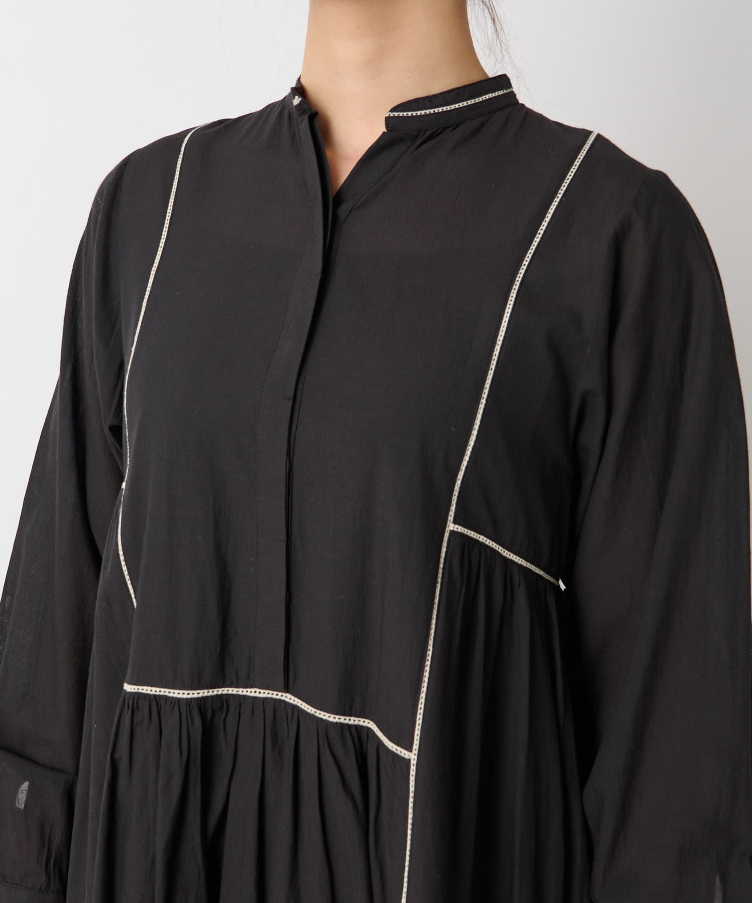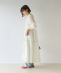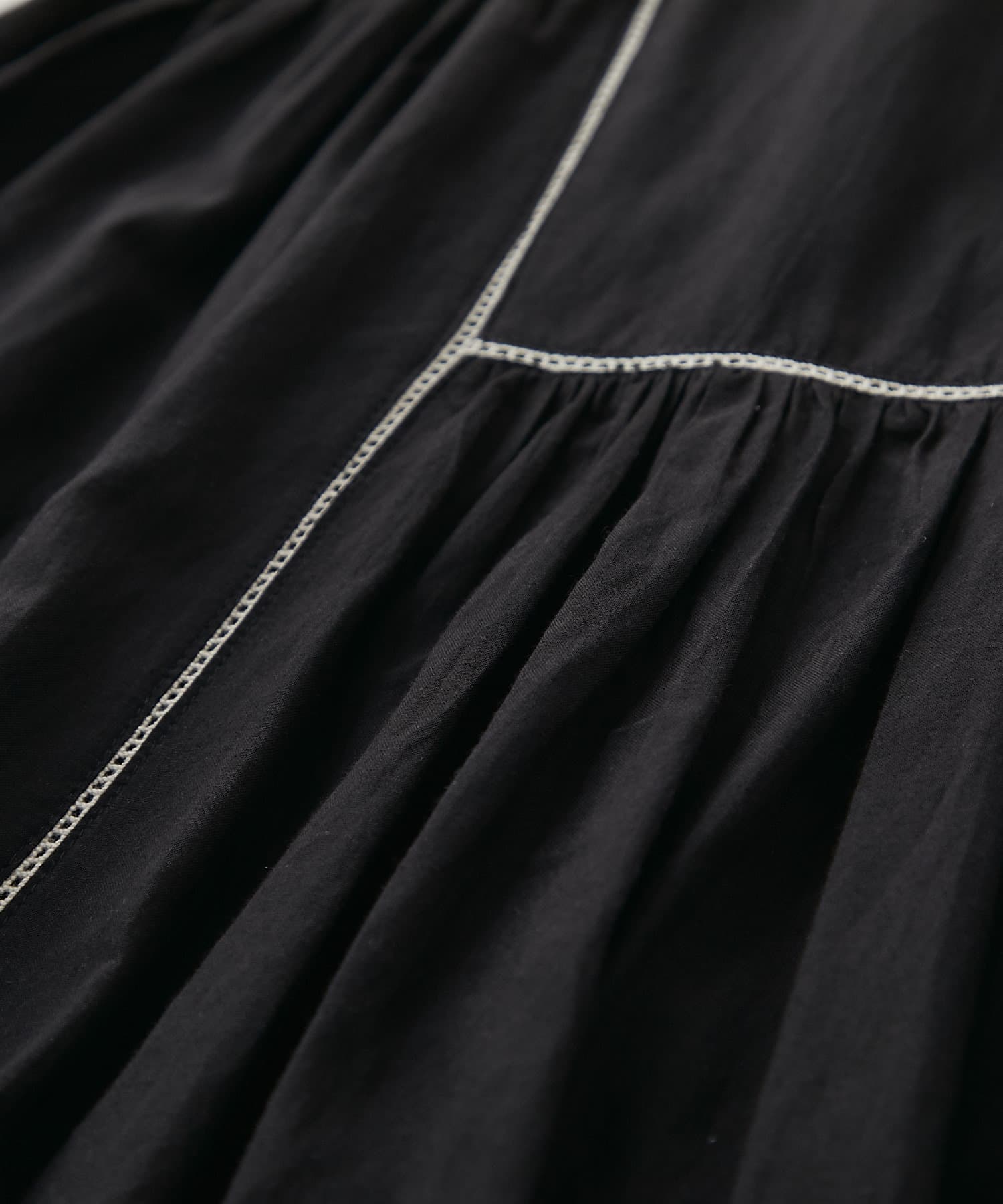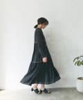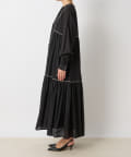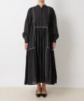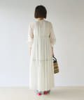 華奢な細レースで切り替えたワンピースに細かくギャザーを入れたティアードデザイン。