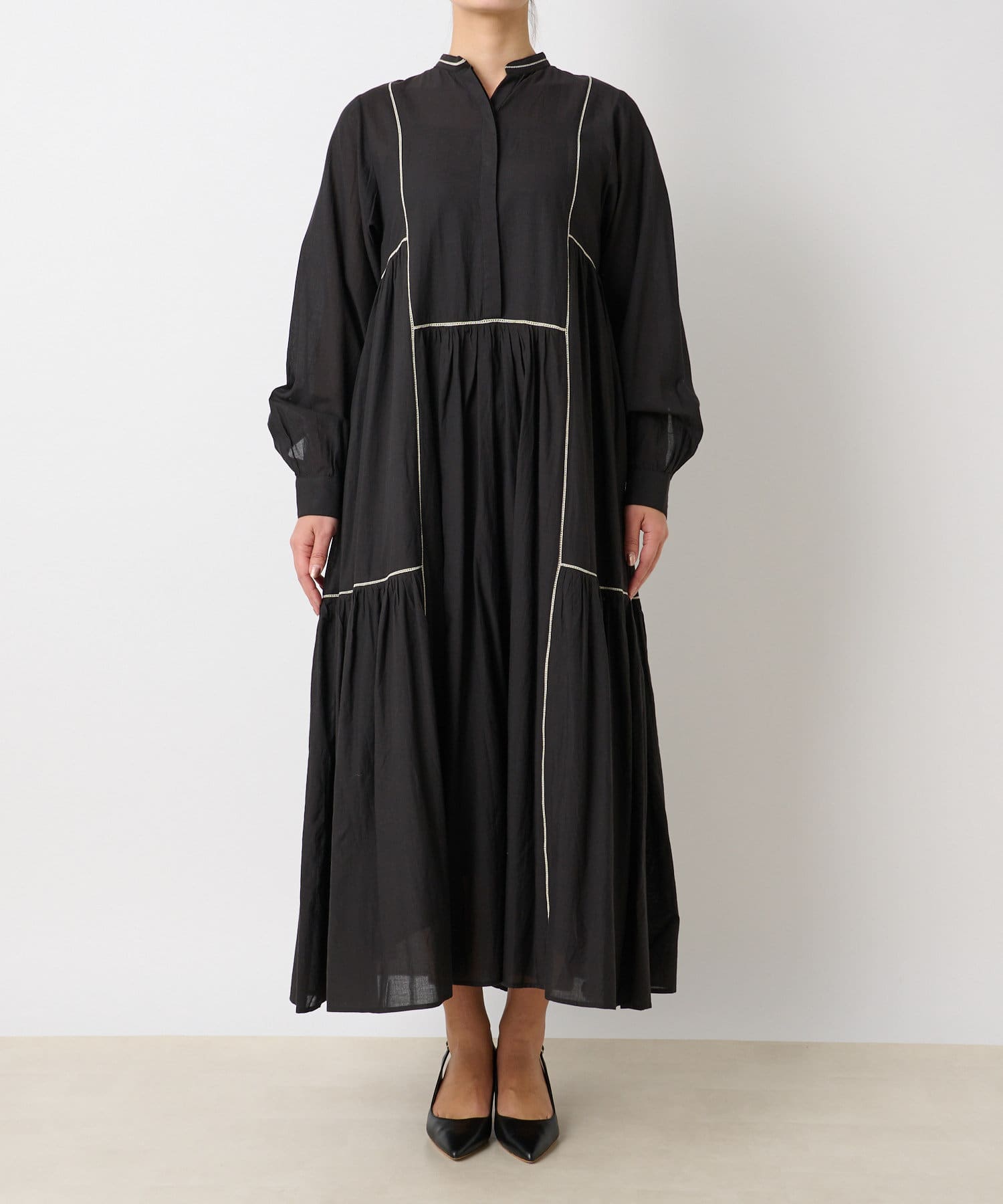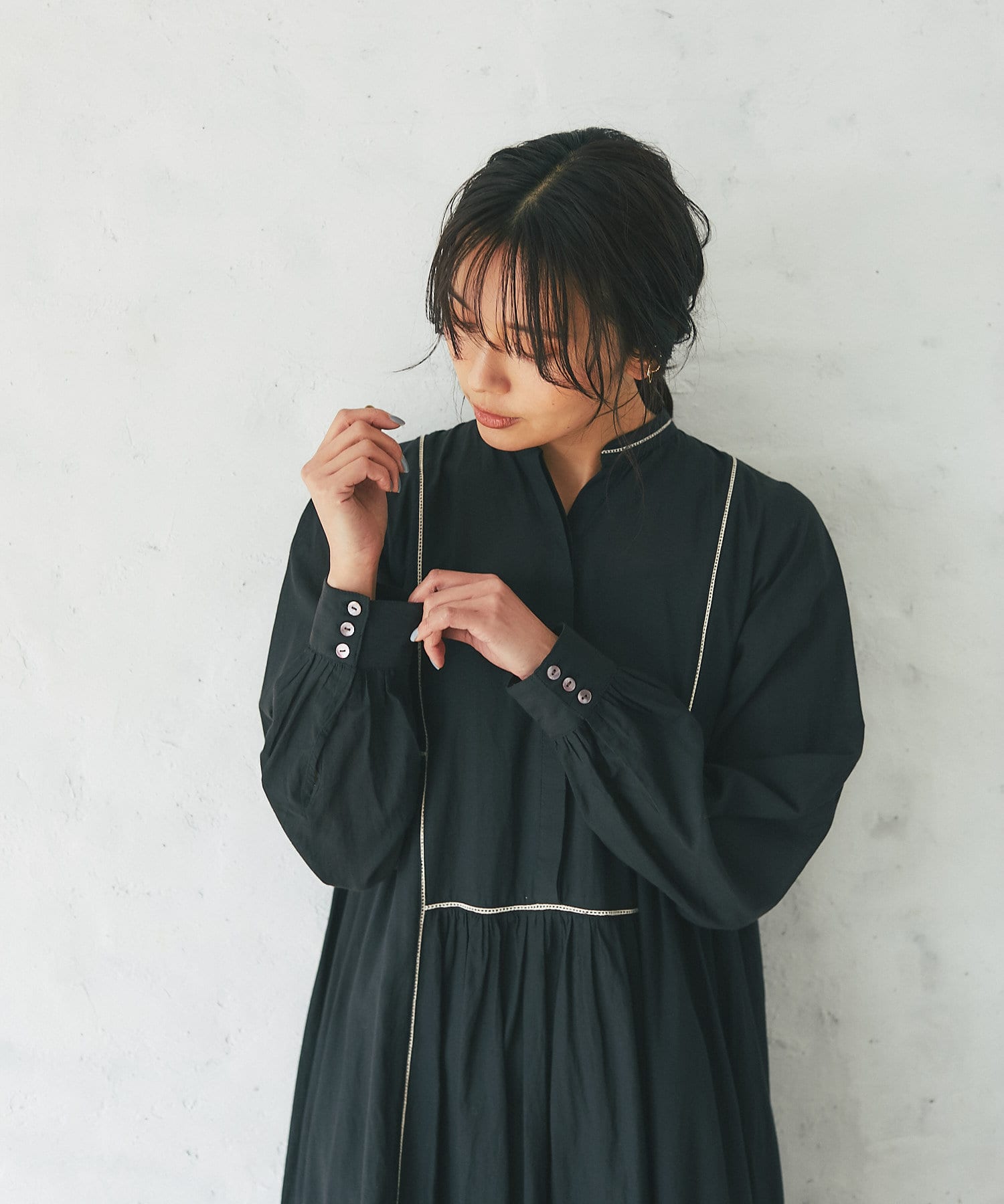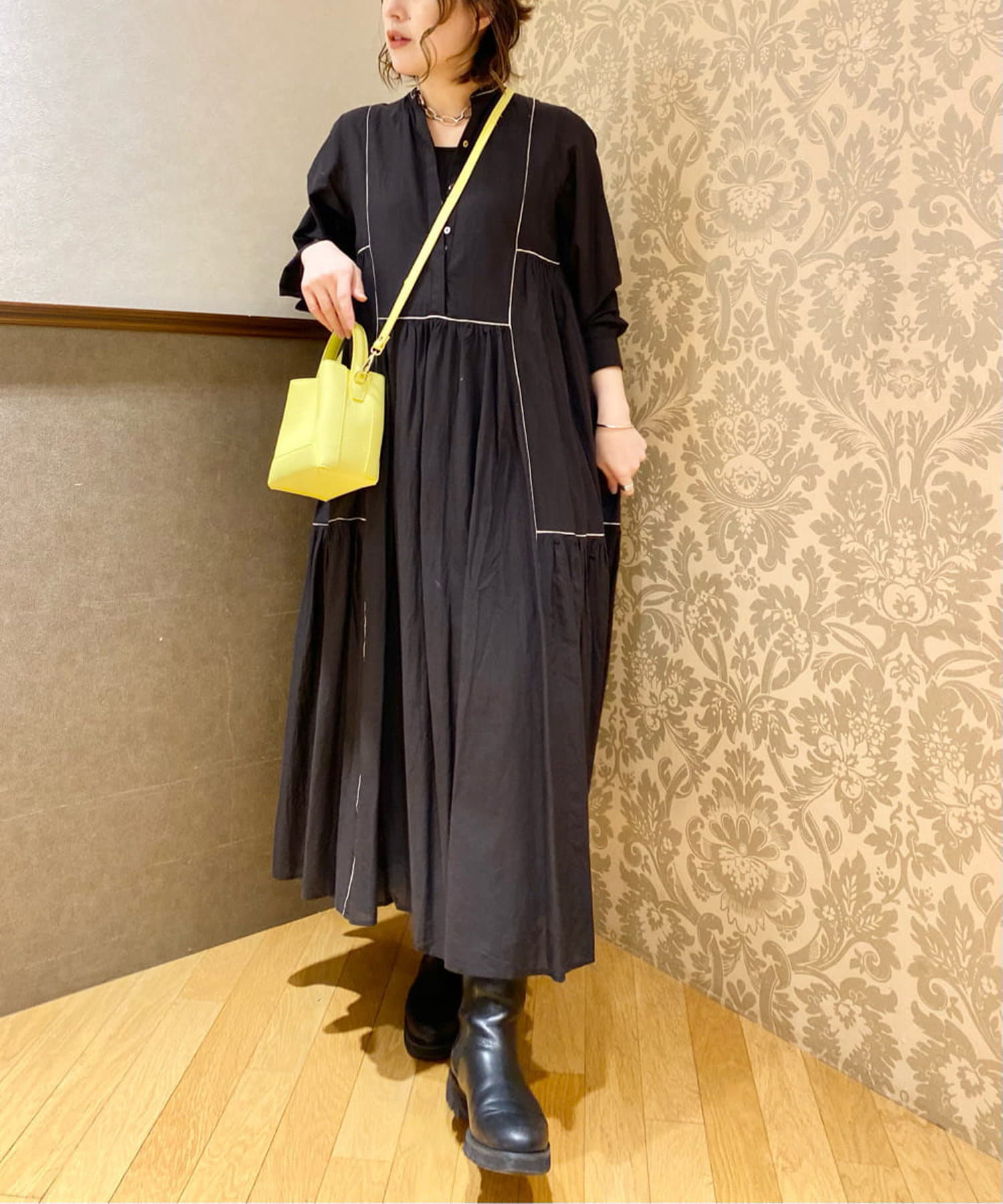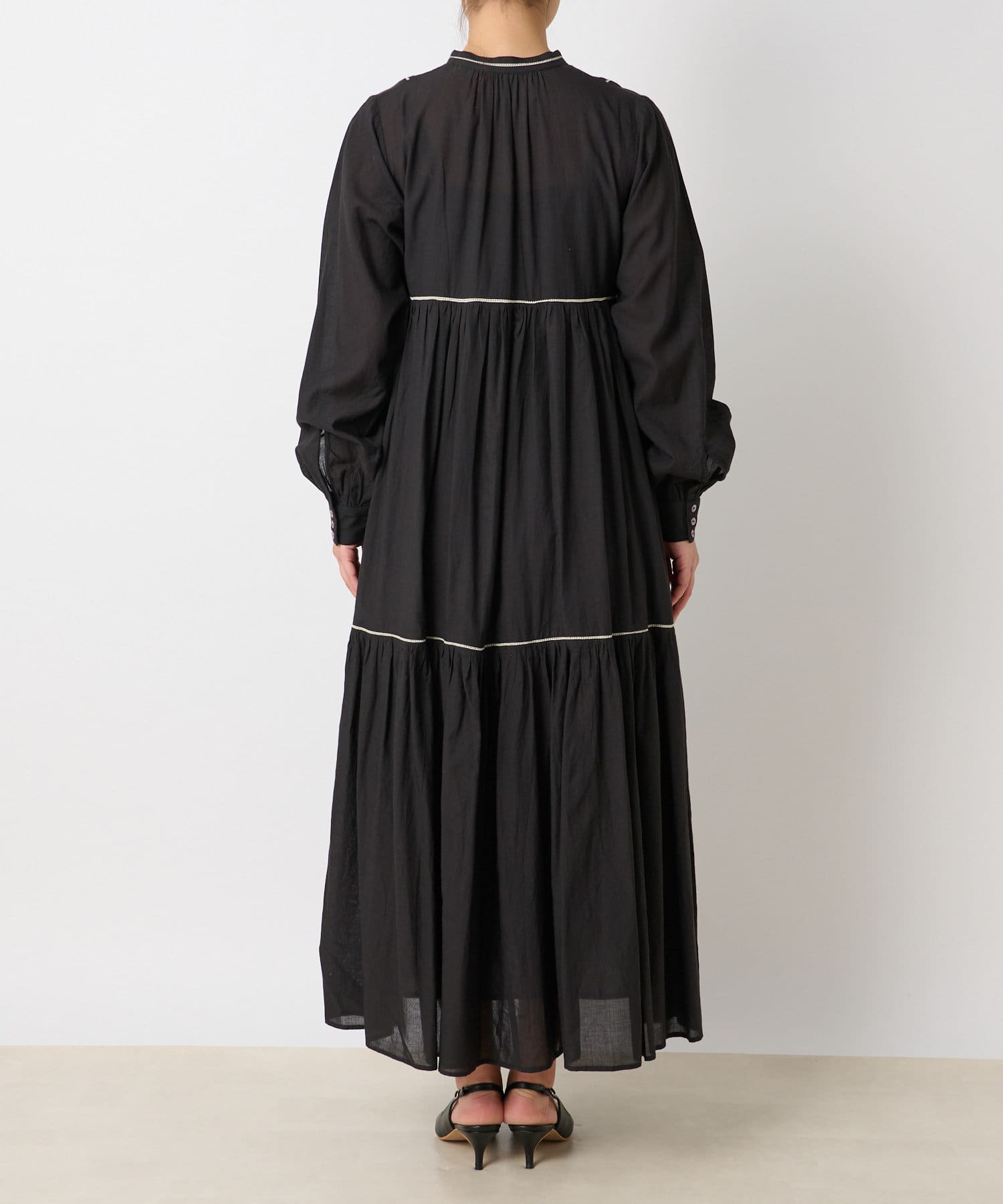 らかく、とても着やすいワンピースです。 細かく入ったギャザーがポイントで、ティアードデザインがかわいいです。 ネックラインを綺麗に見せてくれる前開きデザインが大人女性らしくまとまります。