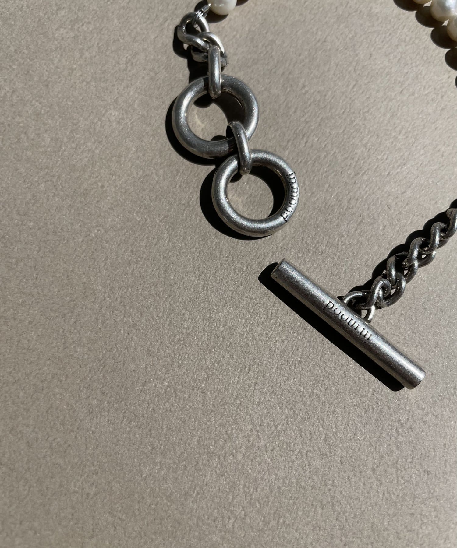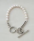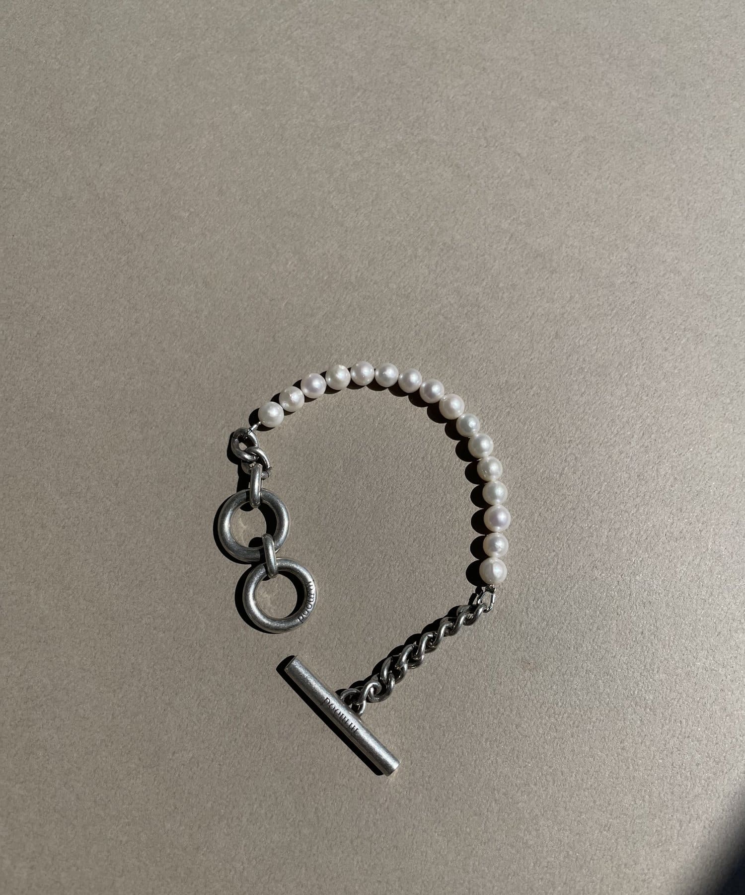 6ミリサイズの淡水パールとCURBチェーンをMIXしたブレスレット。