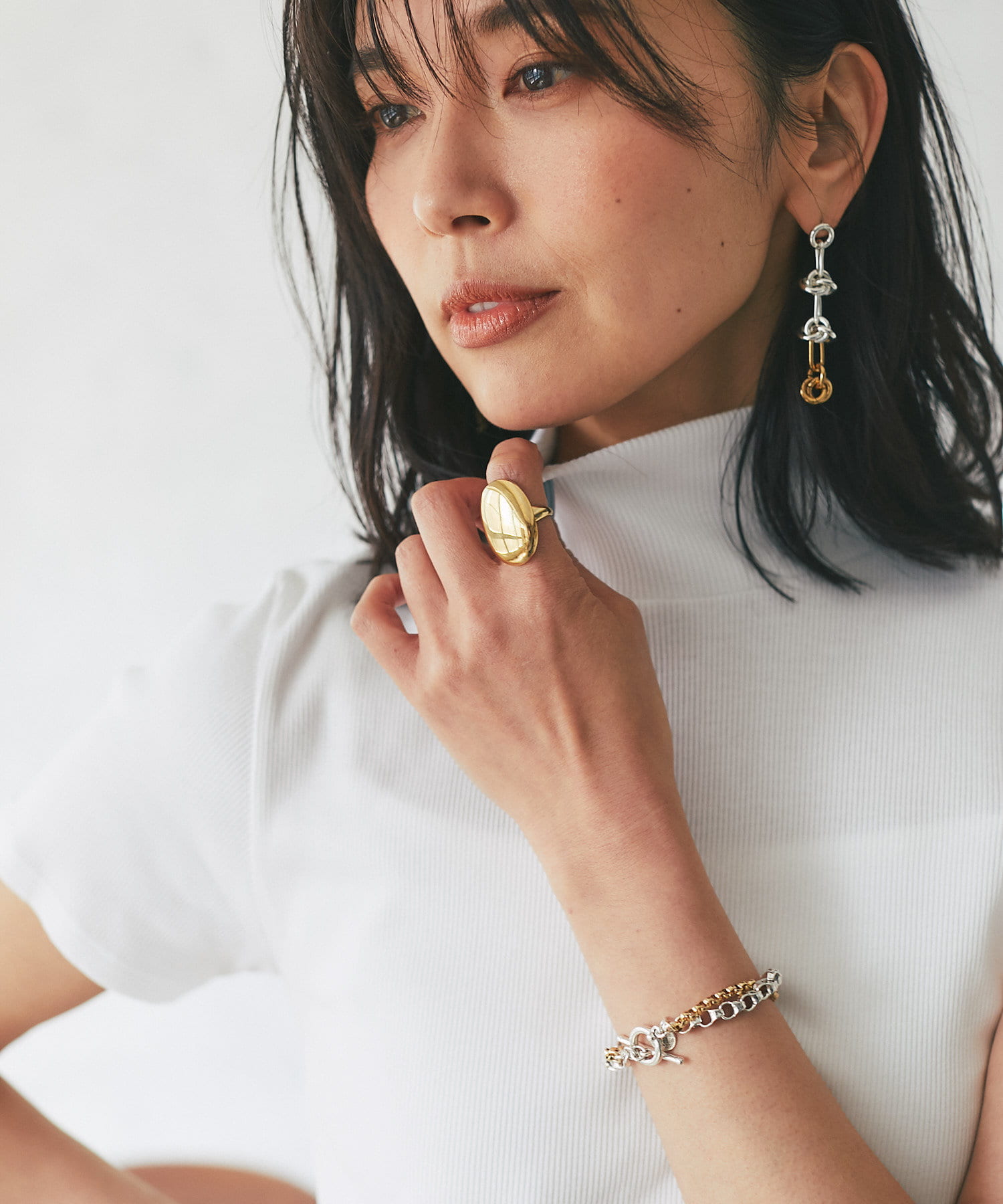シルバーとゴールドの配色カラーにより、カジュアルにもキレイ目のスタイルどちらのスタイルにもおすすめです。