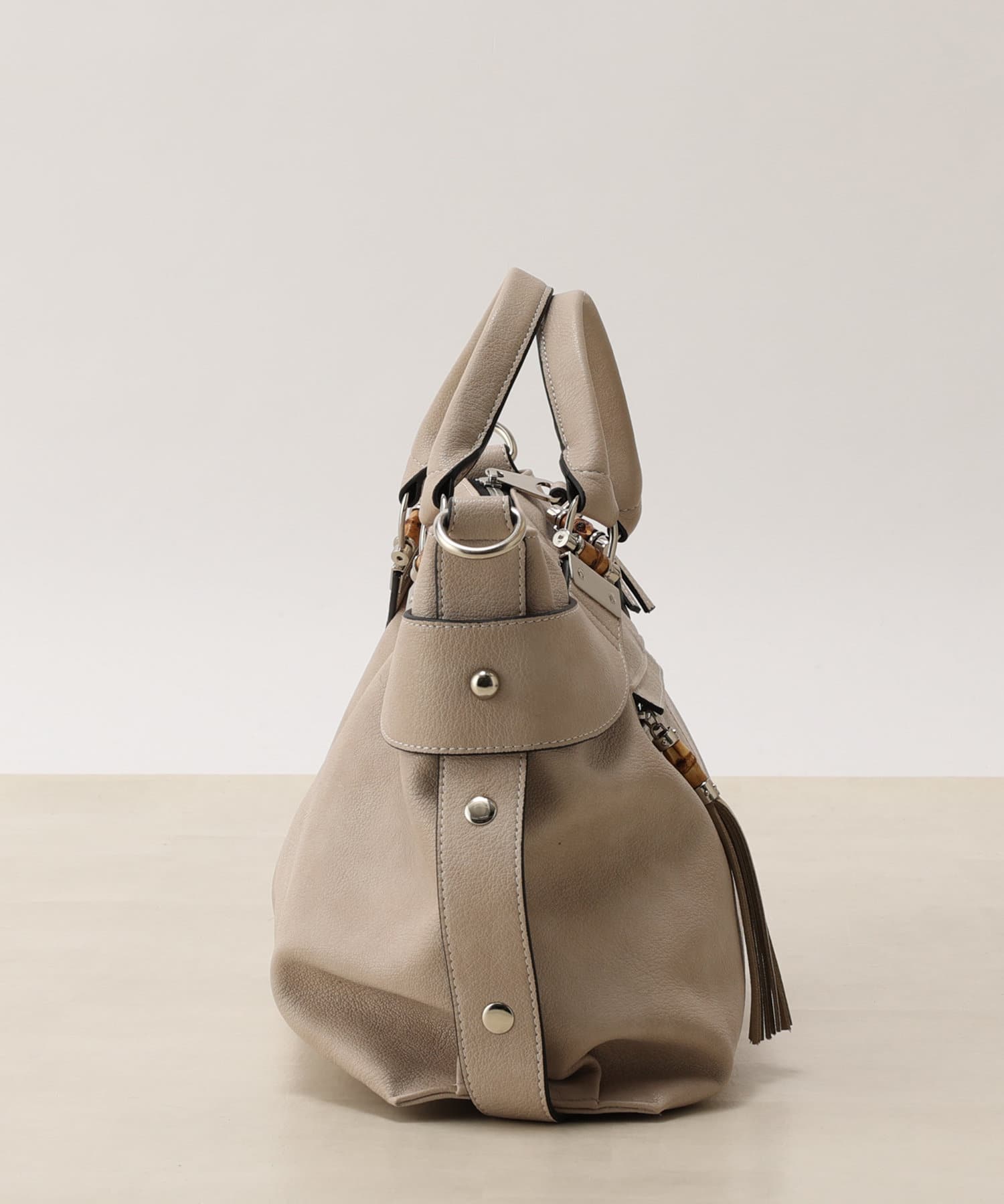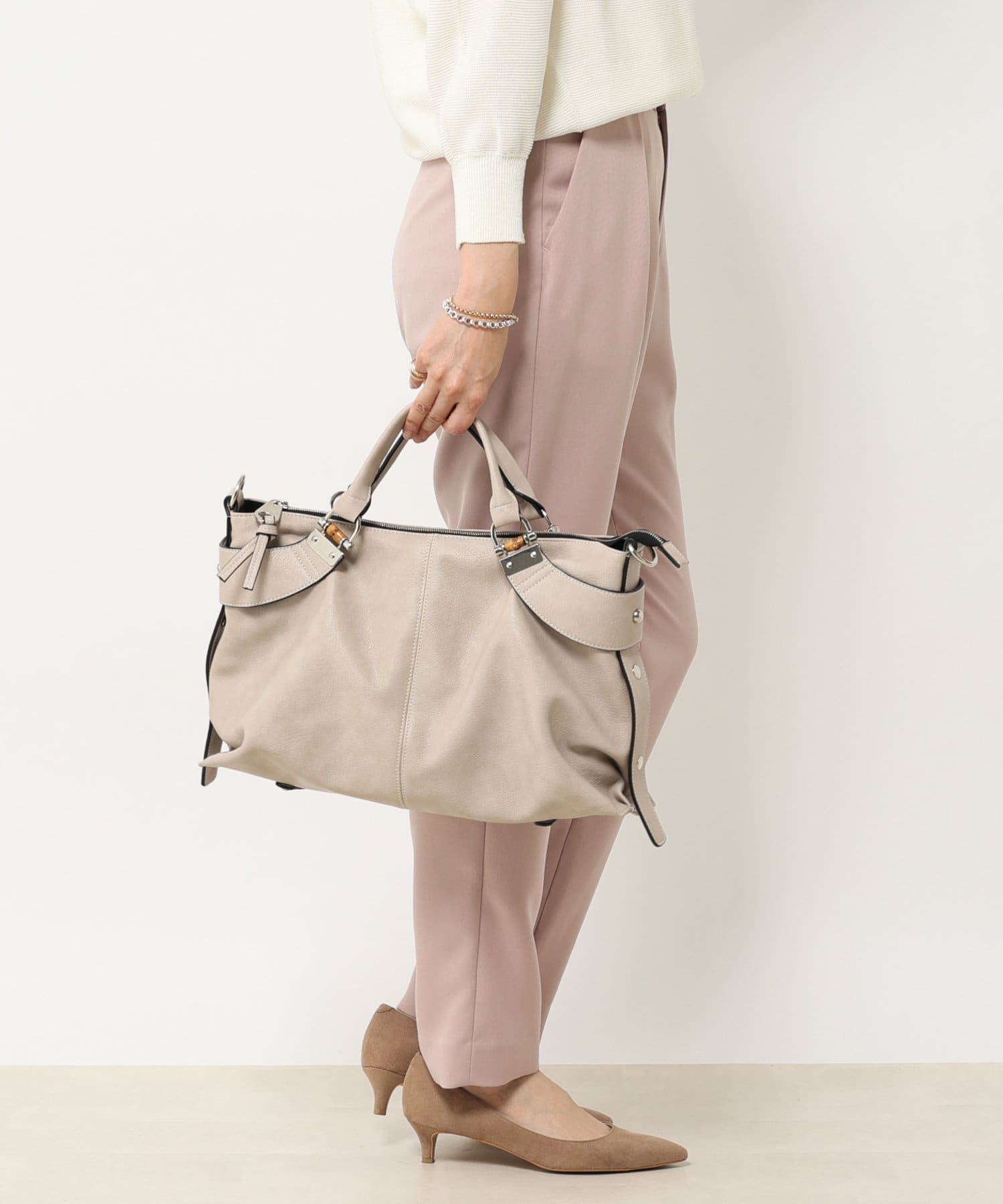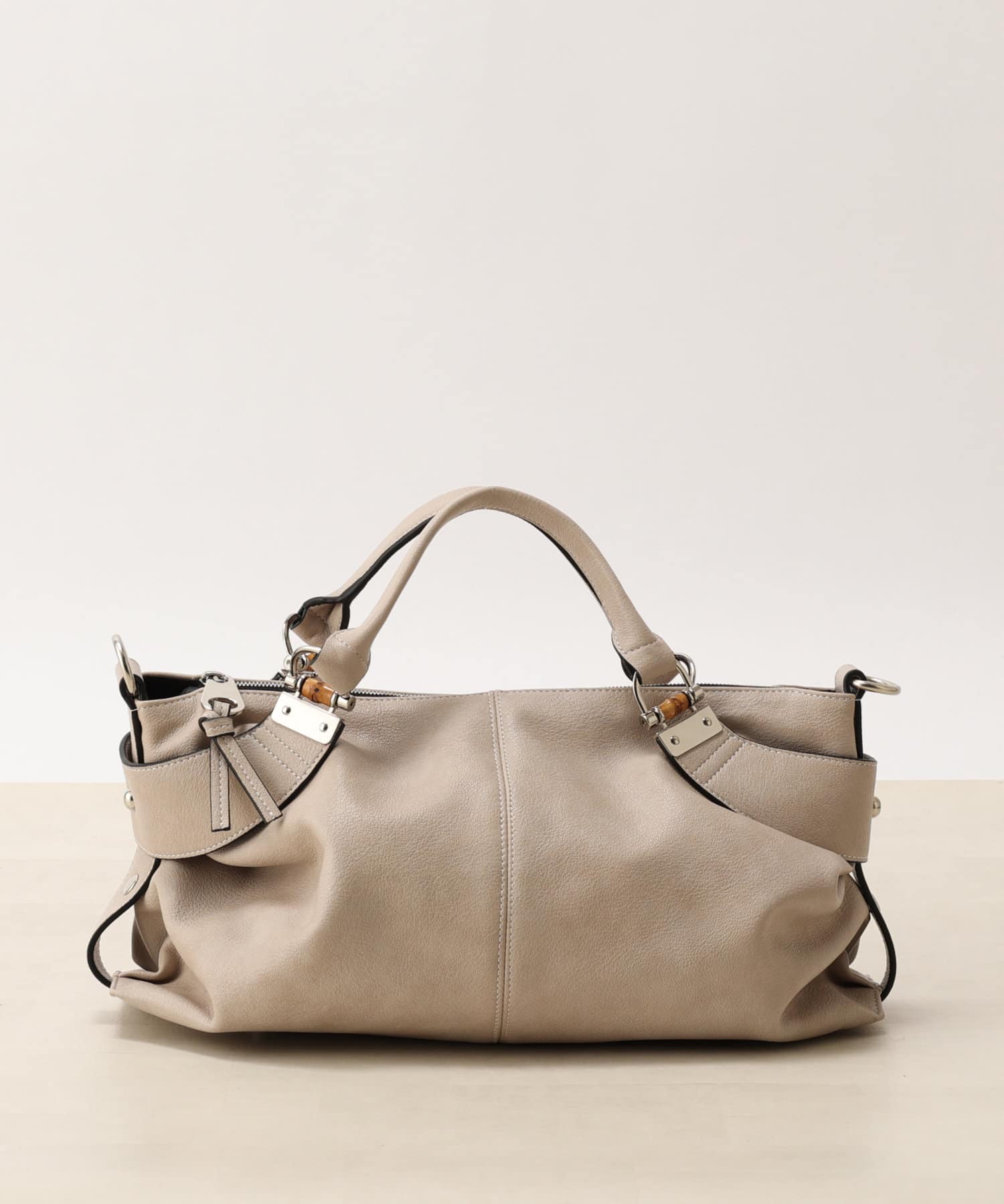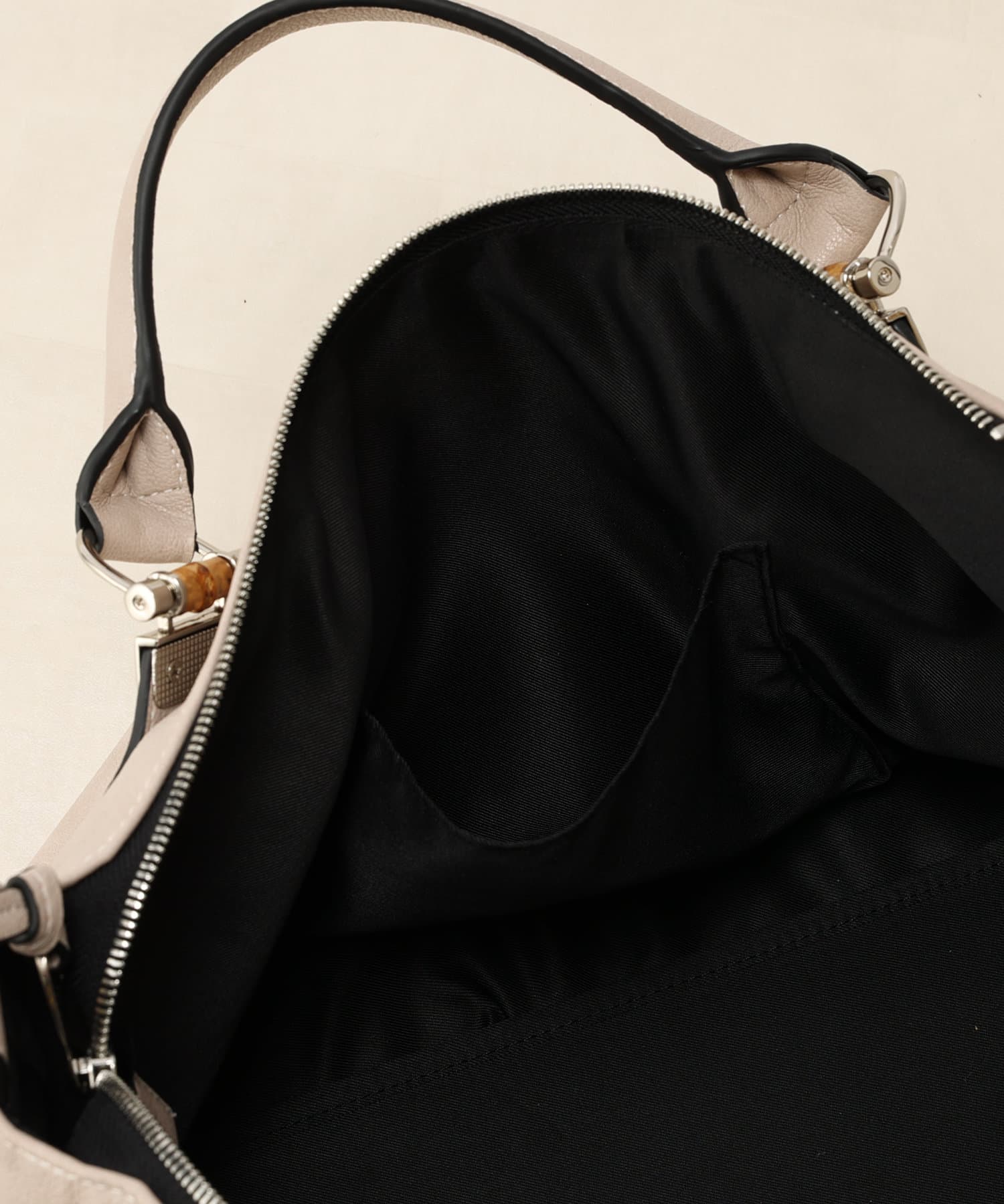上品なバンブーパーツをあしらい、ショルダーバッグにも使用できる2WAYのバンブーバッグ。