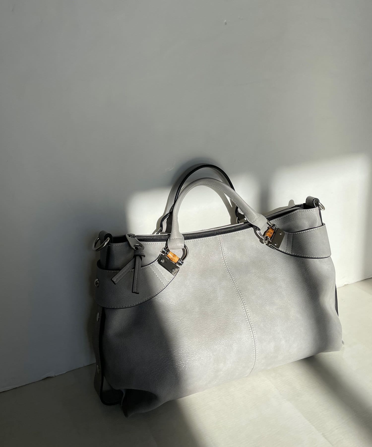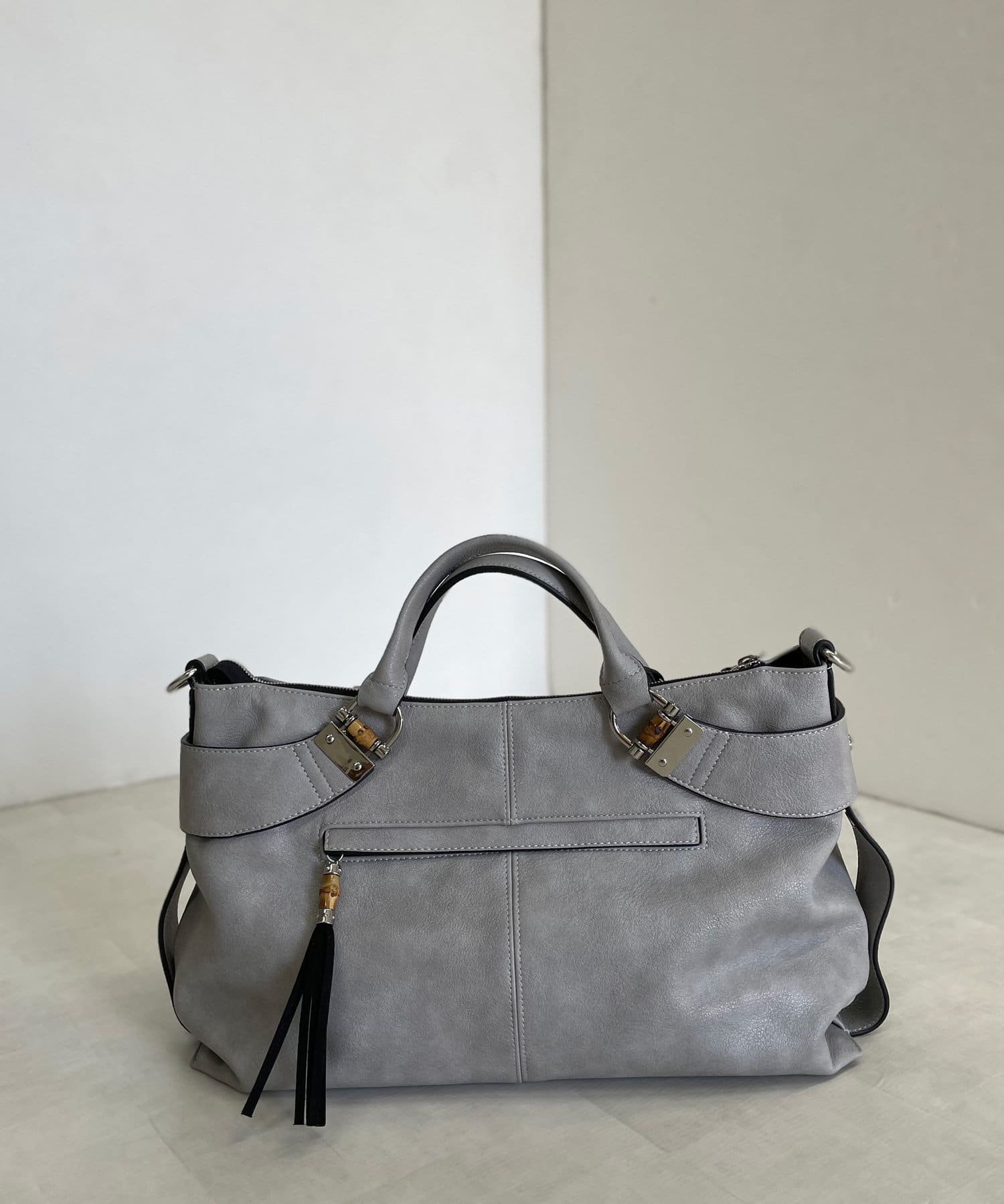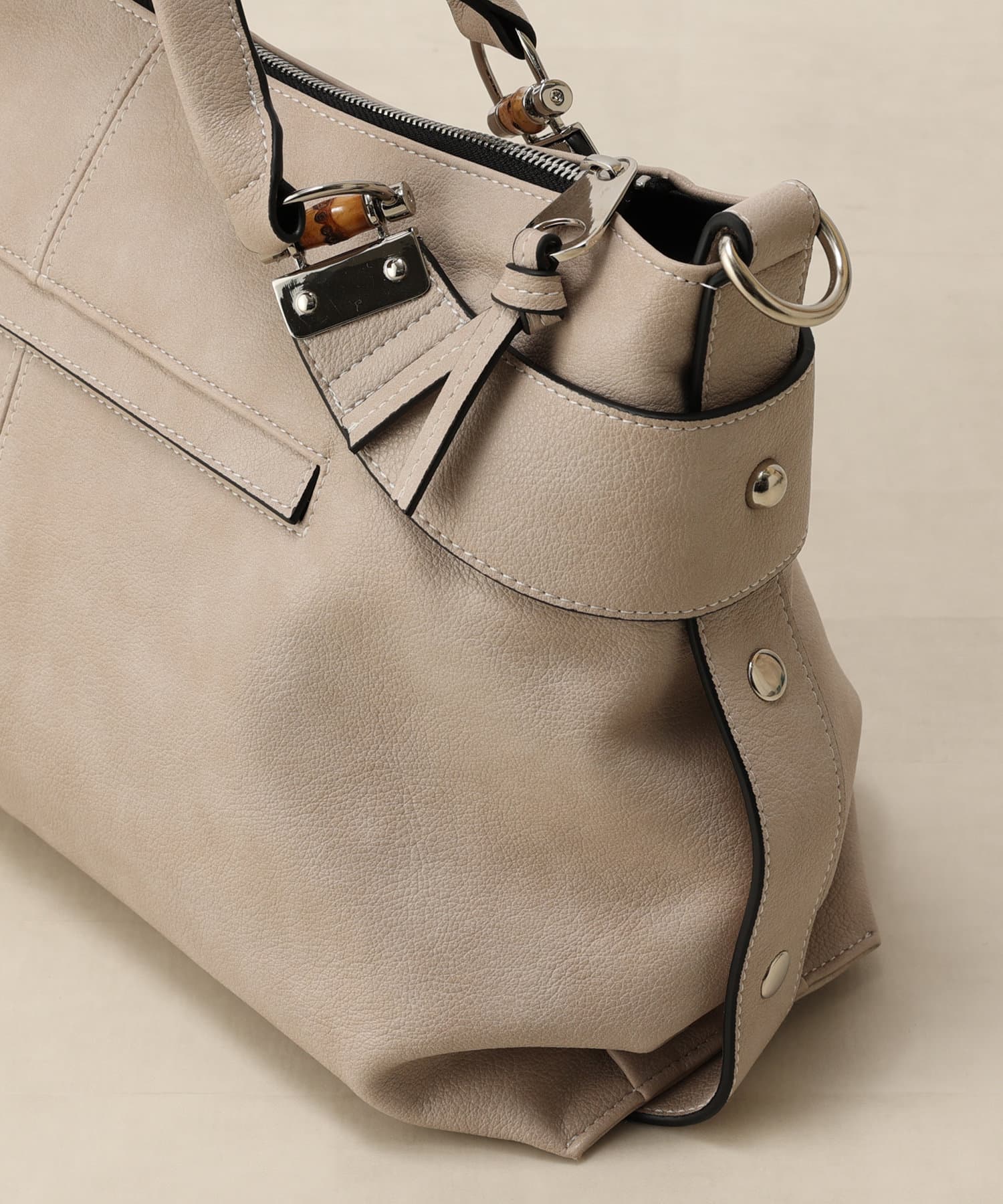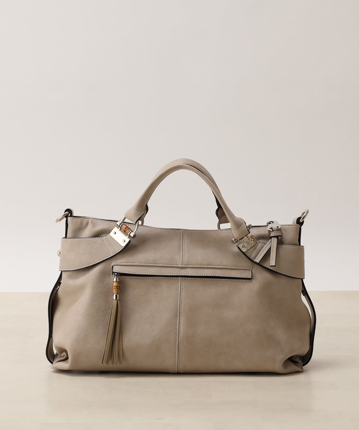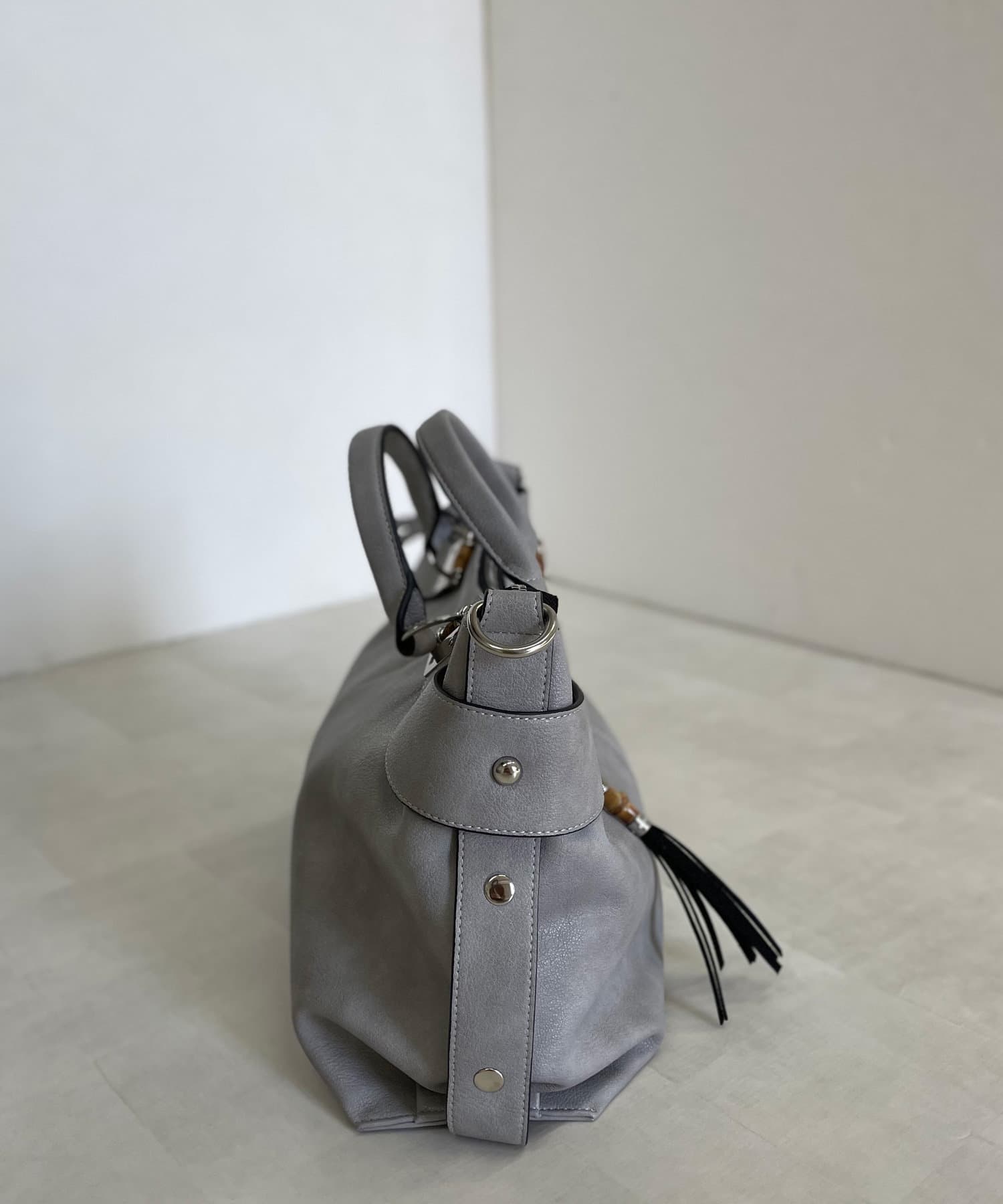 上品なバンブーパーツをあしらい、ショルダーバッグにも使用できる2WAYのバンブーバッグ。