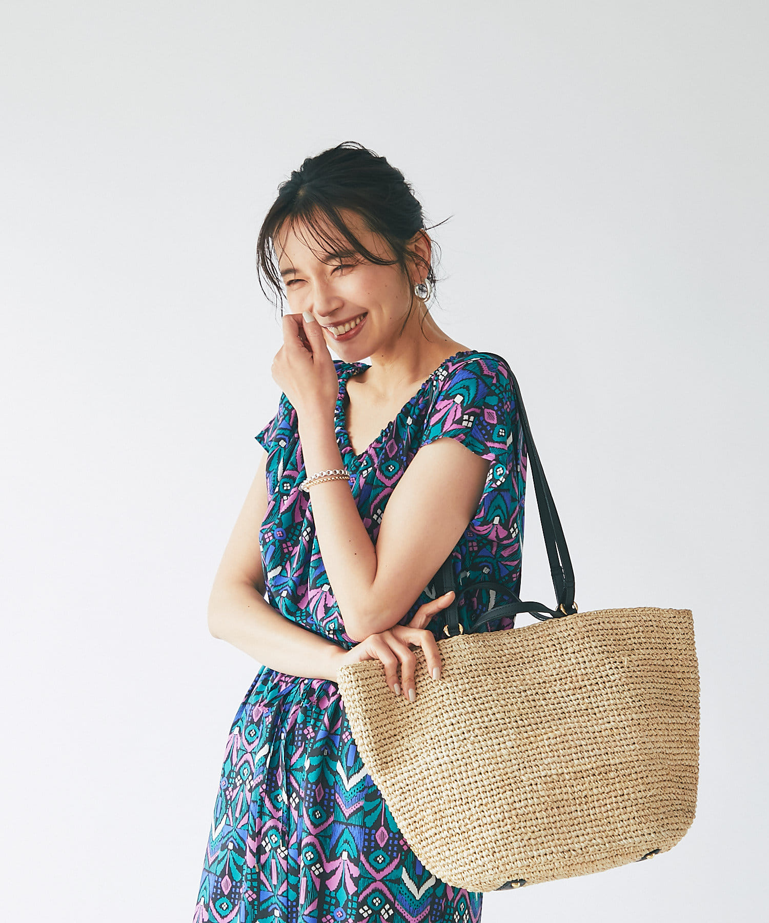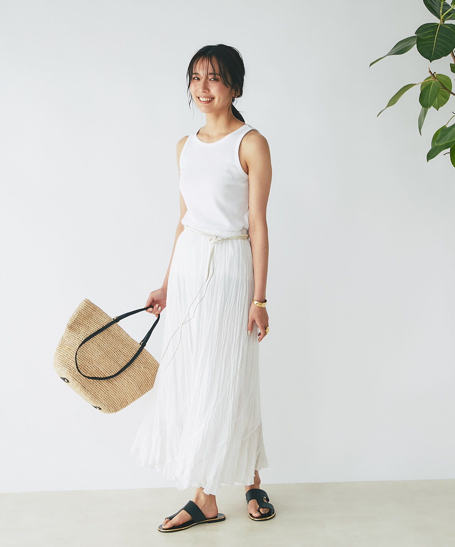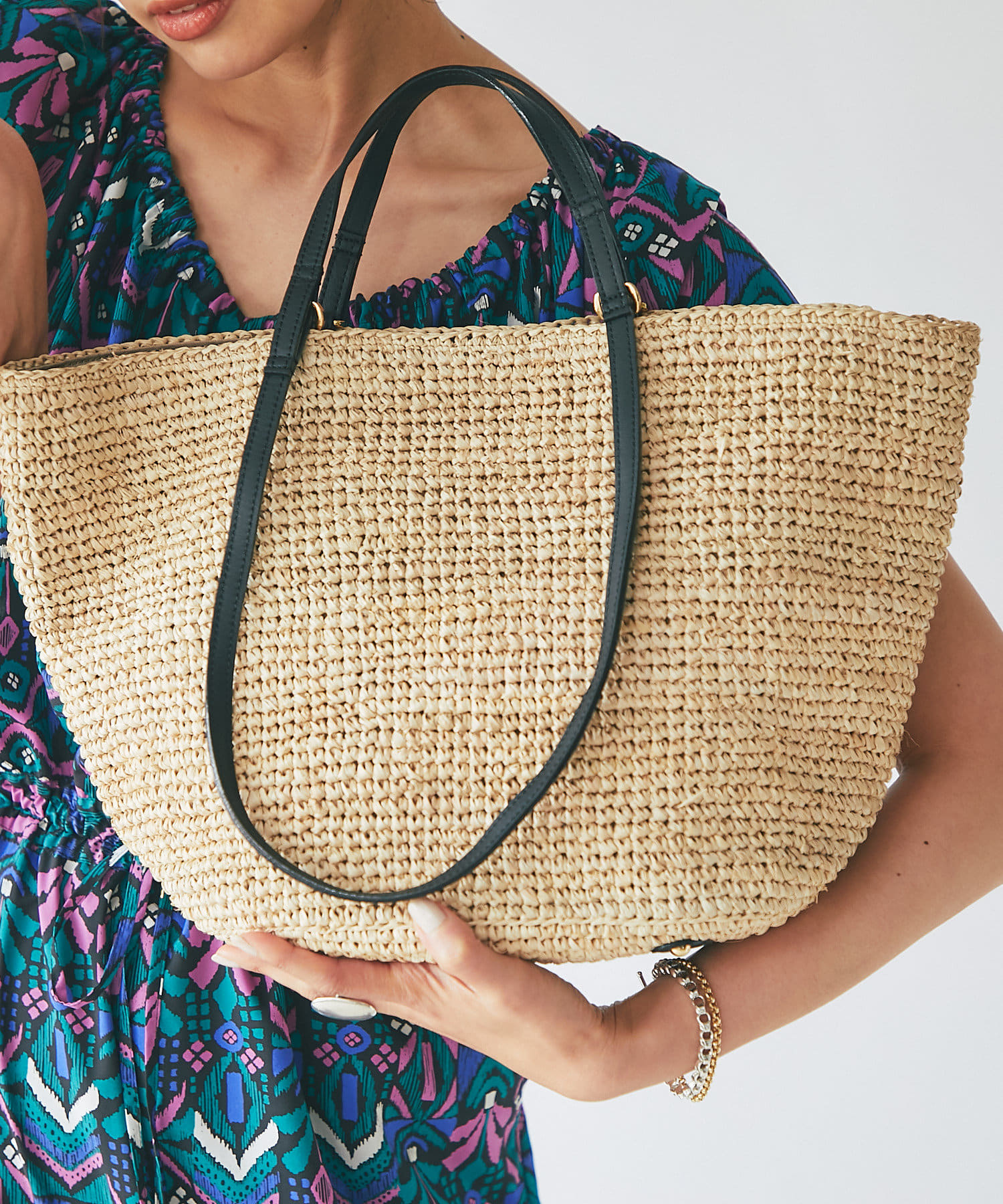 春夏ルックに欠かせないラフィアトートバッグが登場。