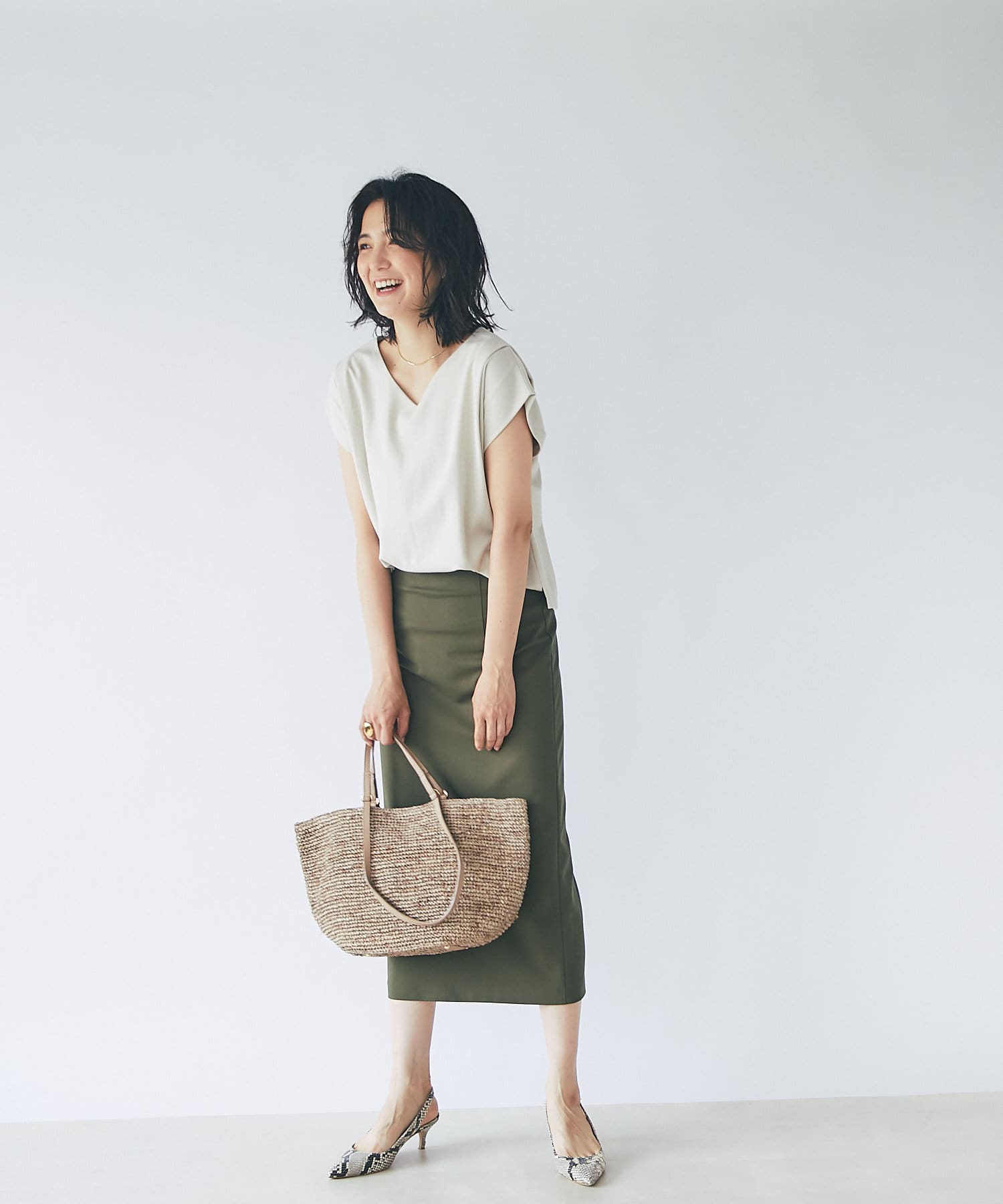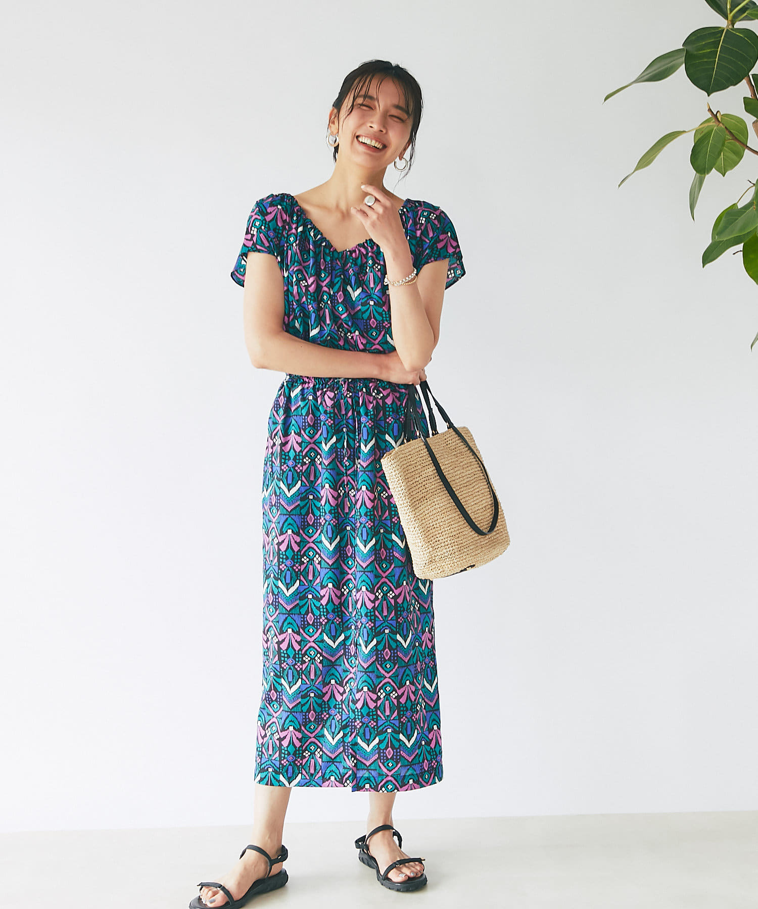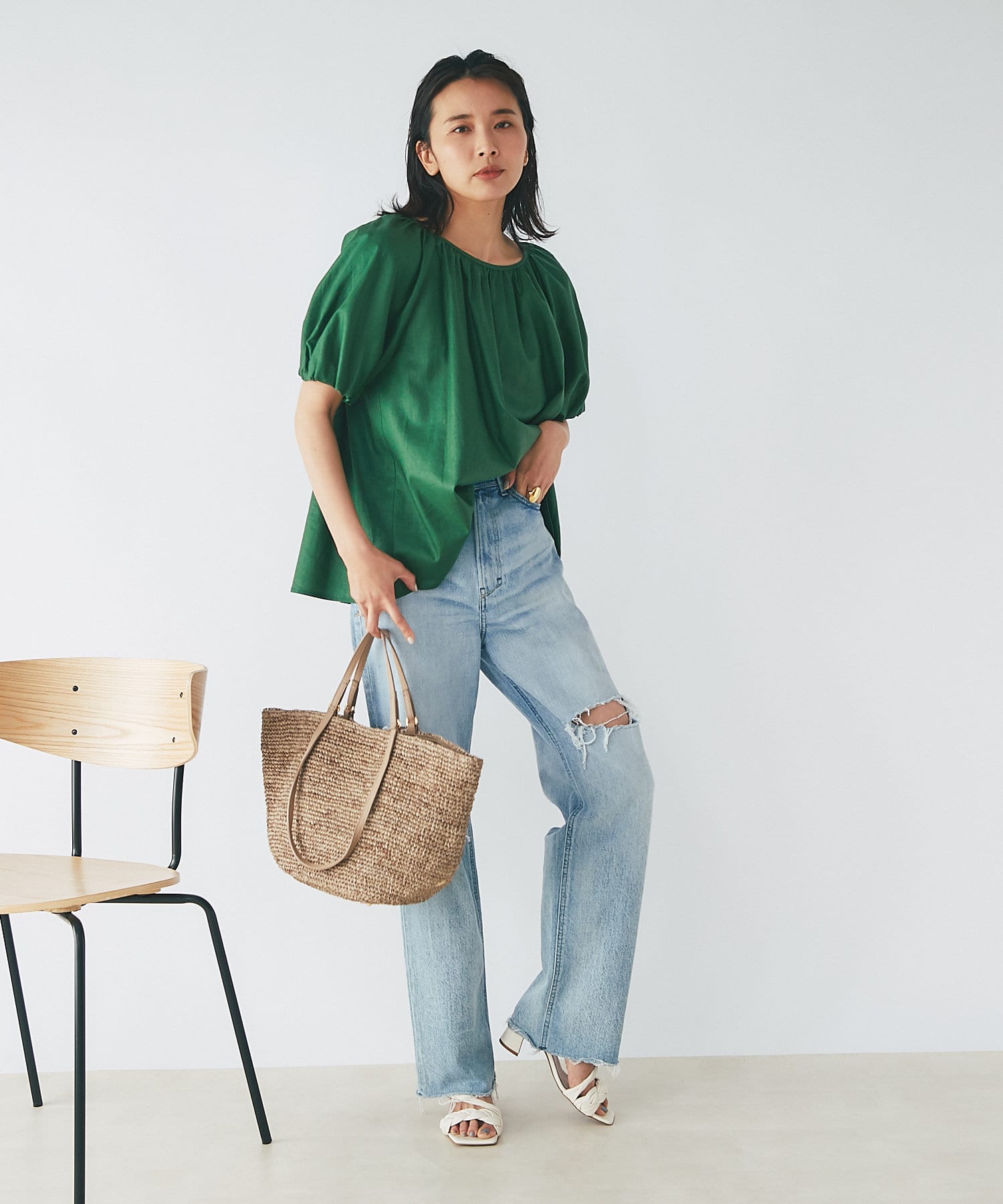 春夏ルックに欠かせないラフィアトートバッグが登場。