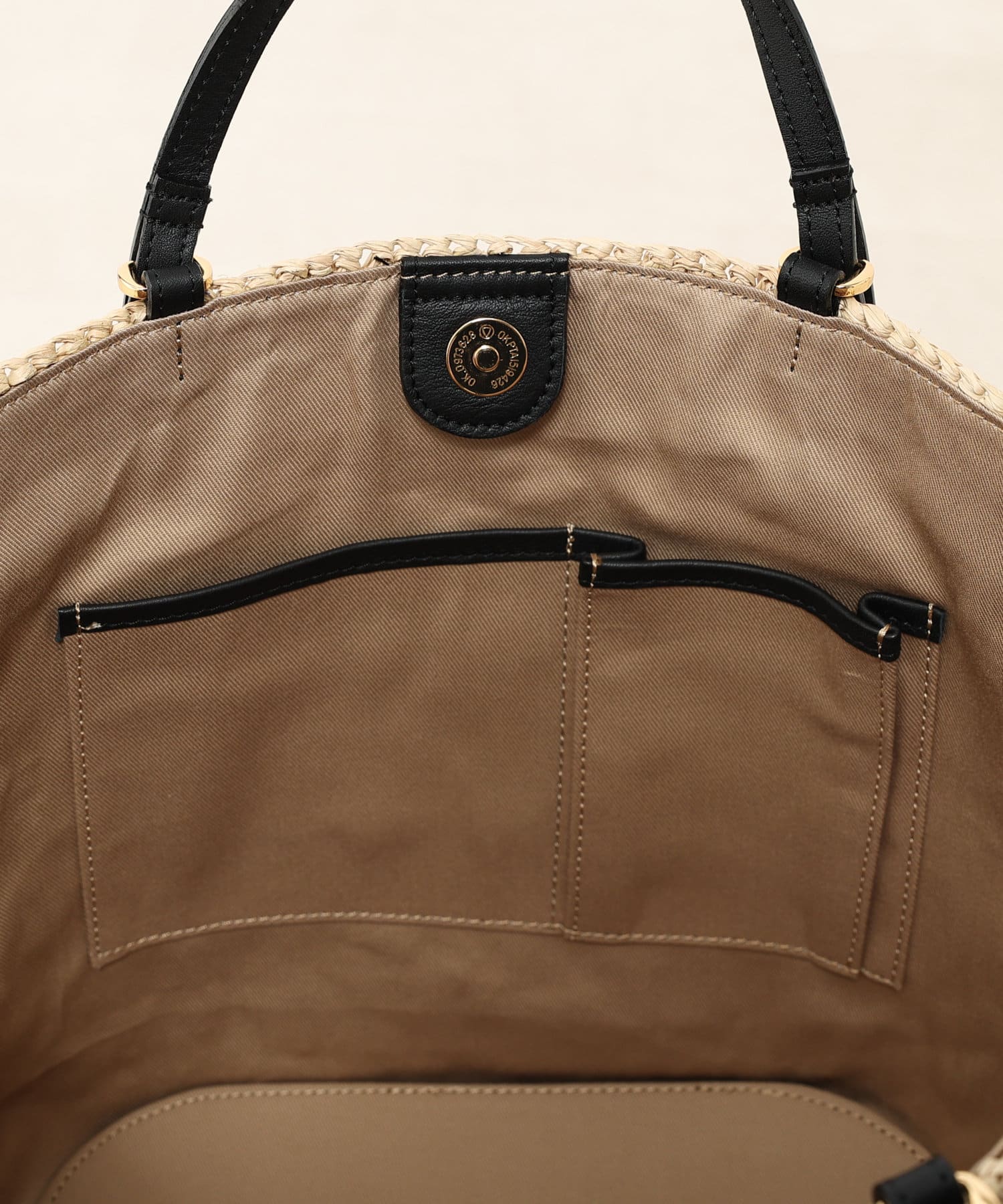 開口部はマグネットで留められ、内側には小物の収納に便利なポケットが付属しています。