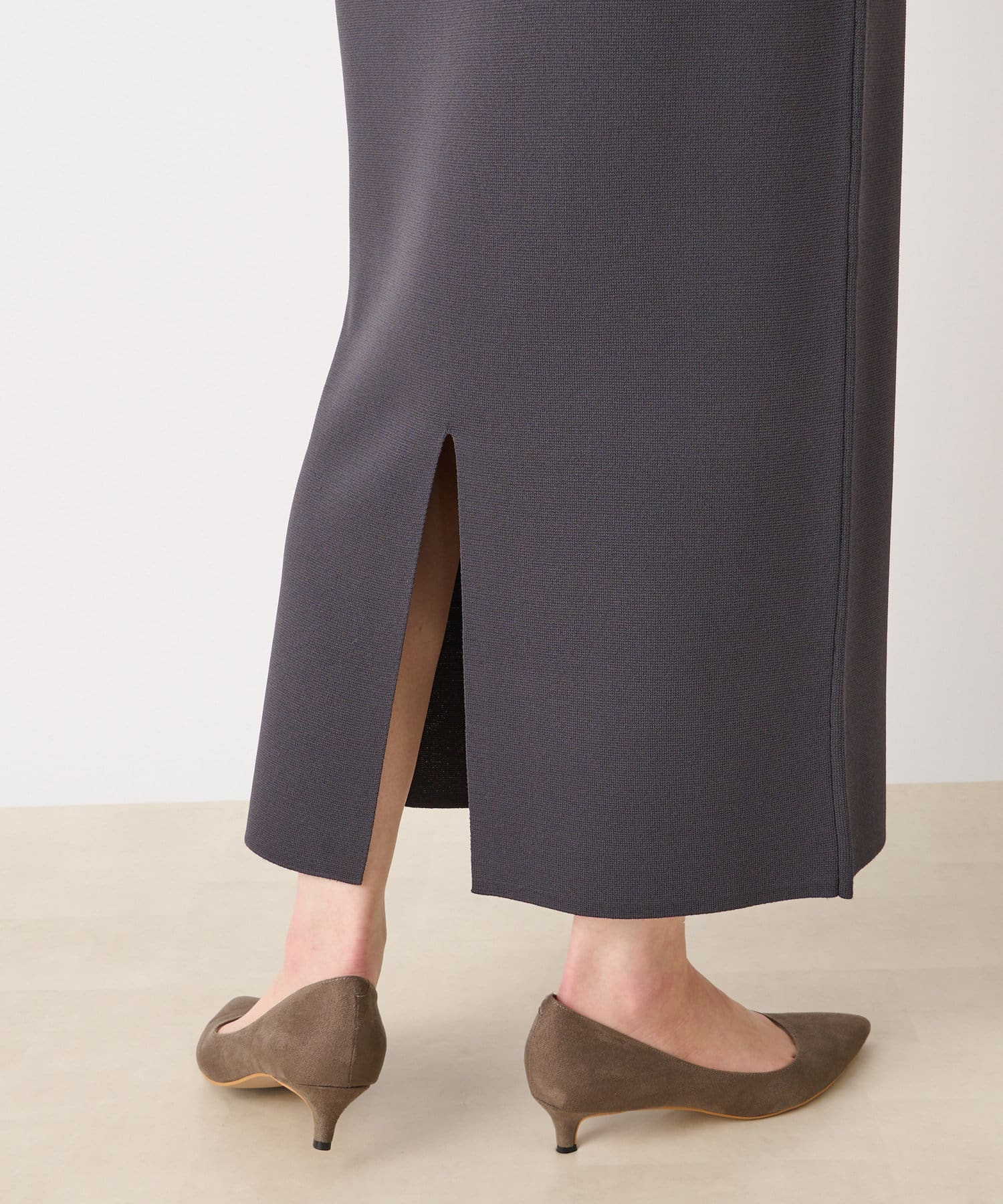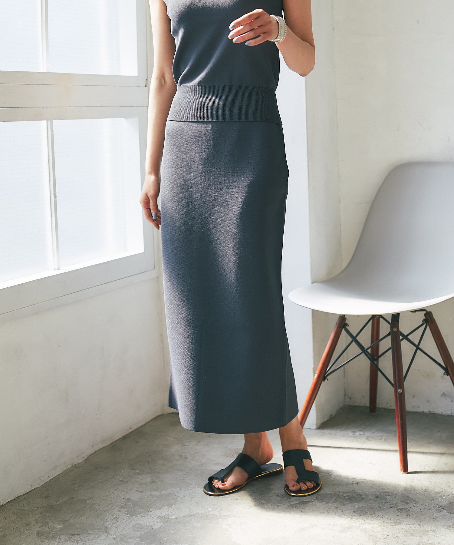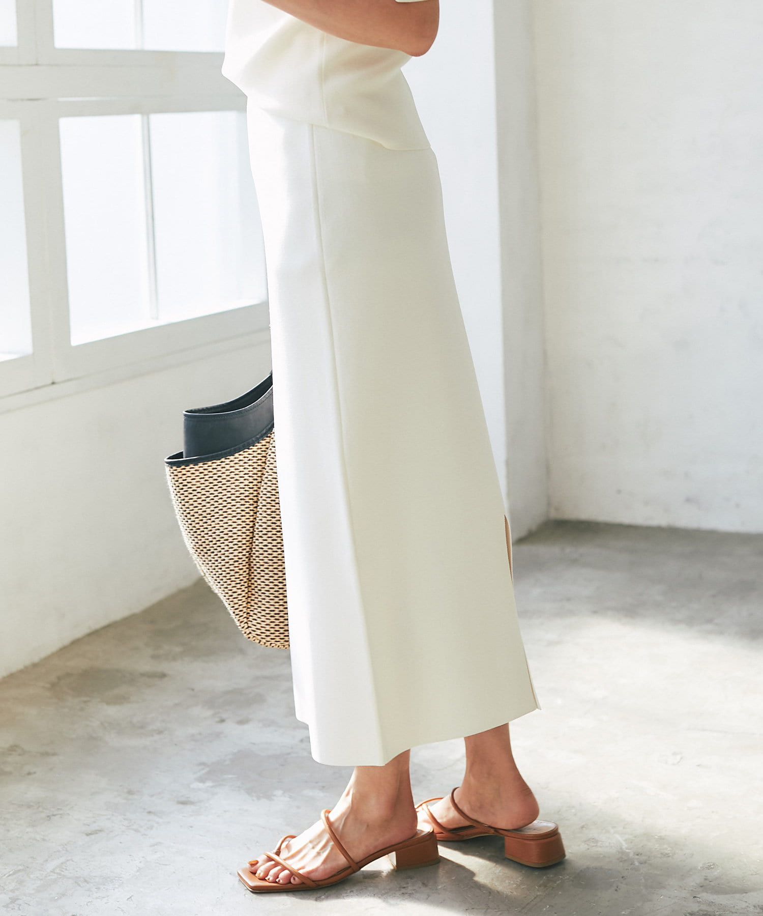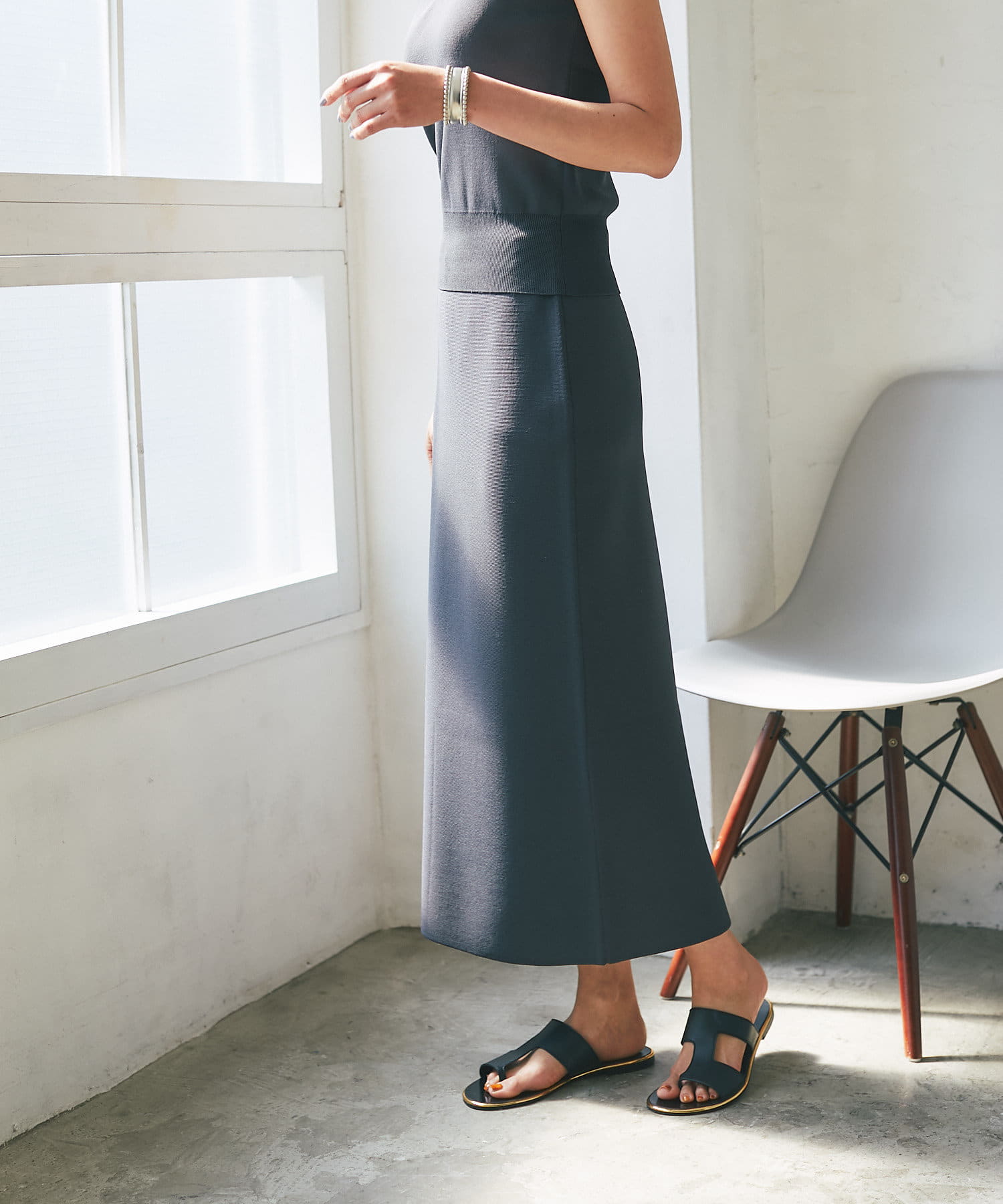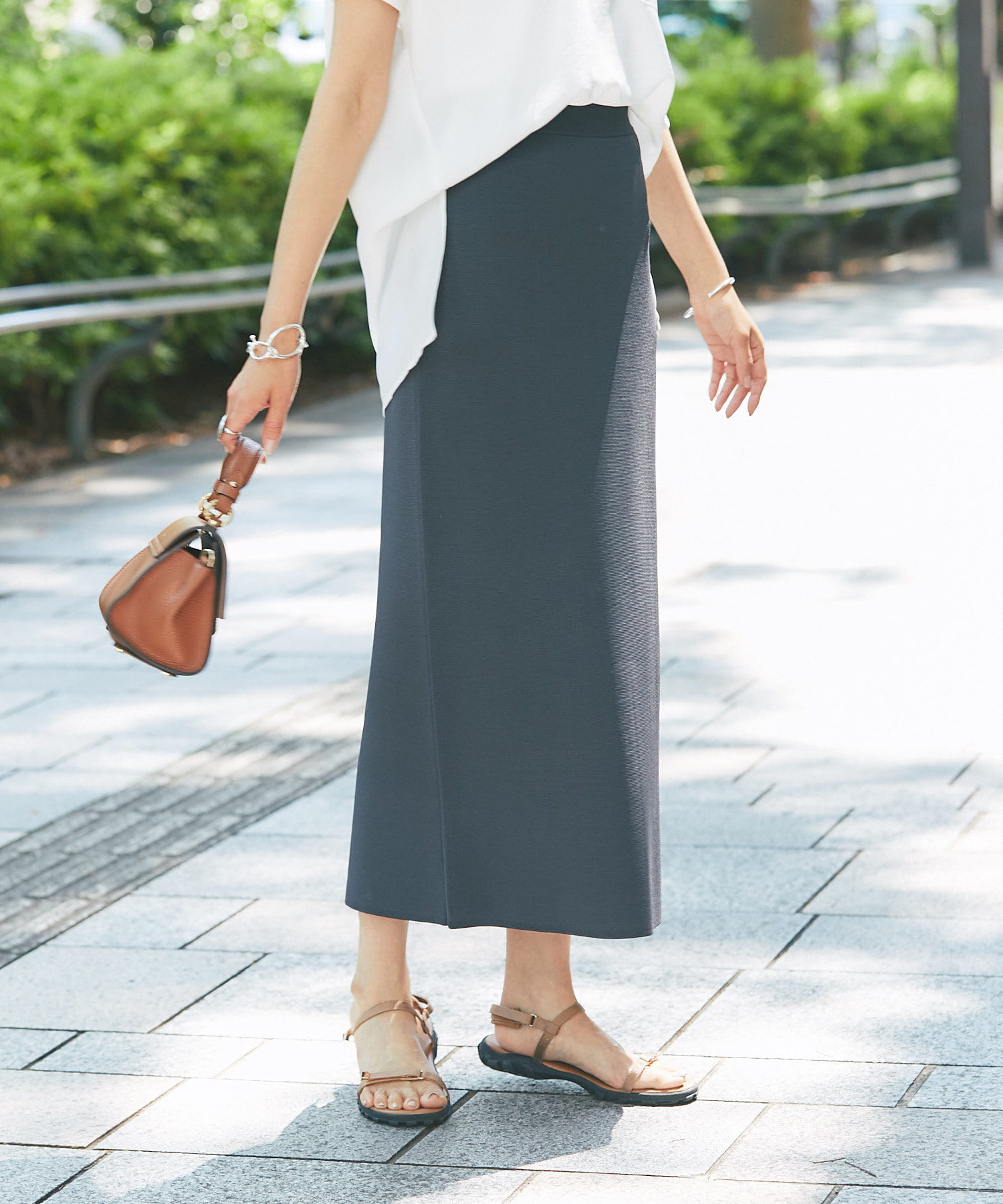 フラットな編地なのでリブスカートよりもキレイめな印象で着用いただけます。