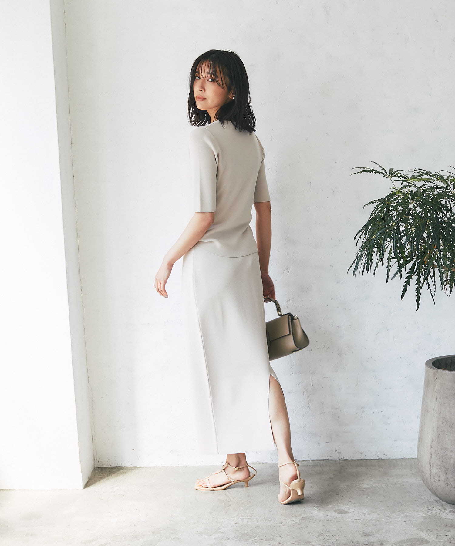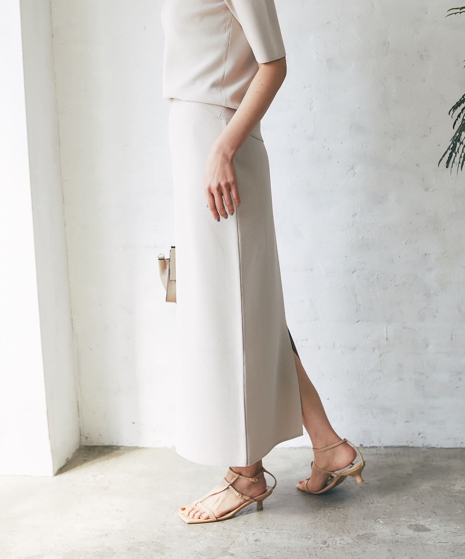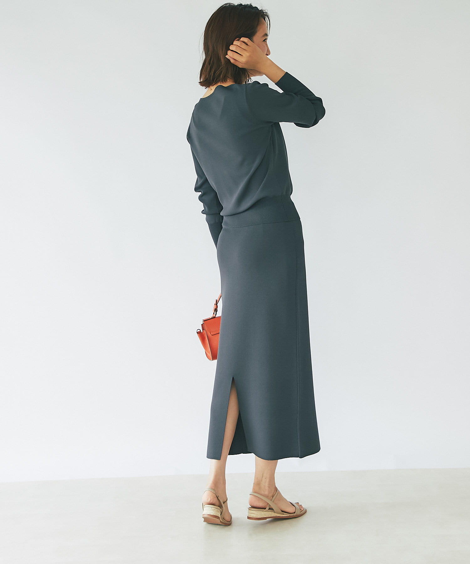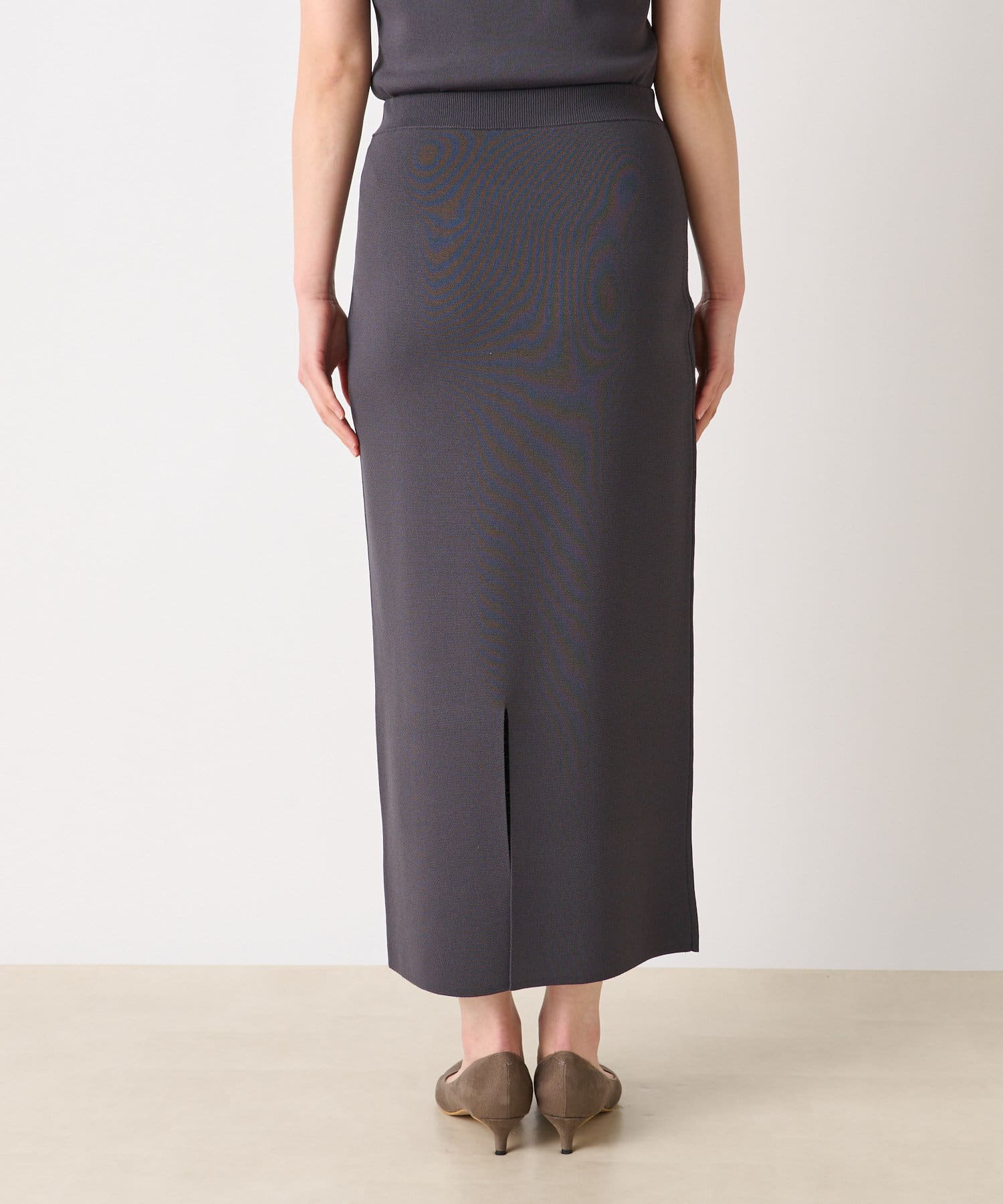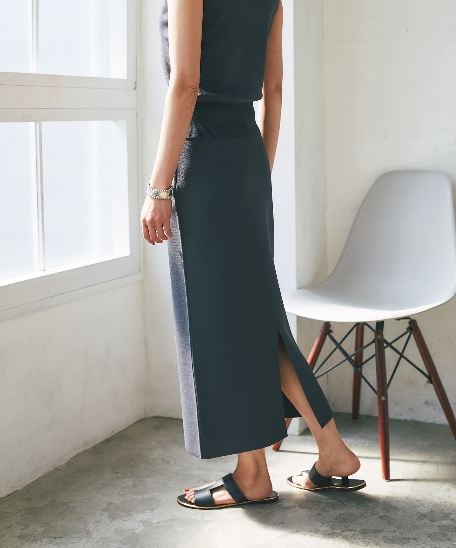 フラットな編地なのでリブスカートよりもキレイめな印象で着用いただけます。