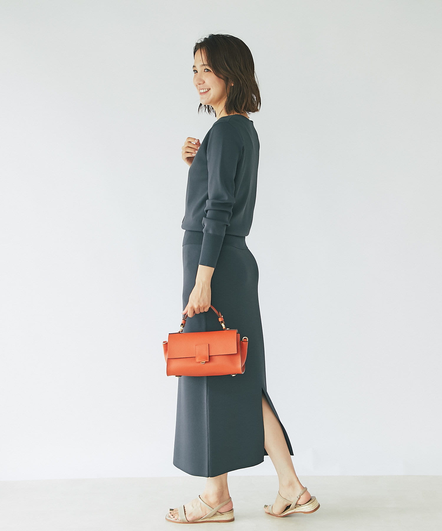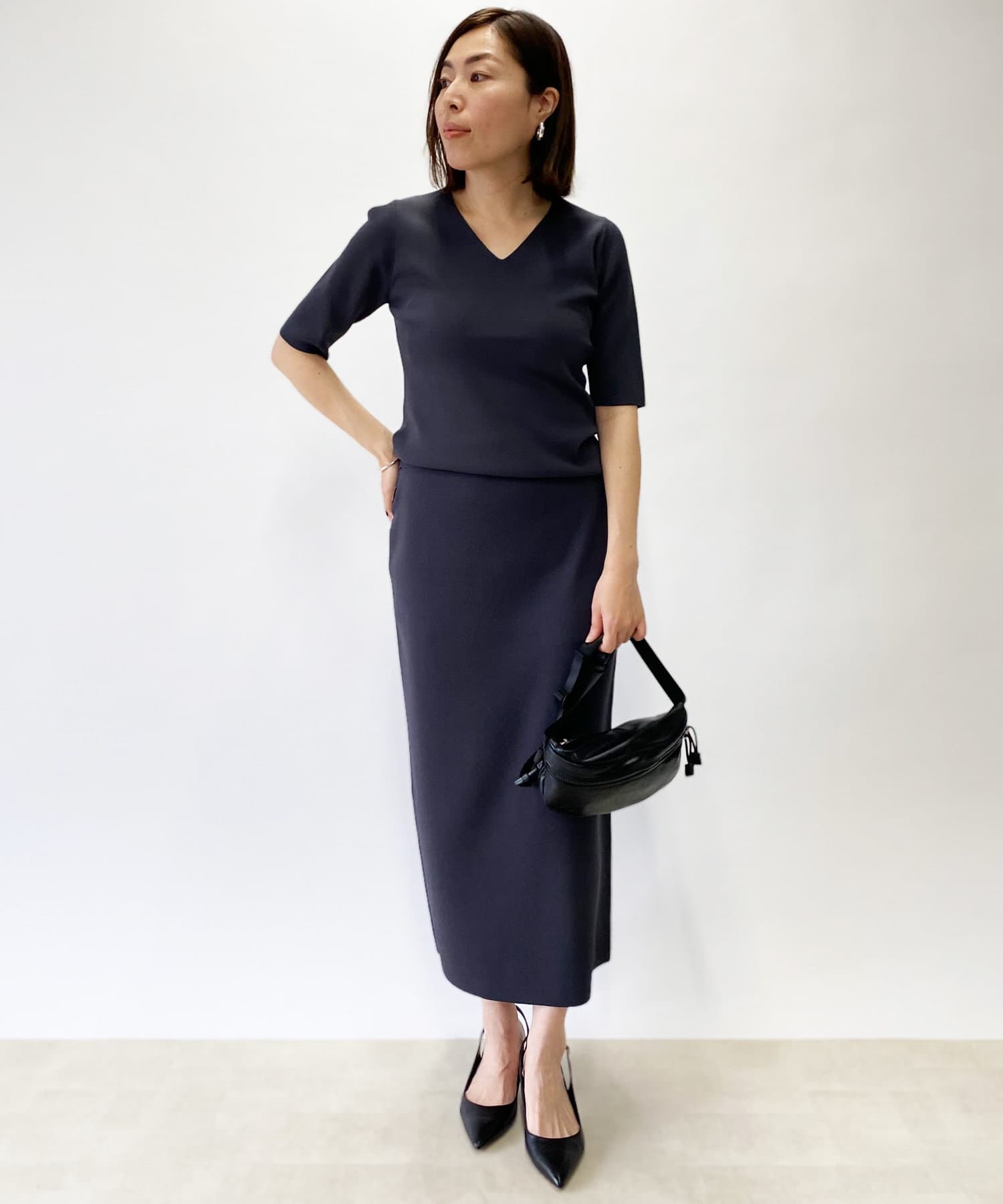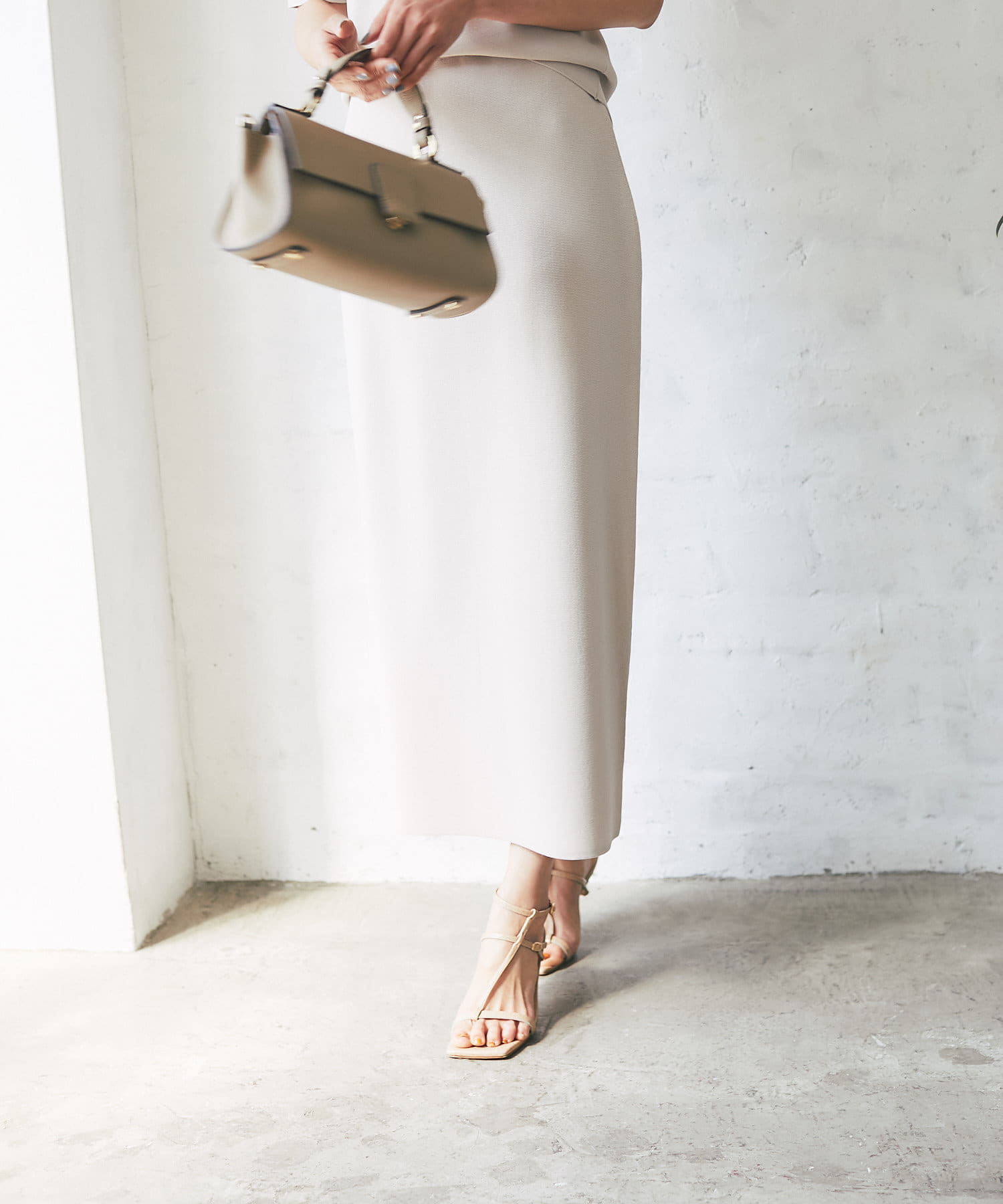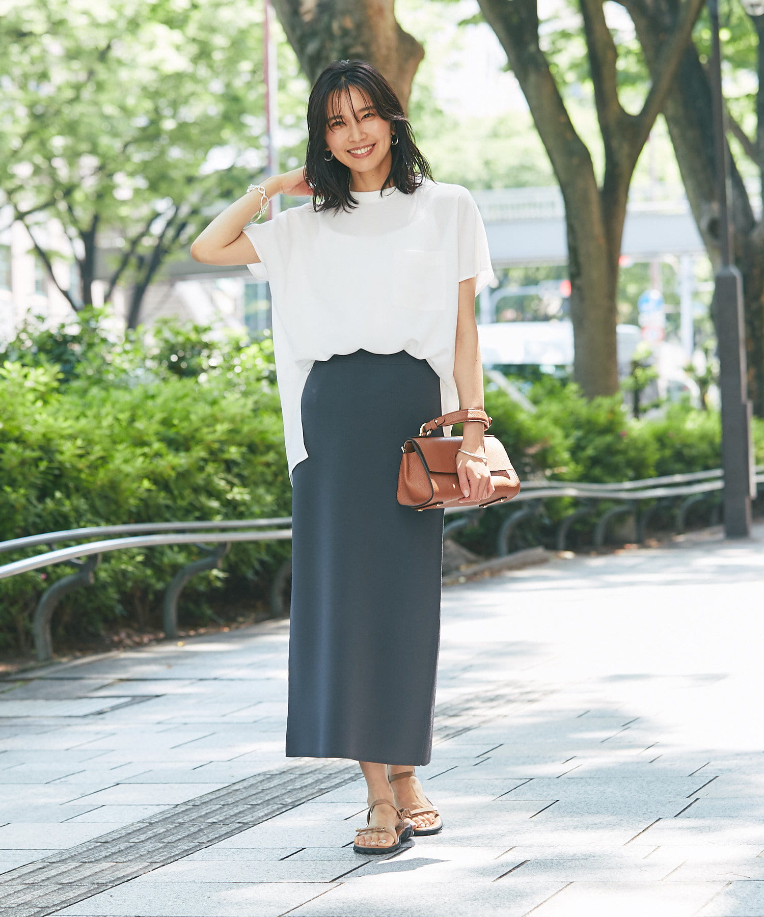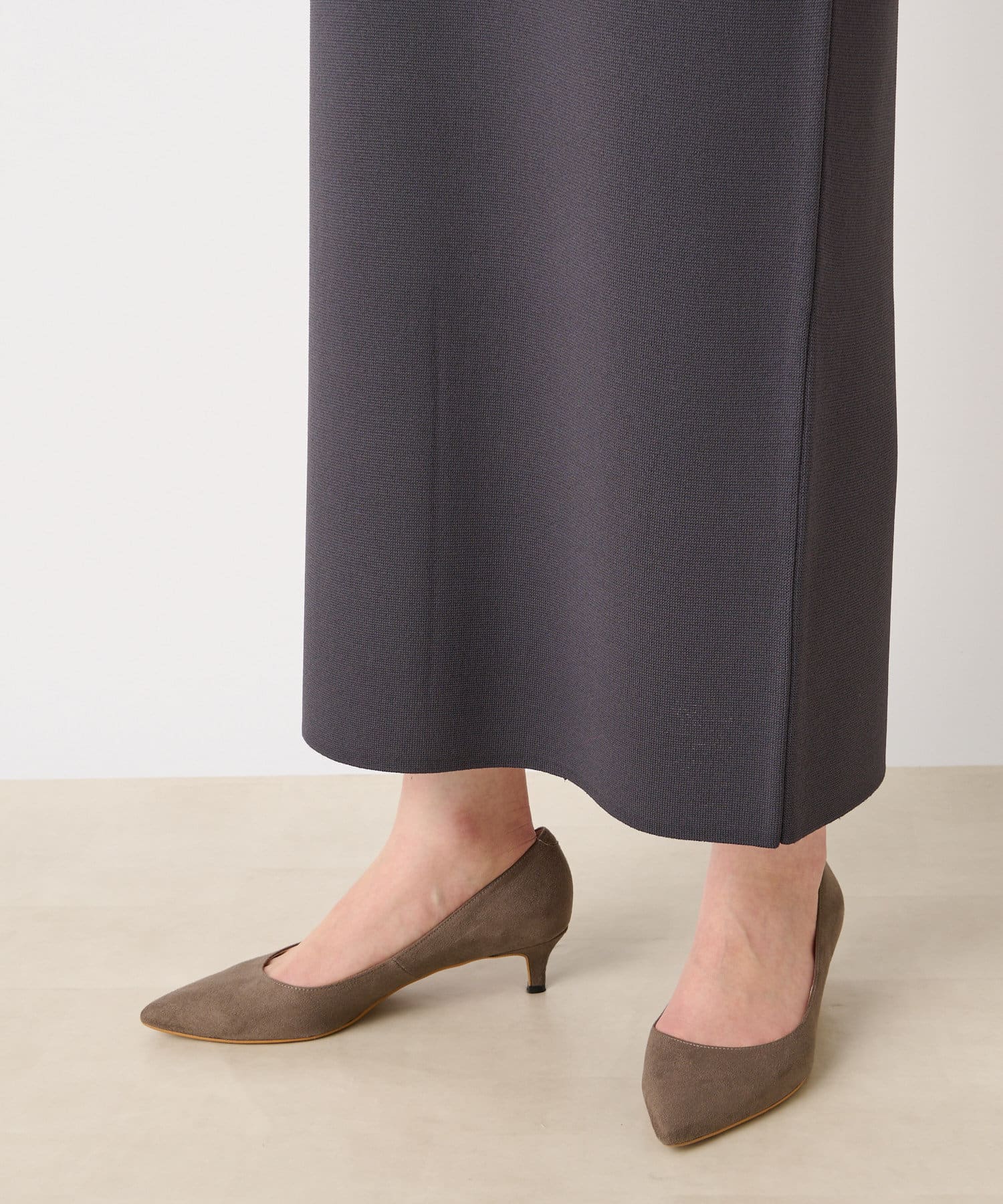 フラットな編地なのでリブスカートよりもキレイめな印象で着用いただけます。