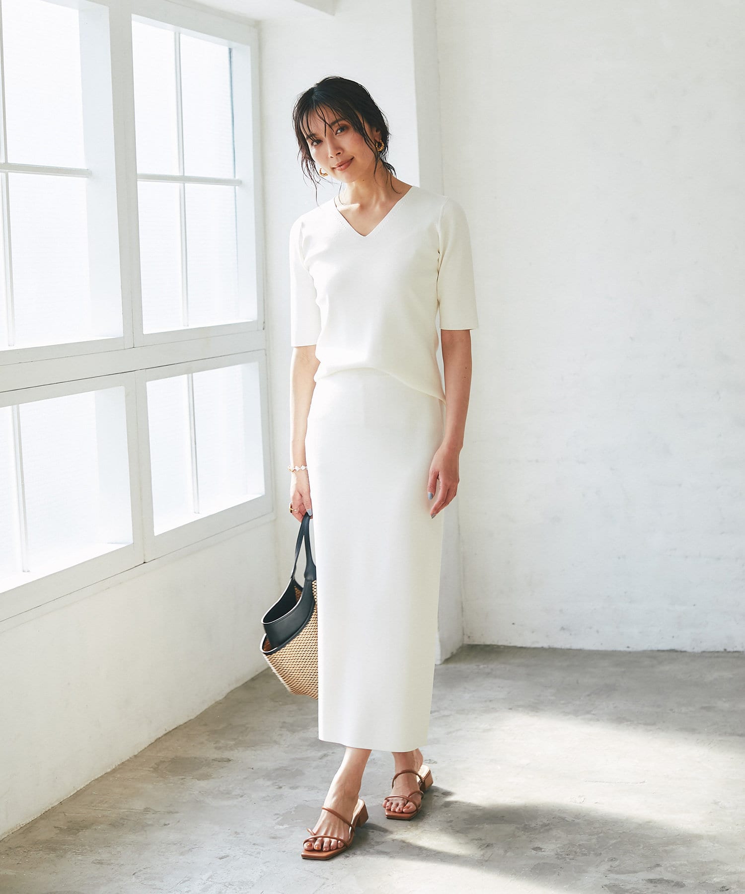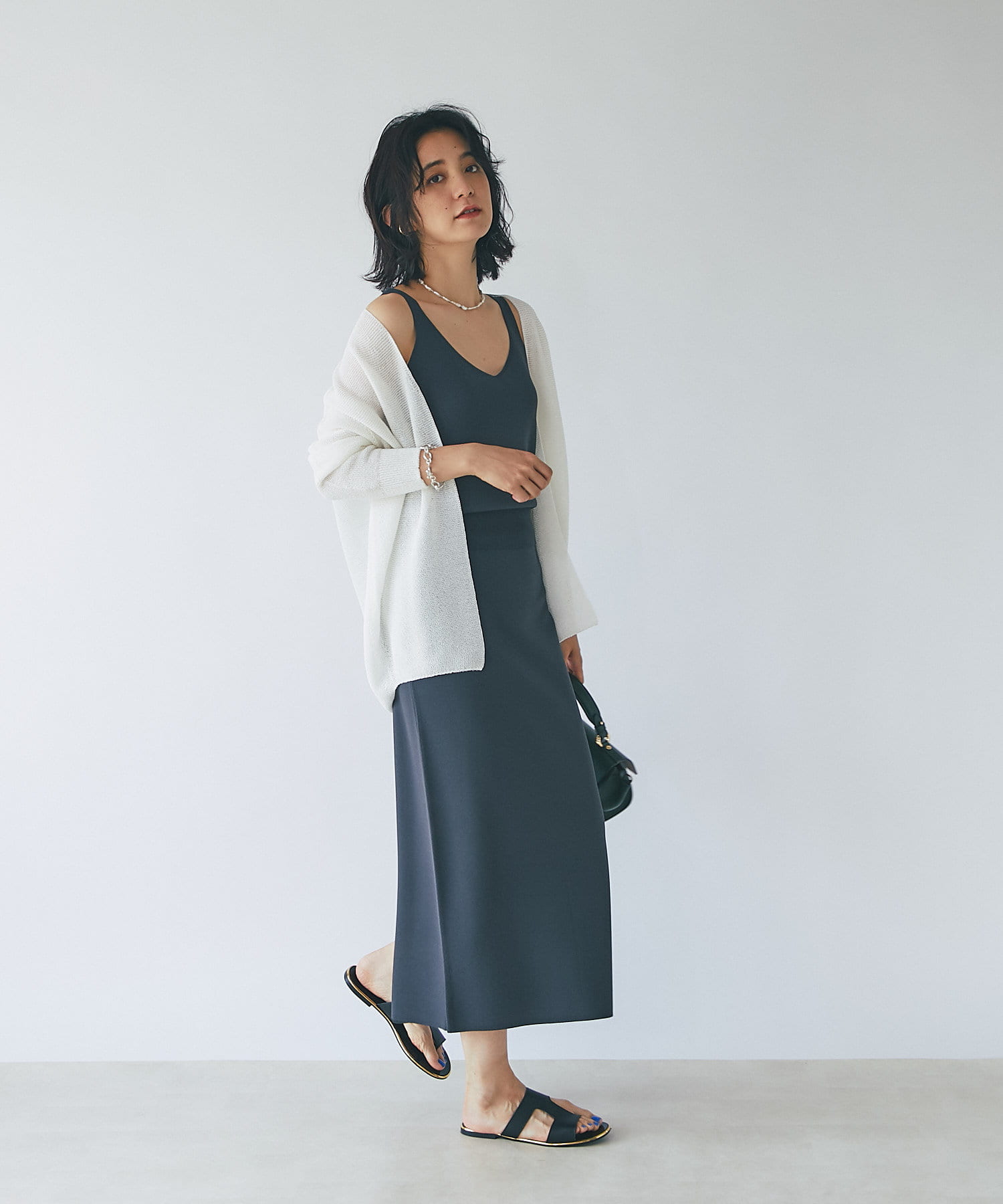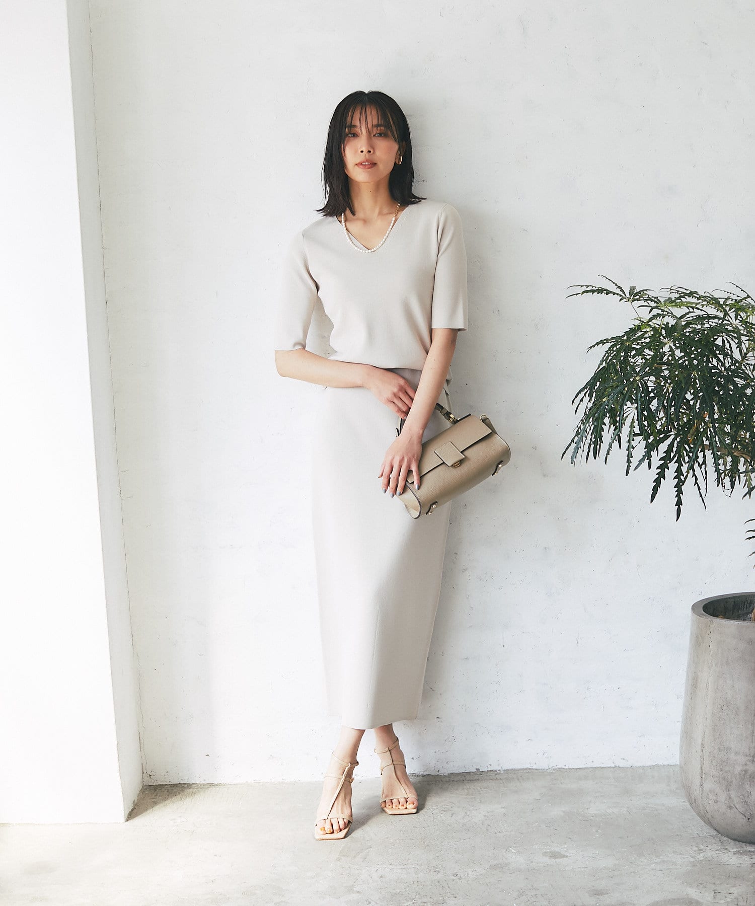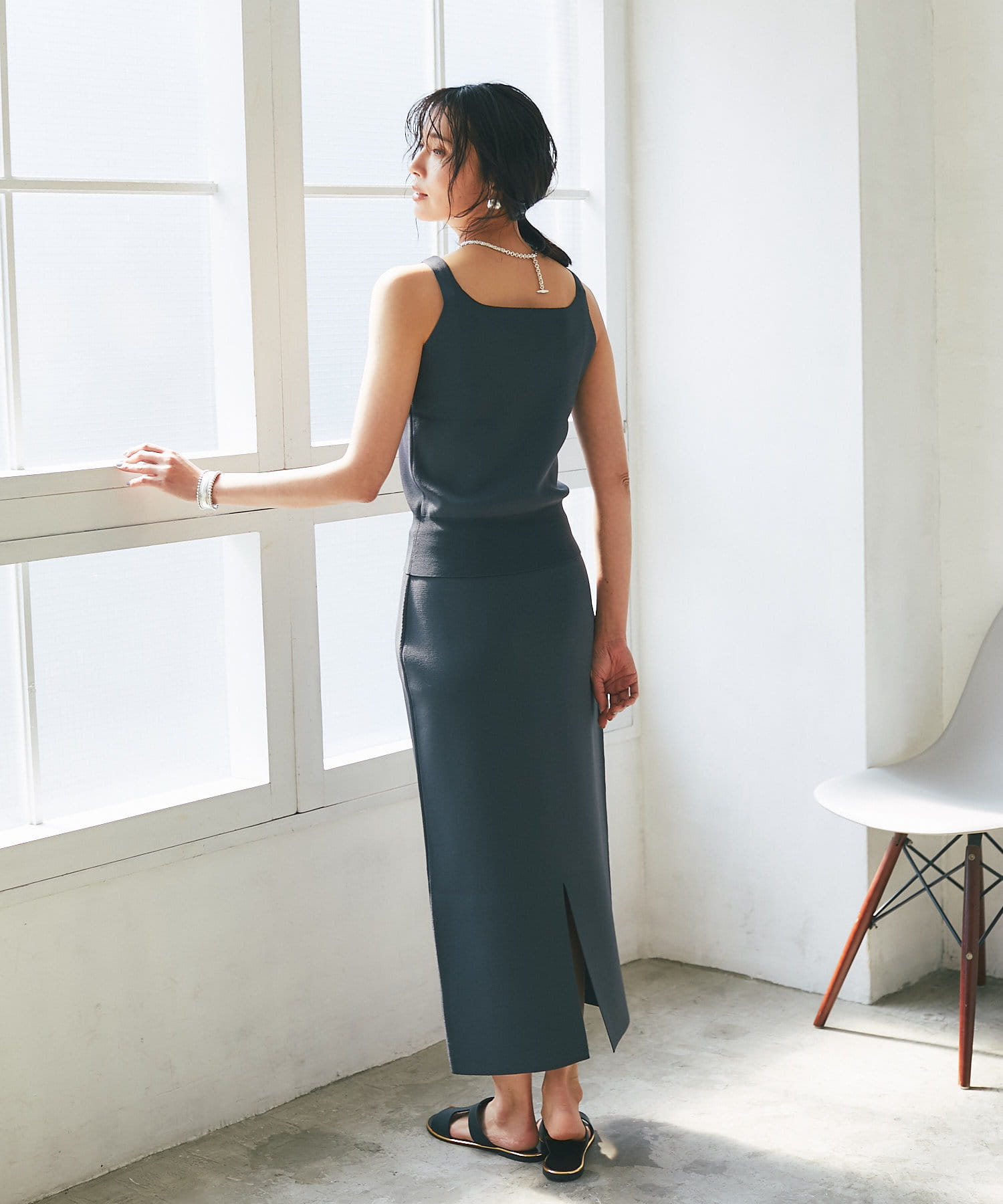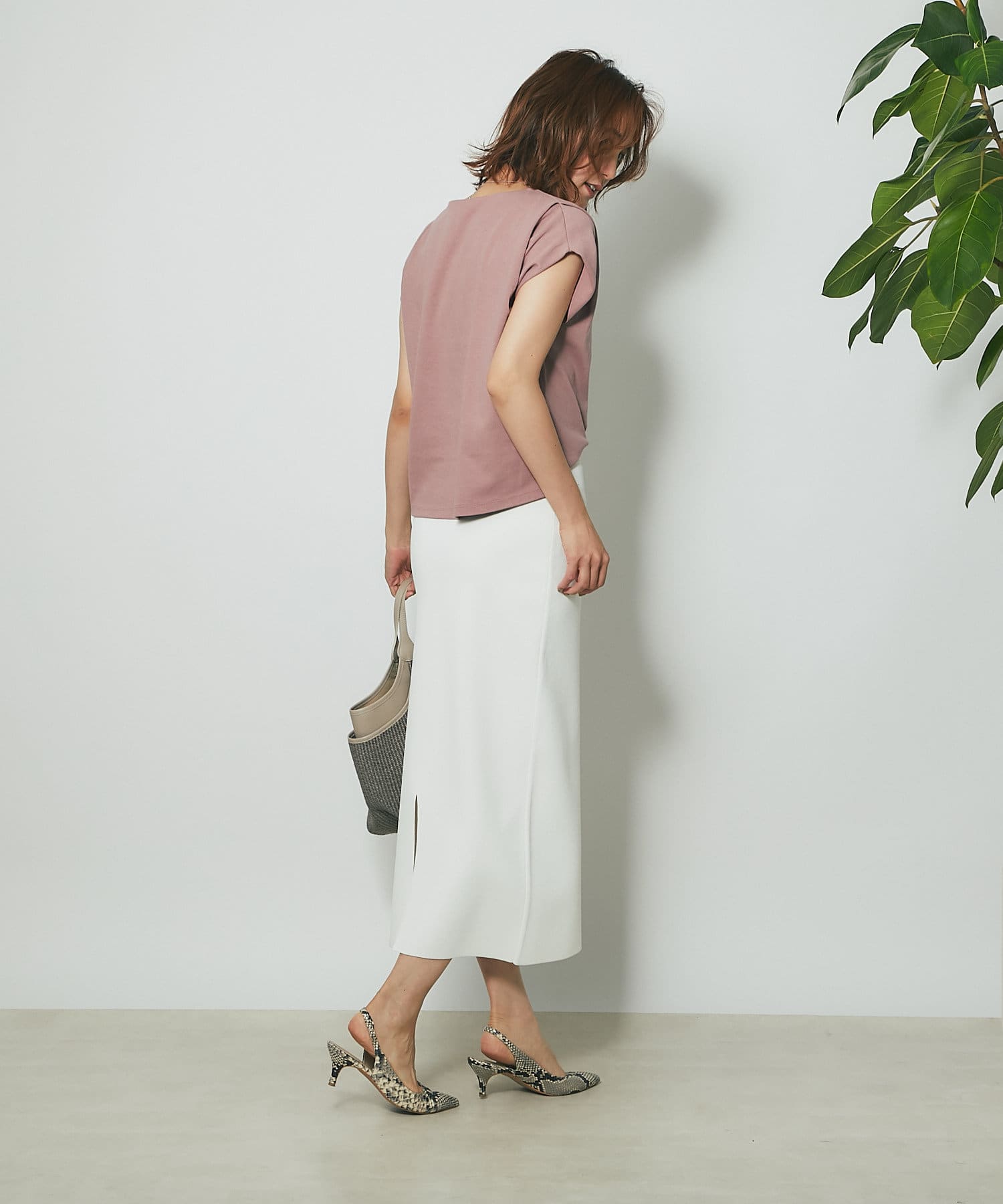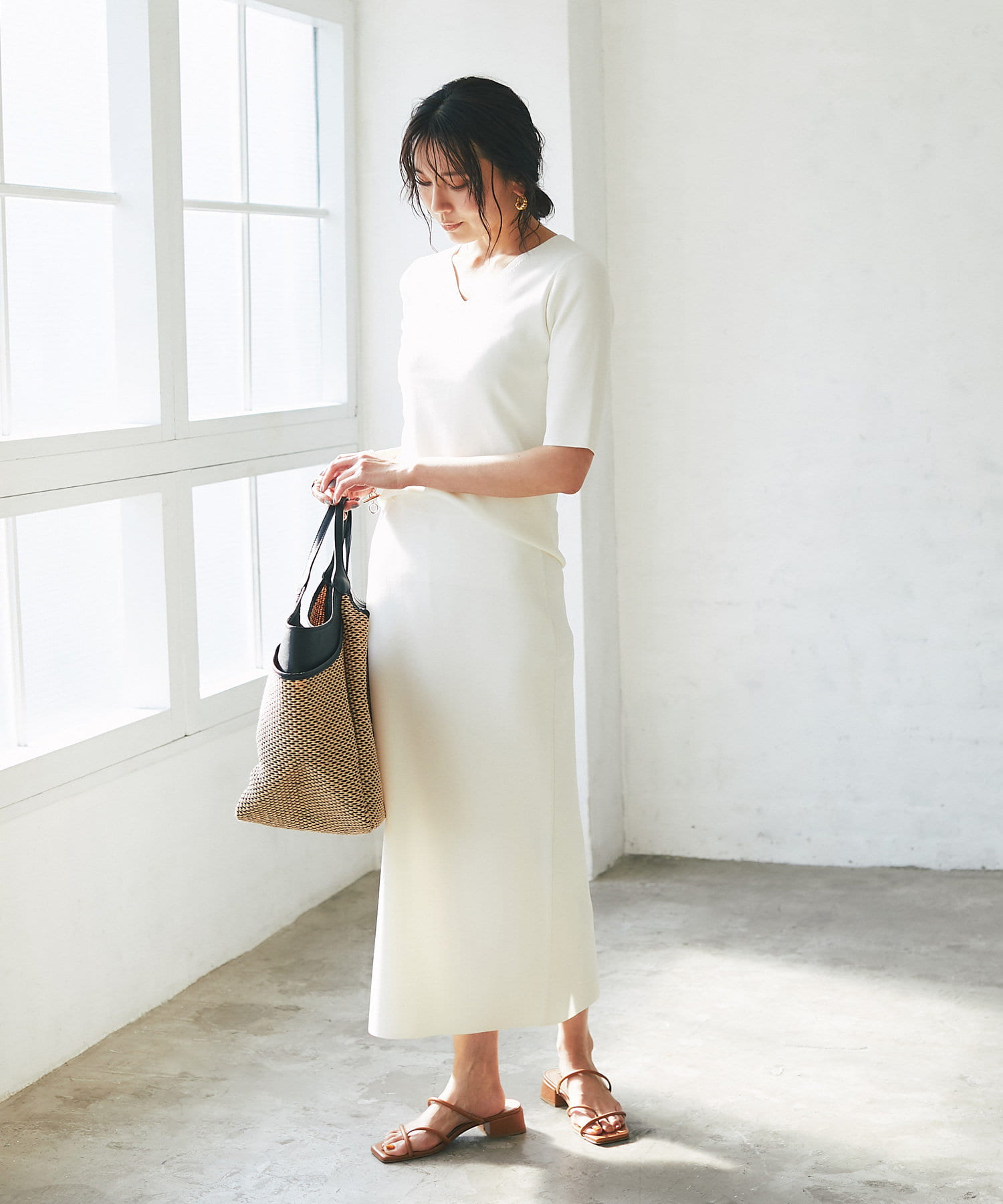 フラットな編地なのでリブスカートよりもキレイめな印象で着用いただけます。