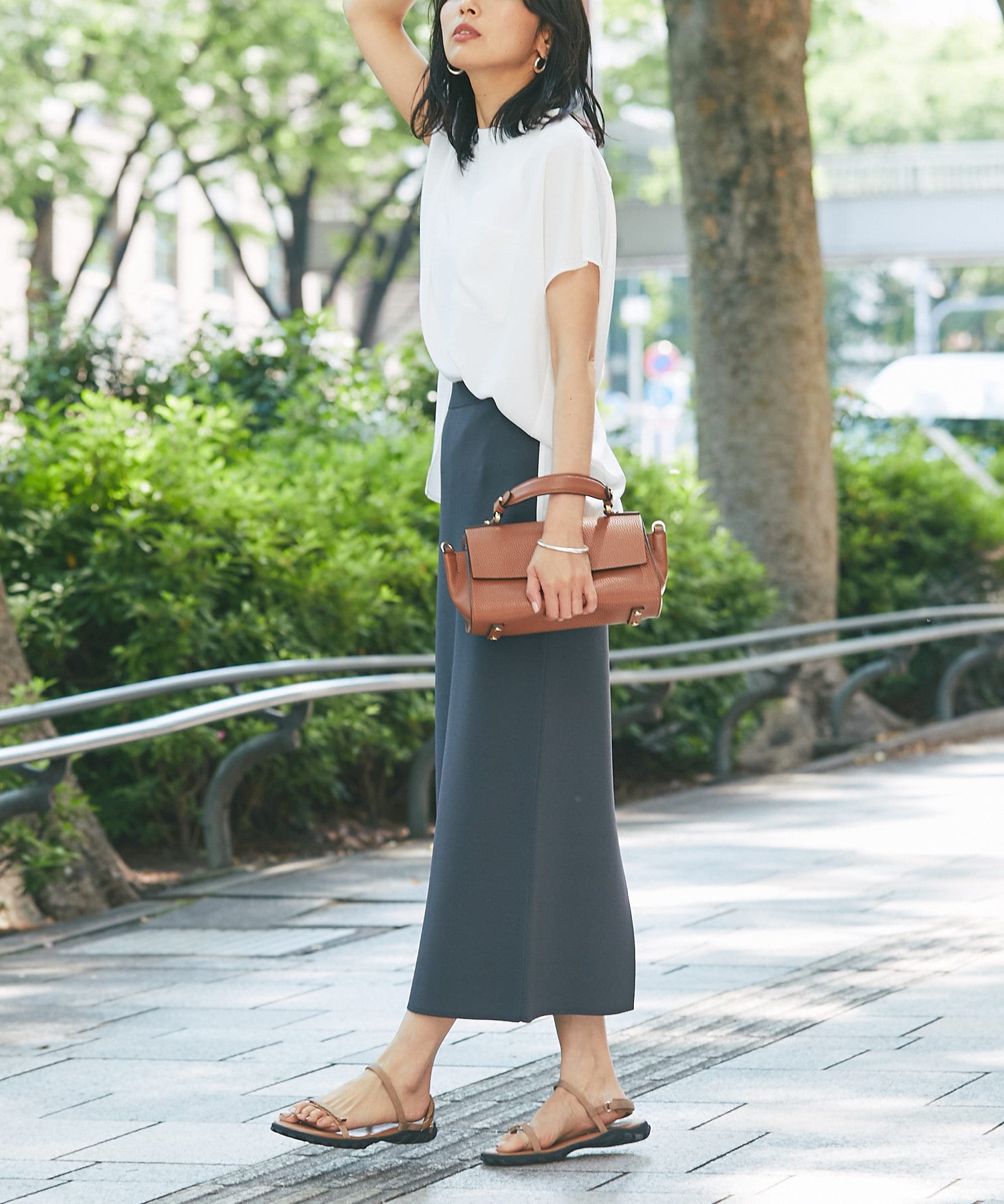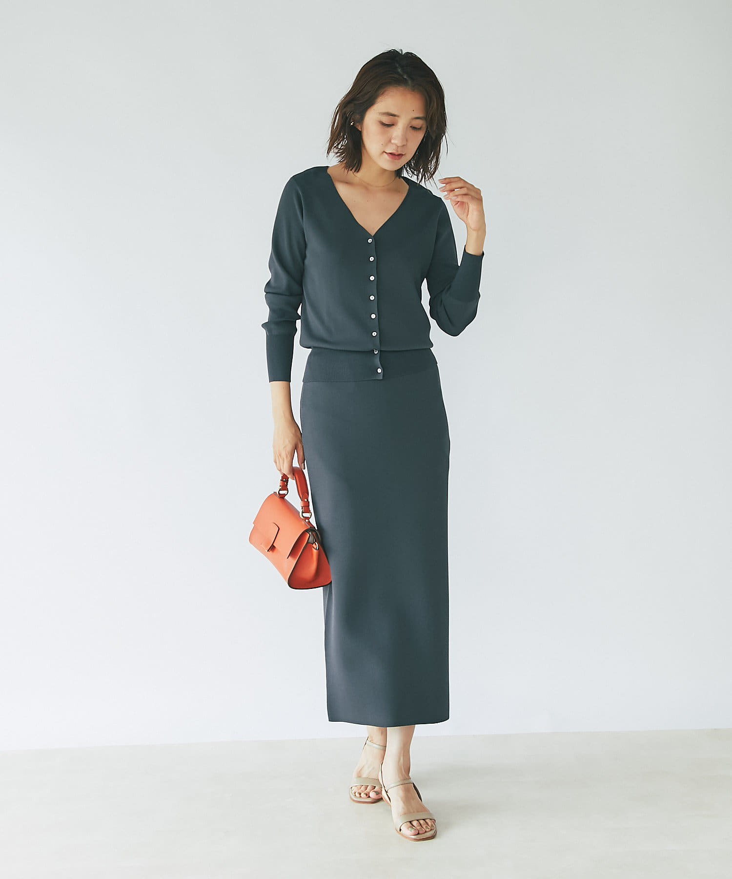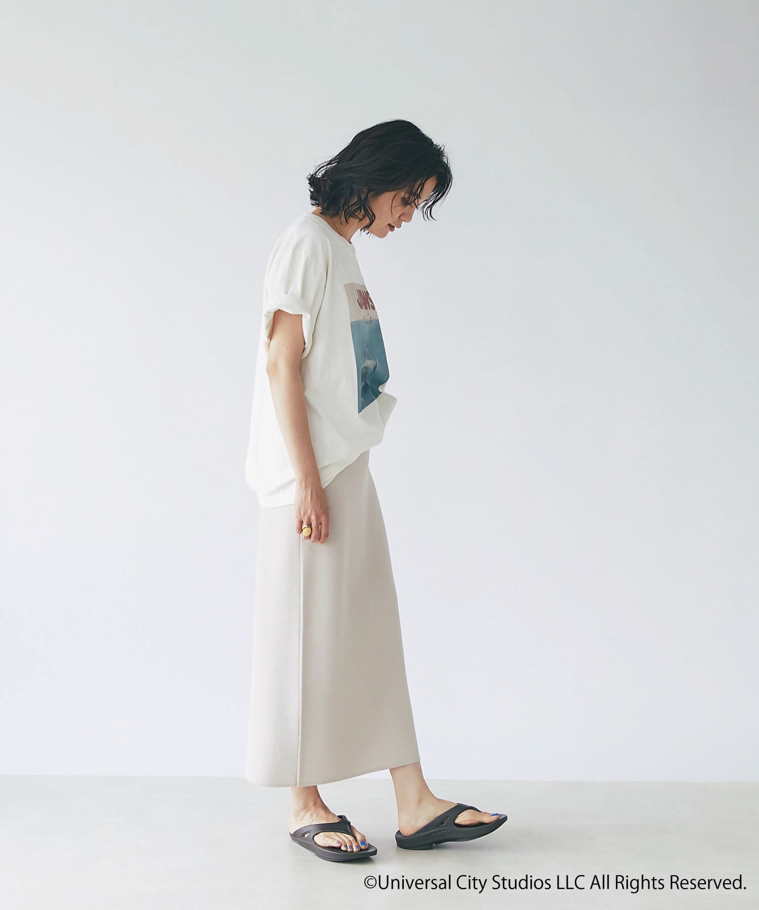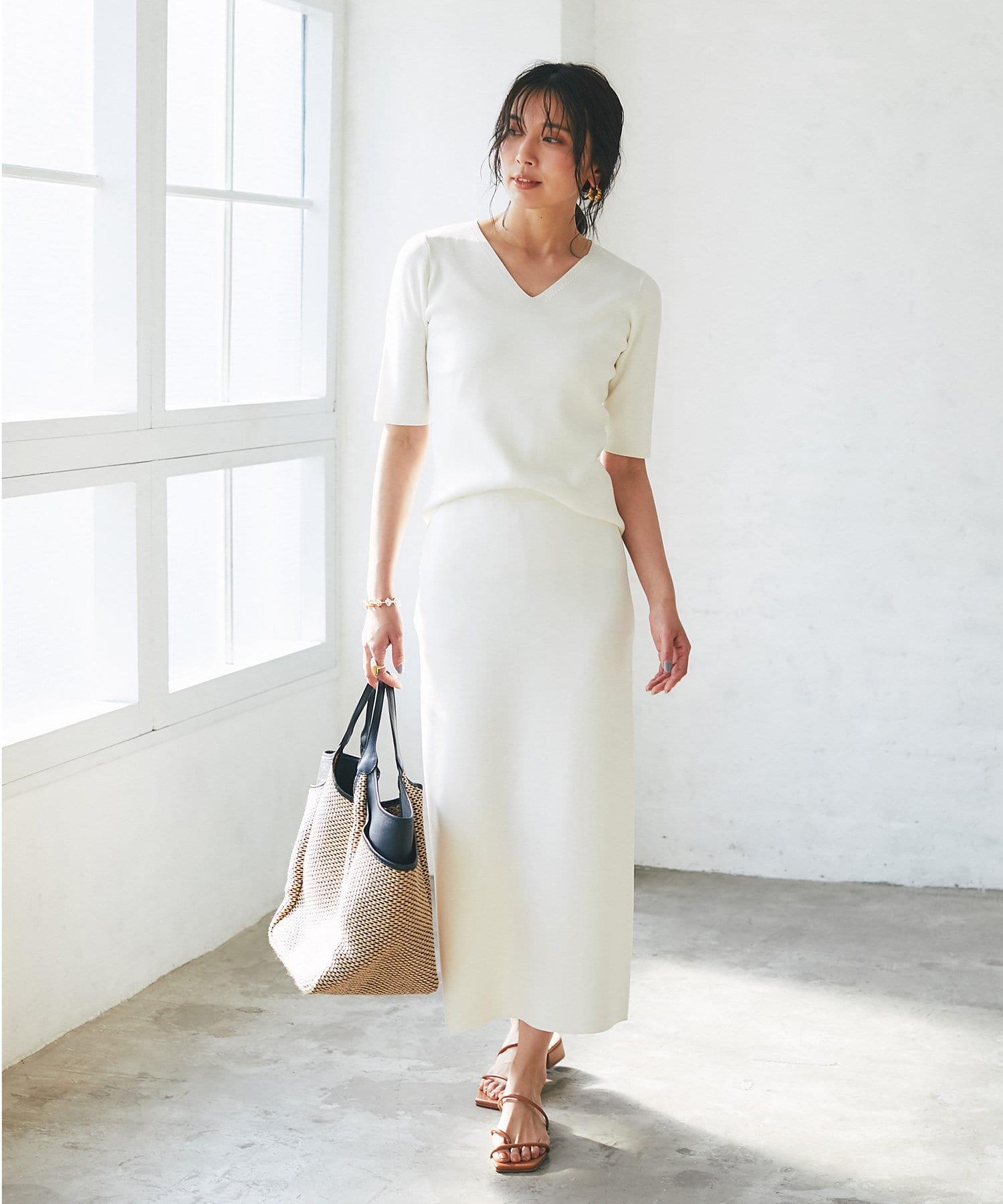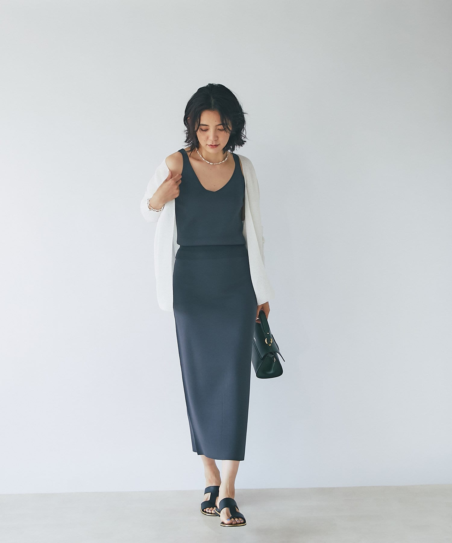 フラットな編地なのでリブスカートよりもキレイめな印象で着用いただけます。
