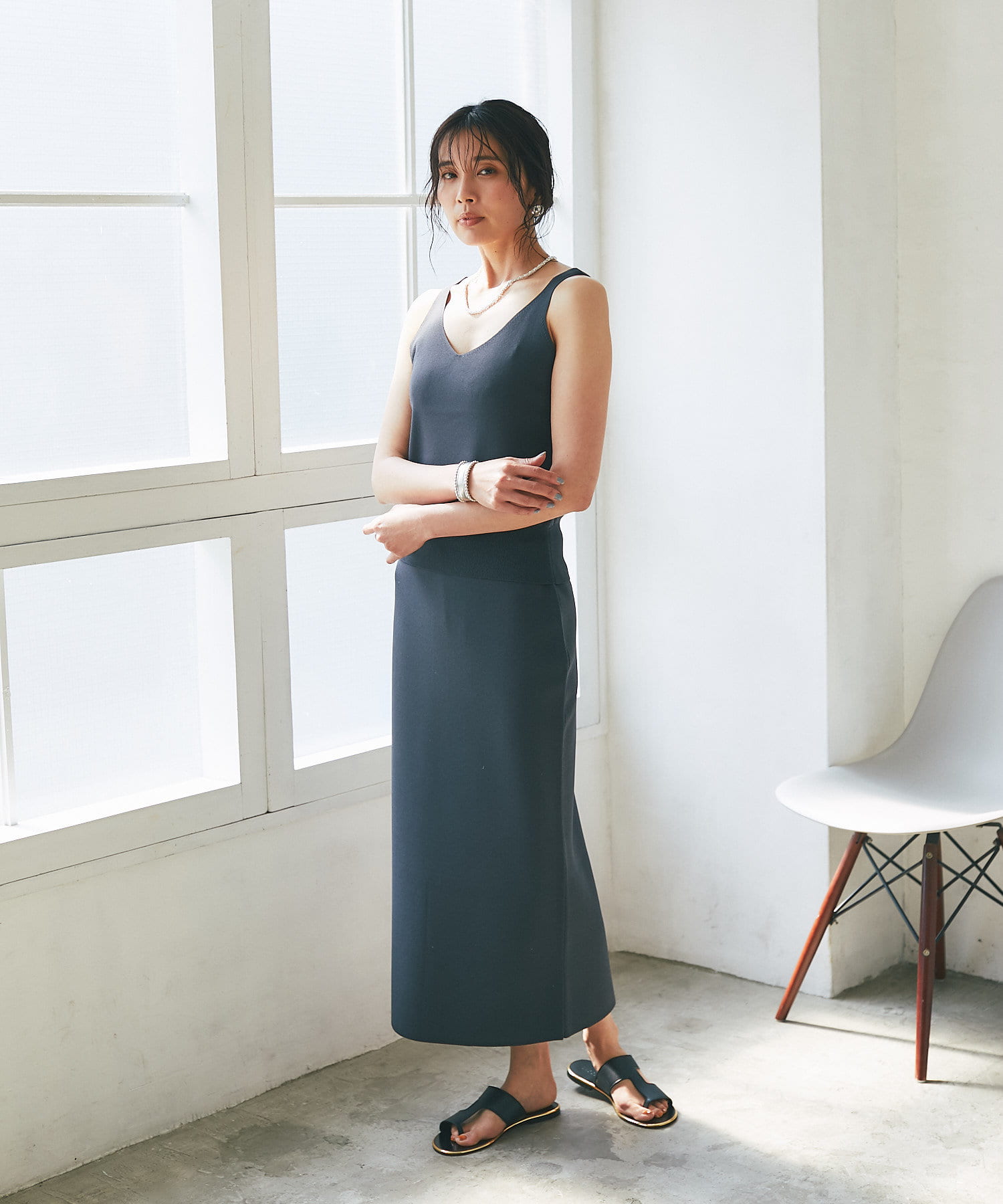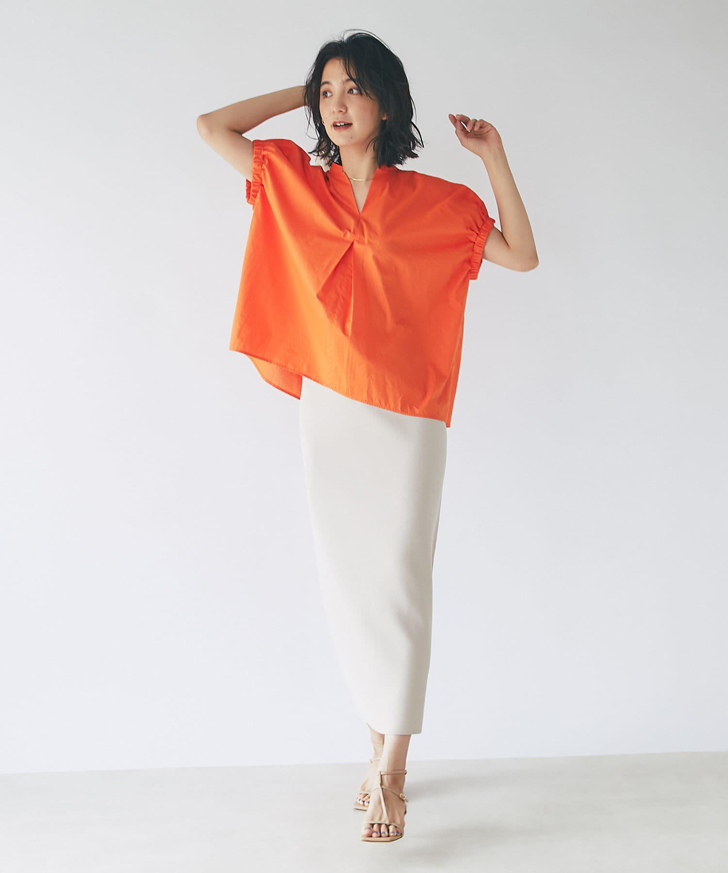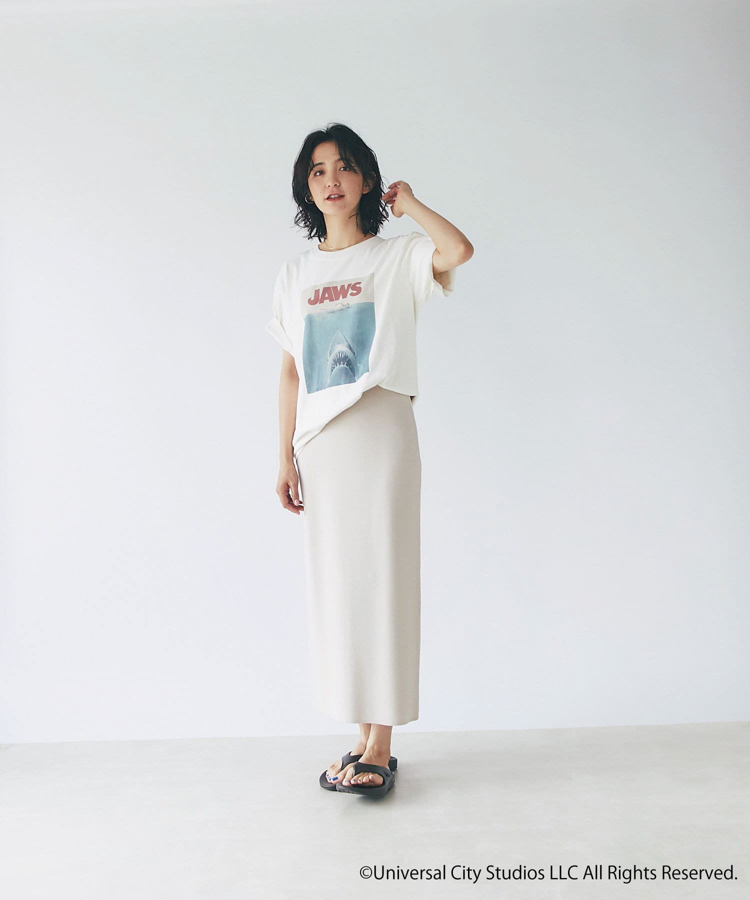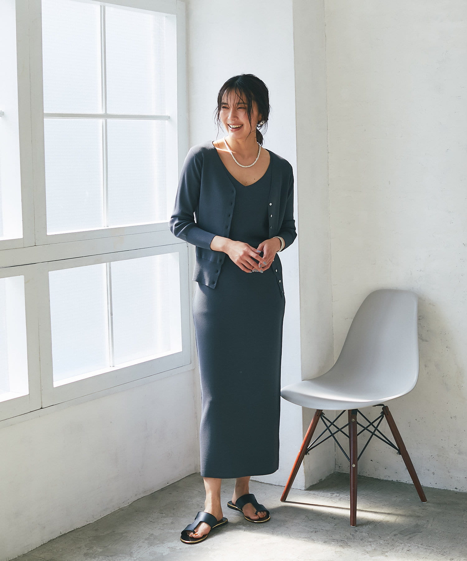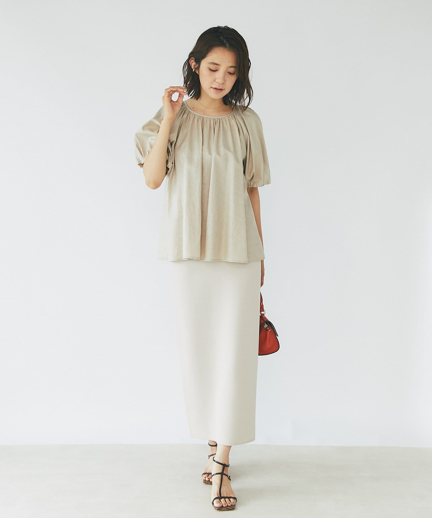 フラットな編地なのでリブスカートよりもキレイめな印象で着用いただけます。
