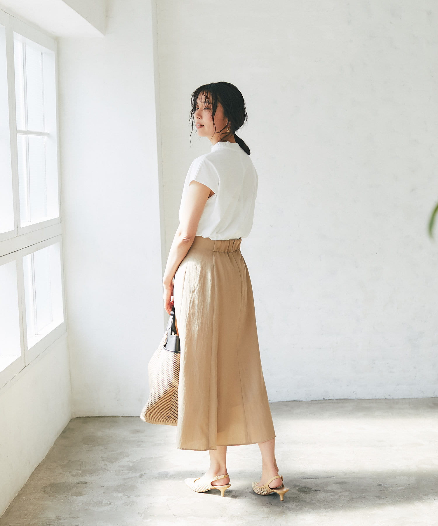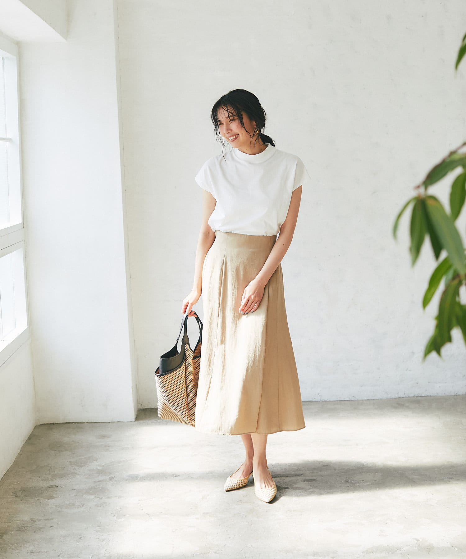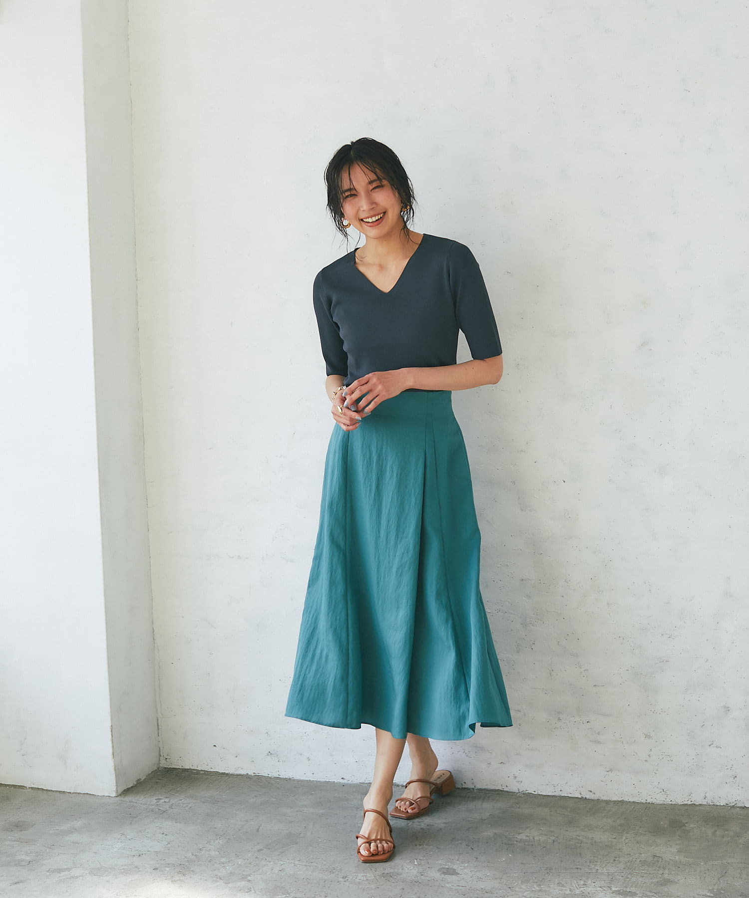 タックがしっかり入ったスカートは縦のラインを強調してくれるため