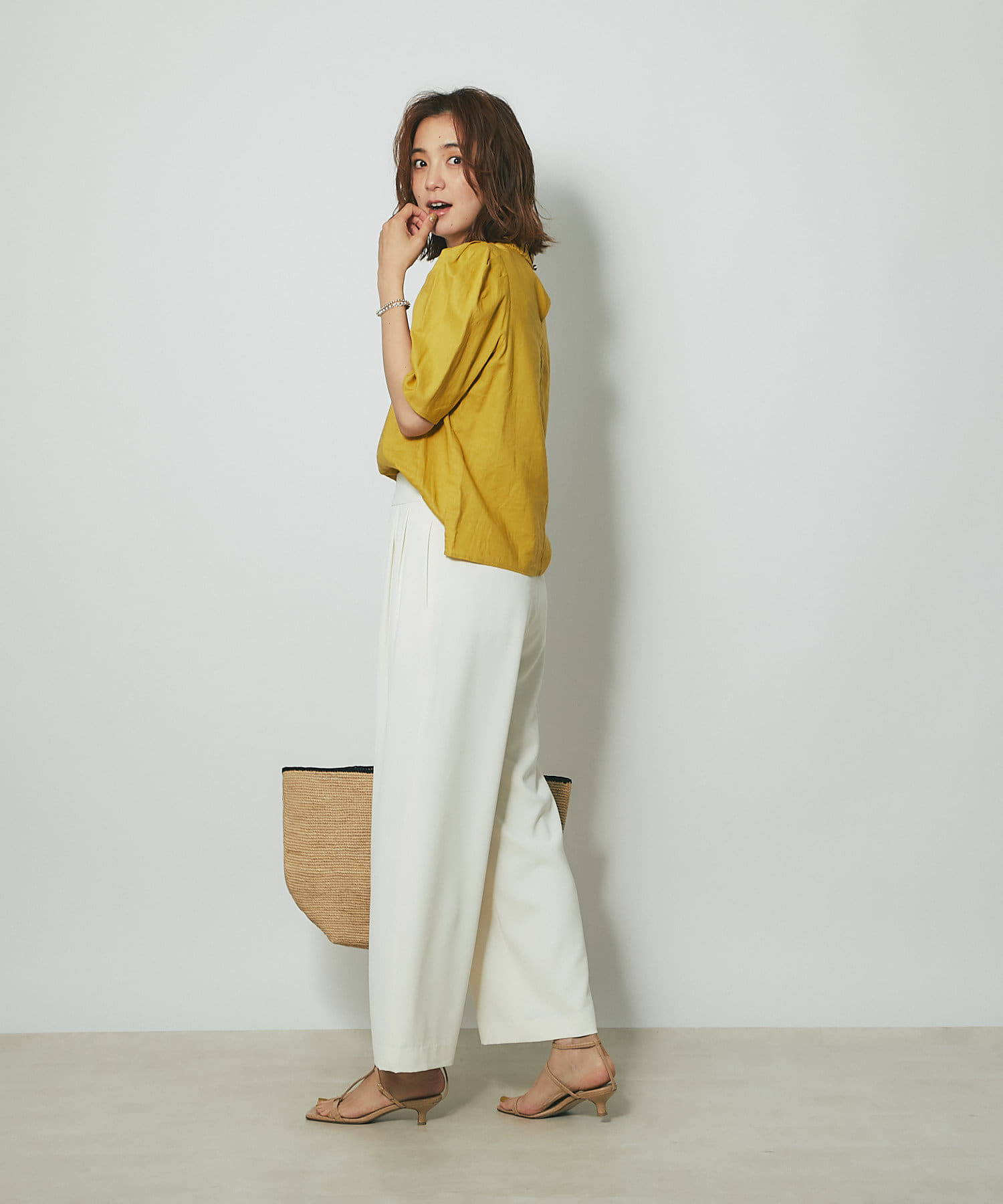• ブラウスは前だけインをしてバランスの良い着こなしがおすすめ