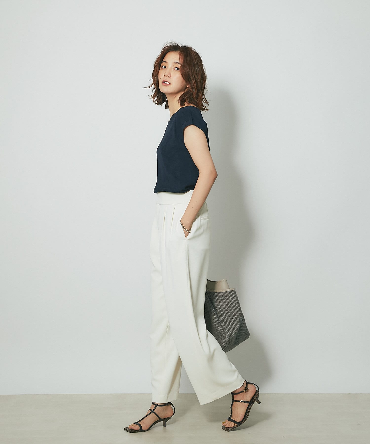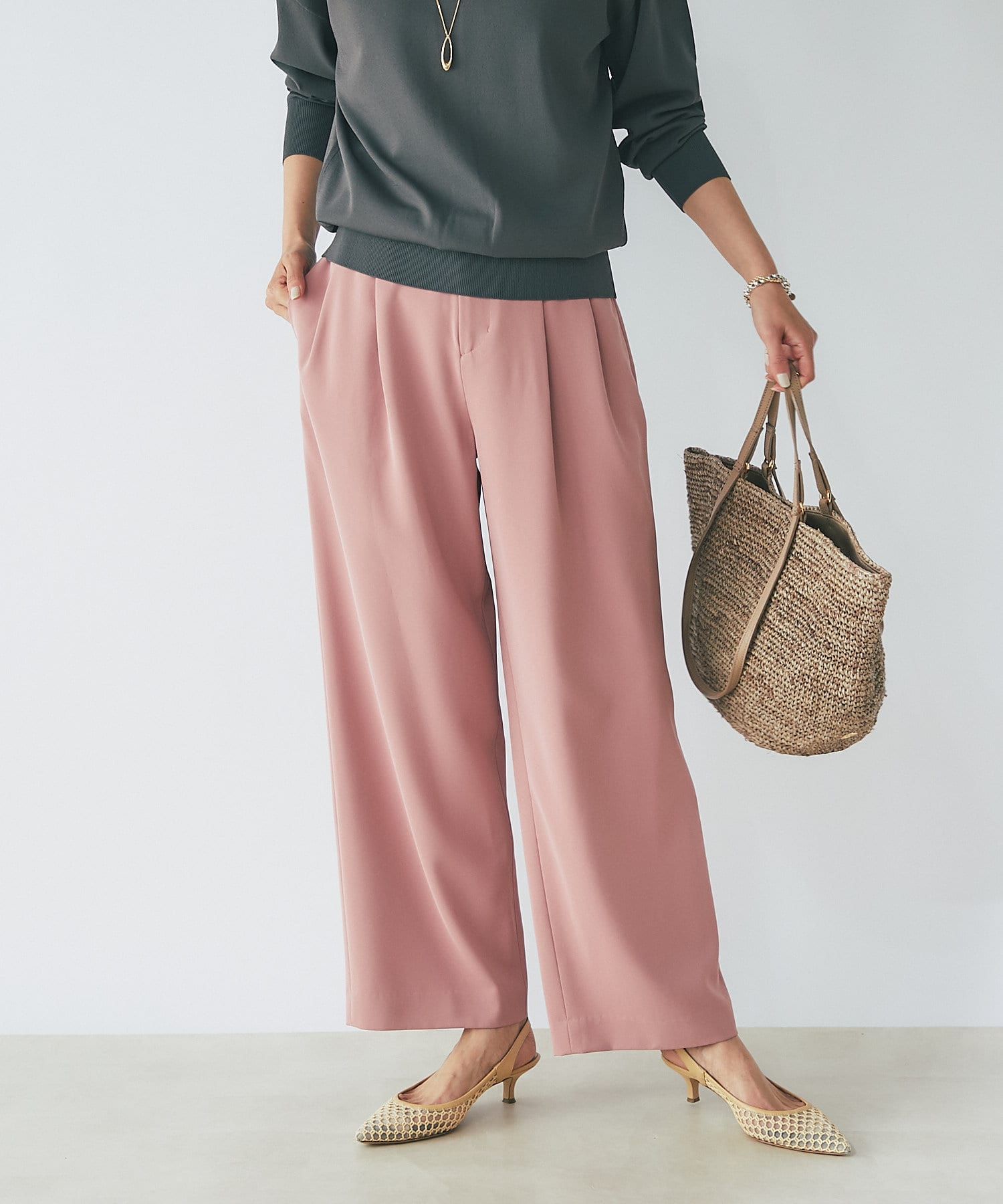 TOP > RIVE DROITE > レディース > パンツ > その他パンツ > 【足長効果抜群】ハイウエストセミワイドパンツ