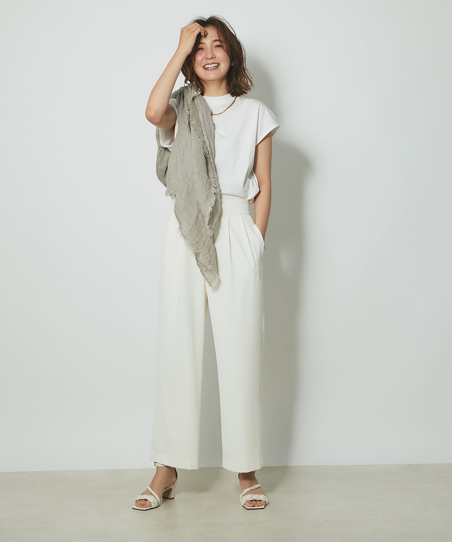 • 2タックでヒップ周りにゆとりもあり、広がり過ぎないすっきりシルエット