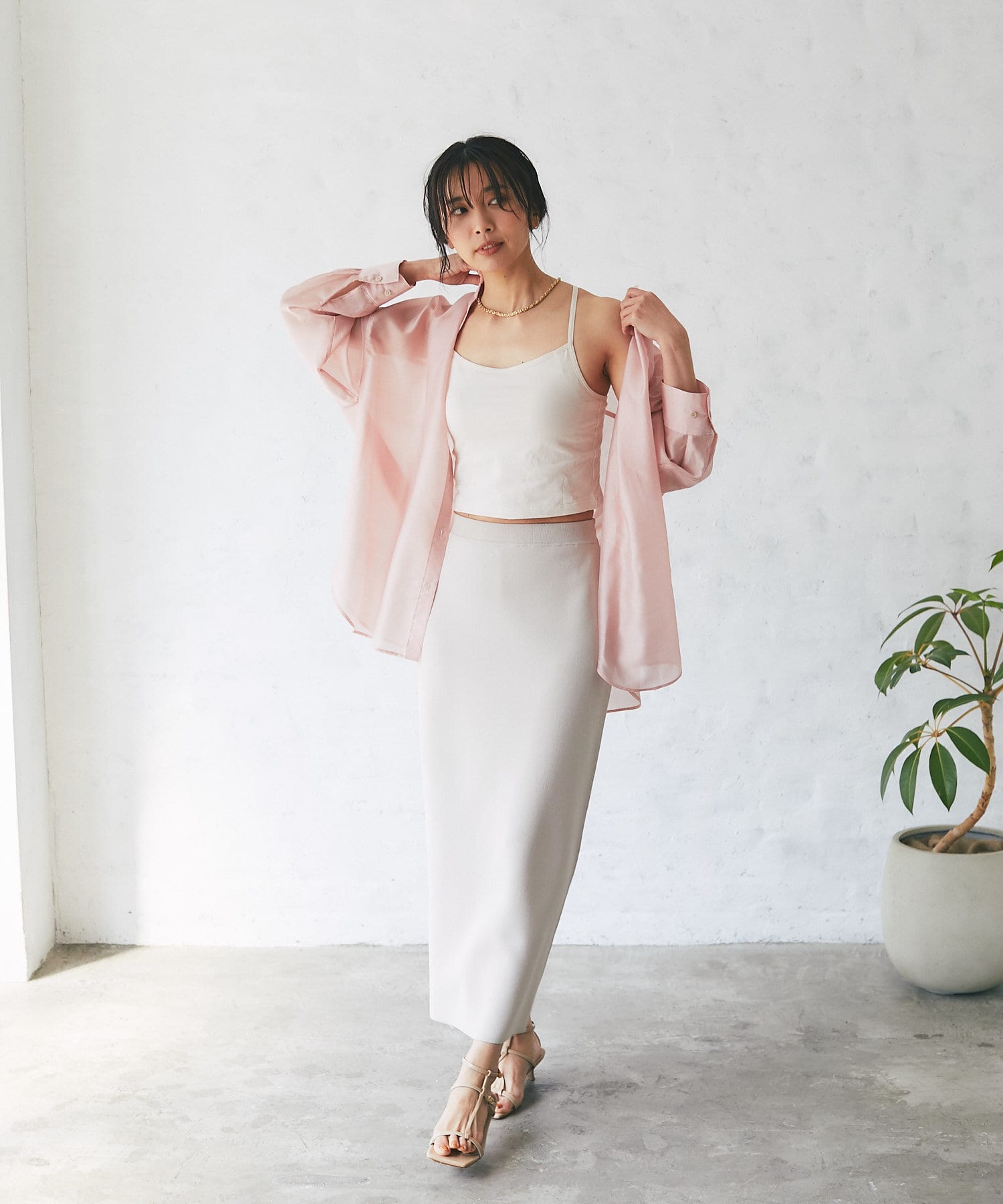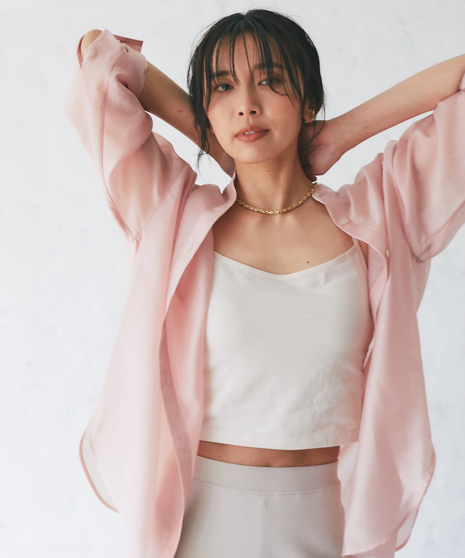 透け感を楽しんでタンクトップの上に羽織るのがおすすめ◎