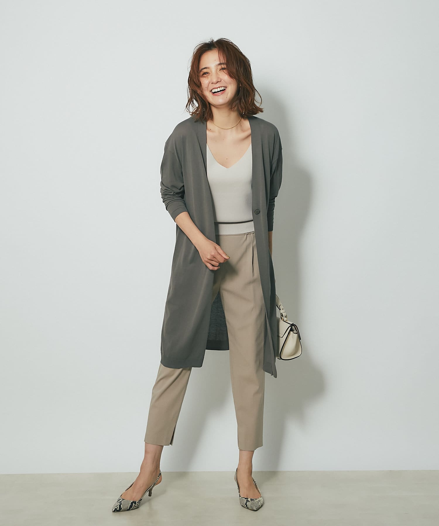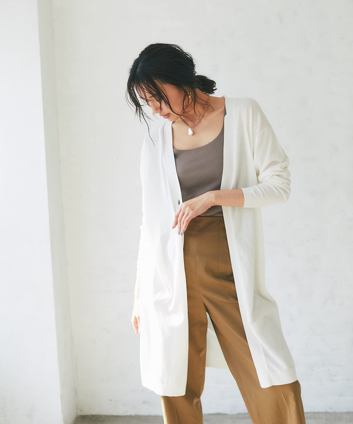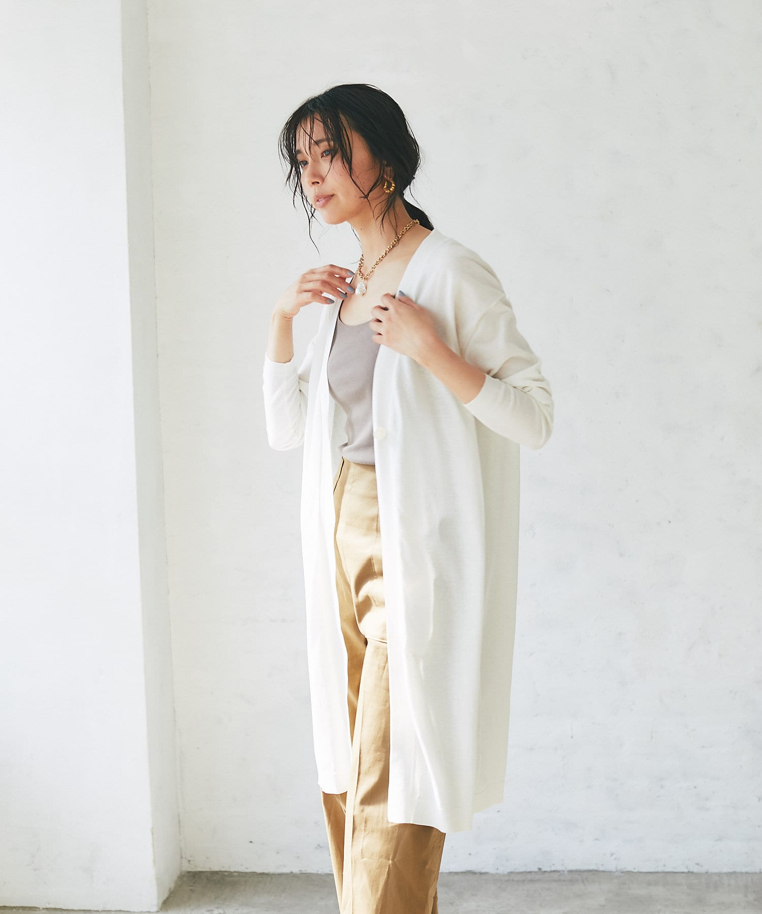 ボトムスを選ばずに着用いただけるカーディガンは、