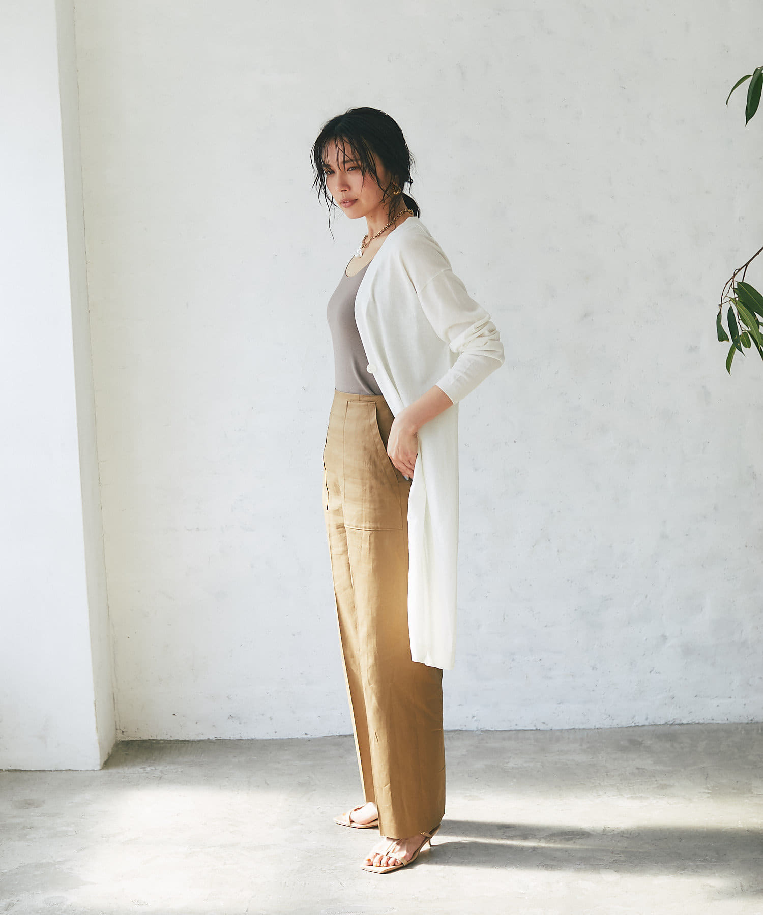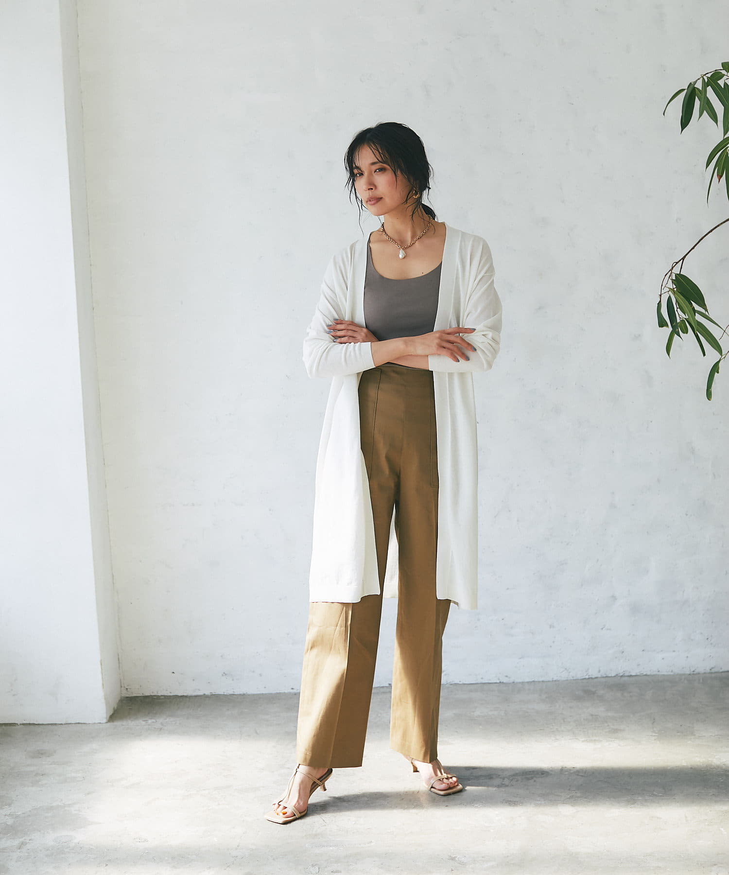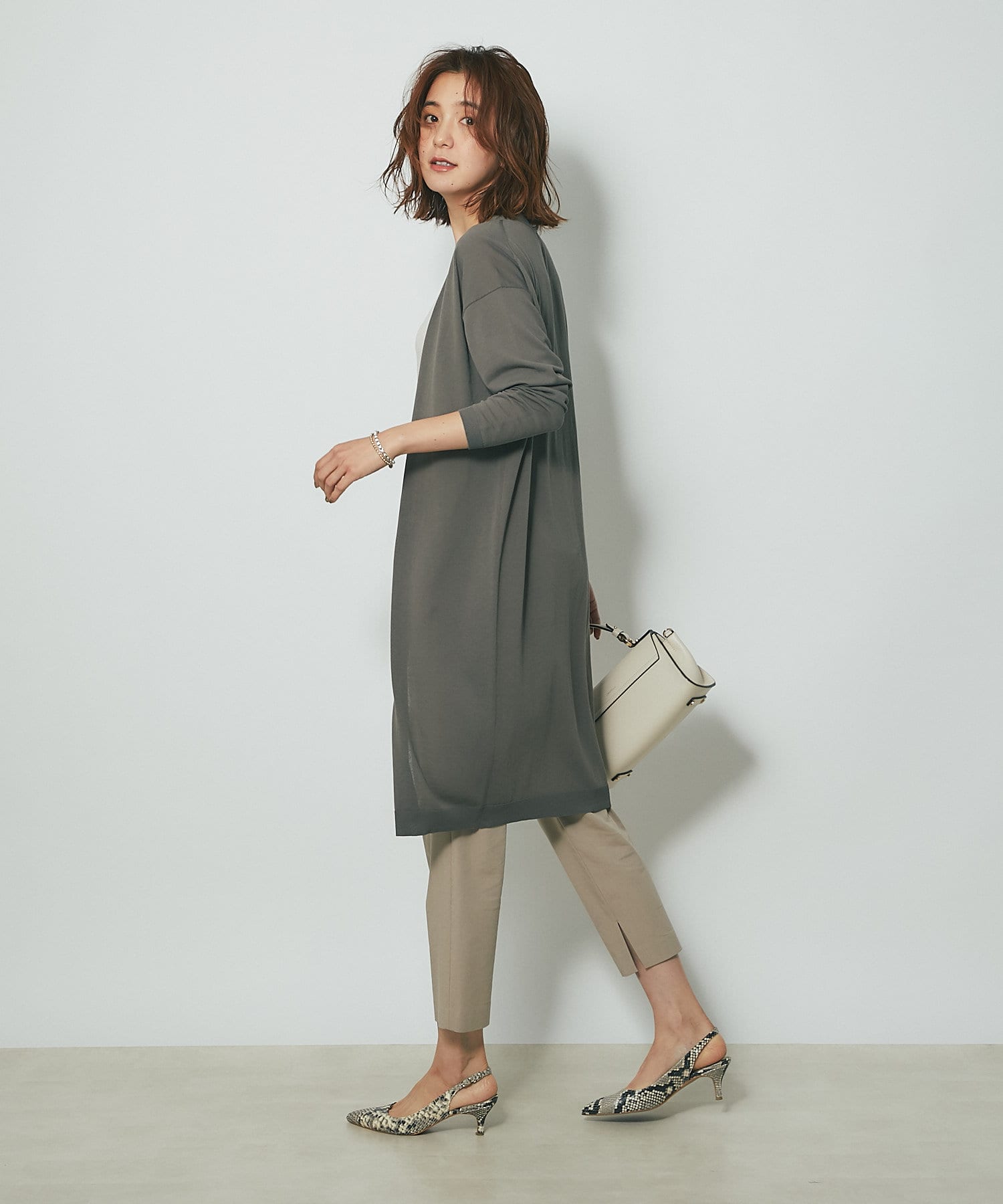 ボトムスを選ばずに着用いただけるカーディガンは、