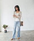 素材感:伸縮性がよく、UVカット機能も付いているので夏の羽織物にもおすすめです◎