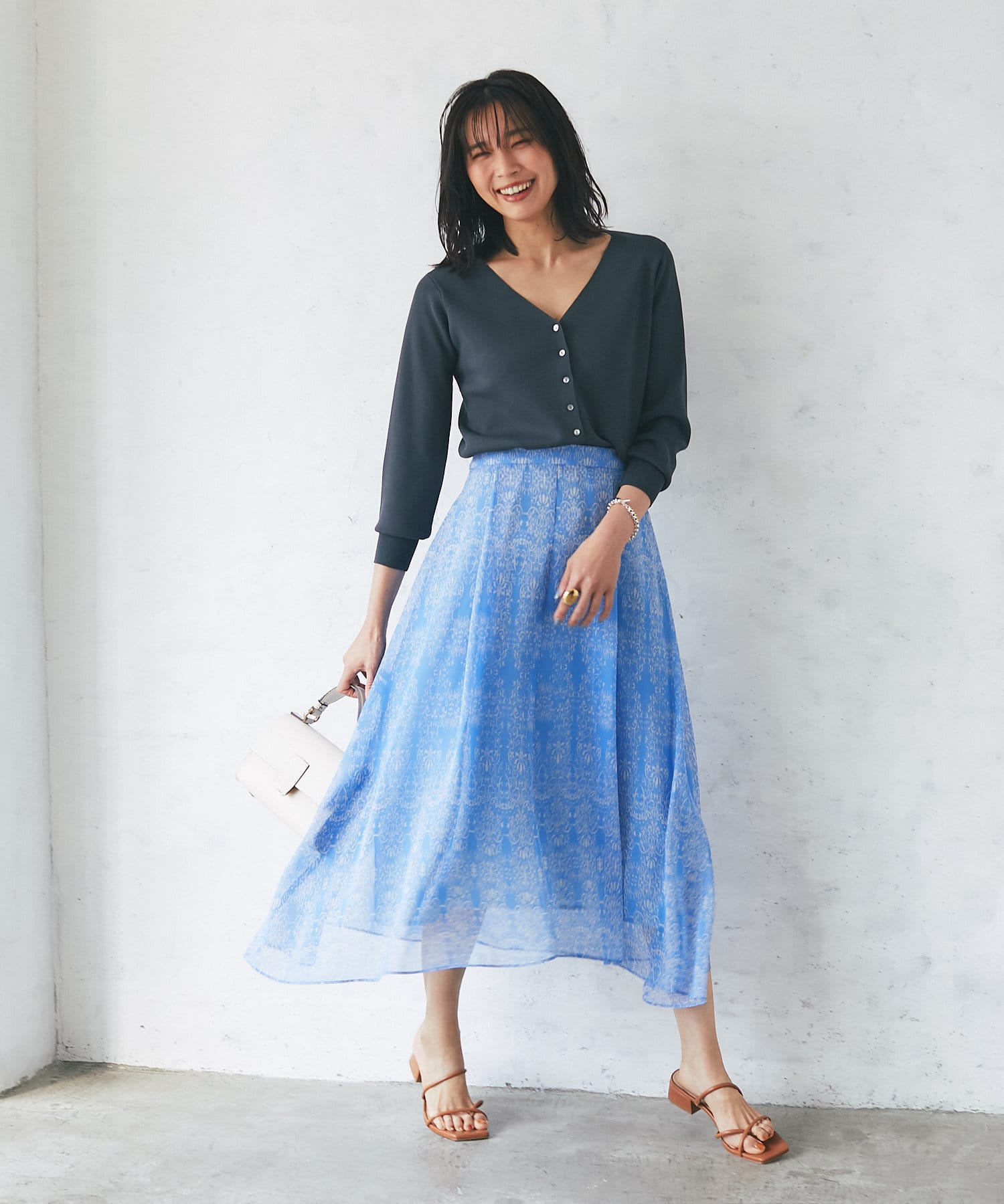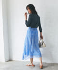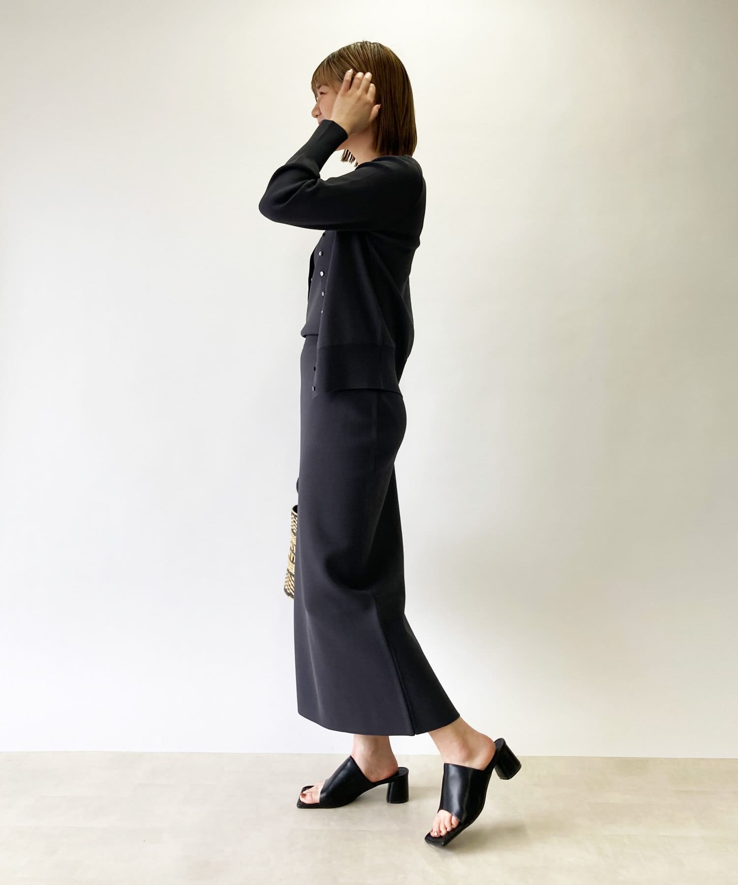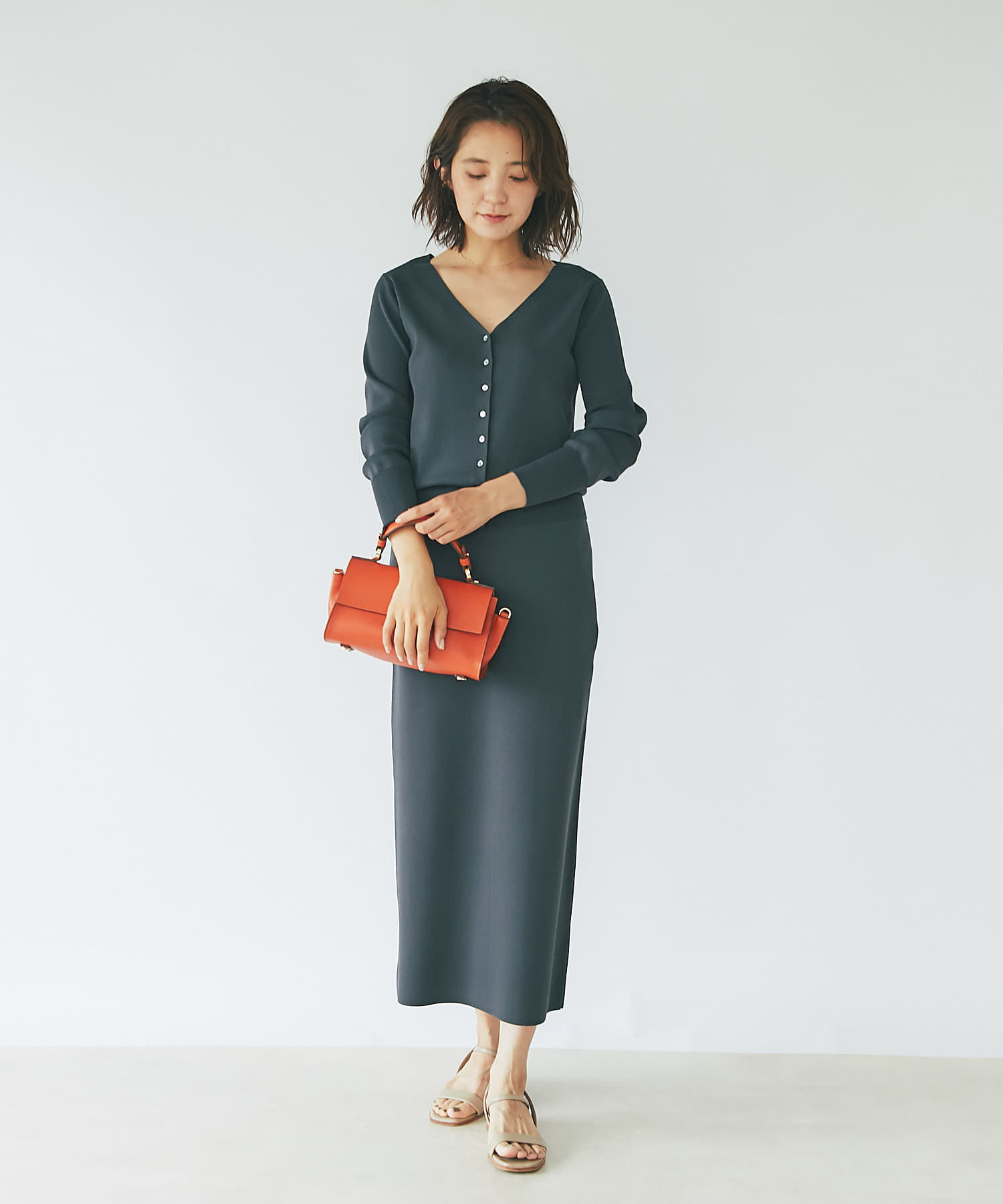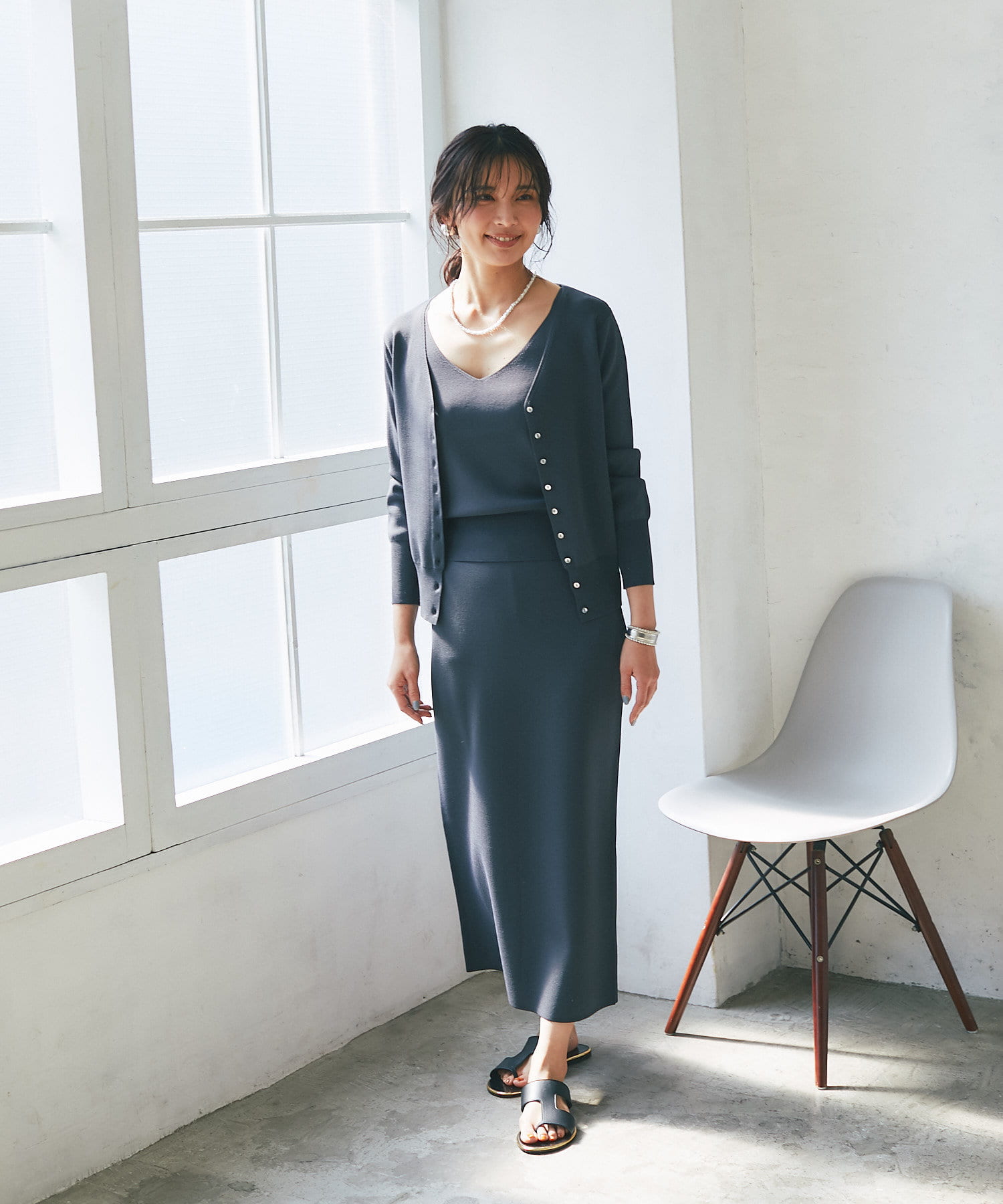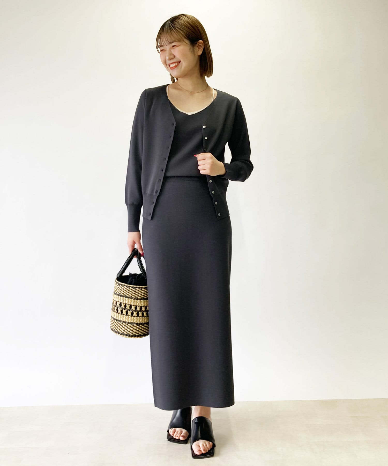 同素材のストレートスカートやキャミソールとのセットアップが今季らしく着こなせて