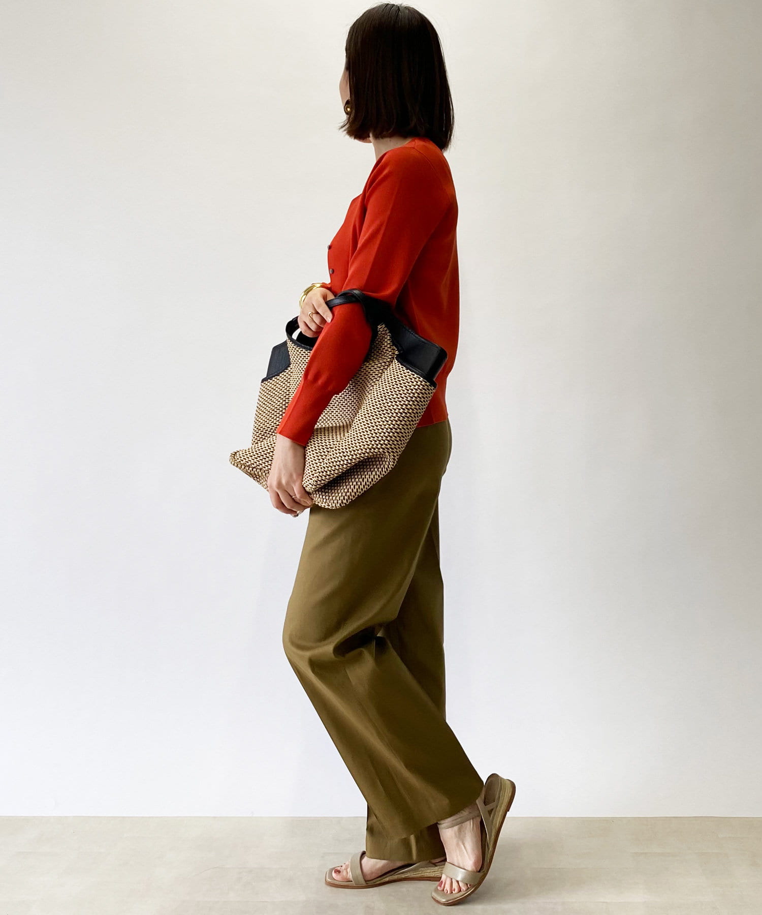 差し色に活躍するオレンジは、肩がけや斜めがけなどのポイント使いもできて◎