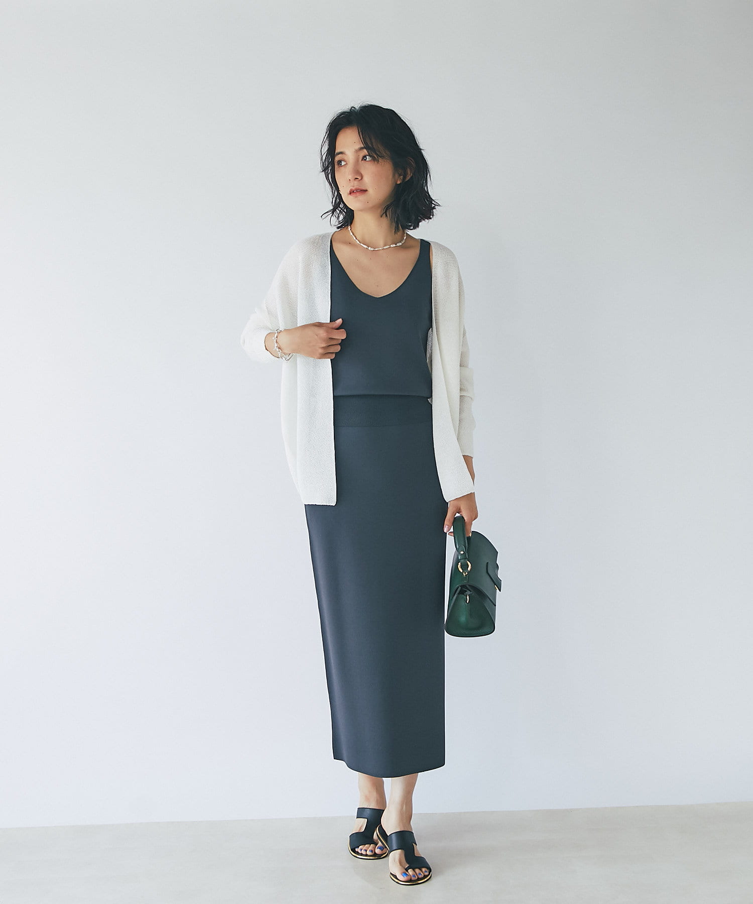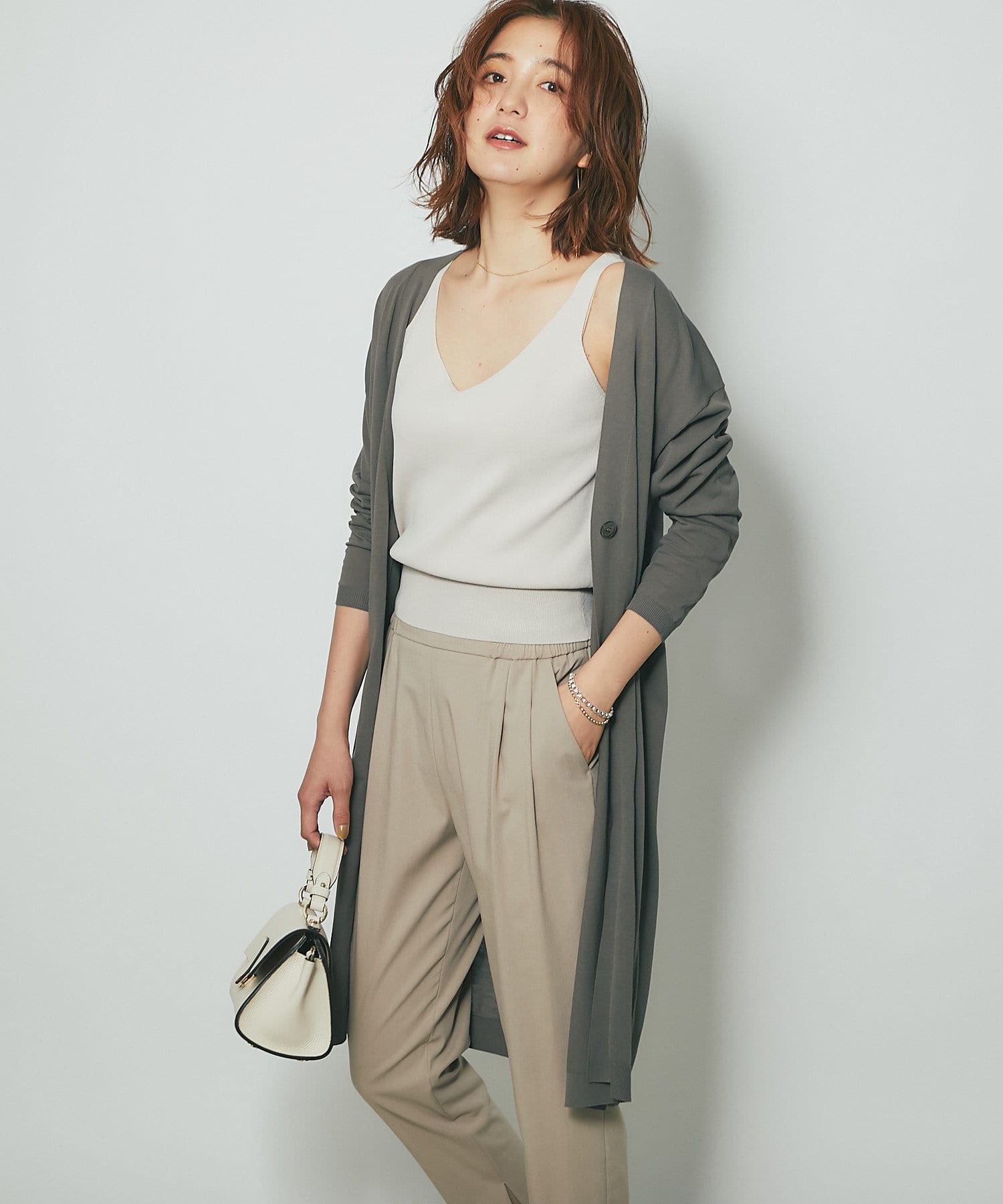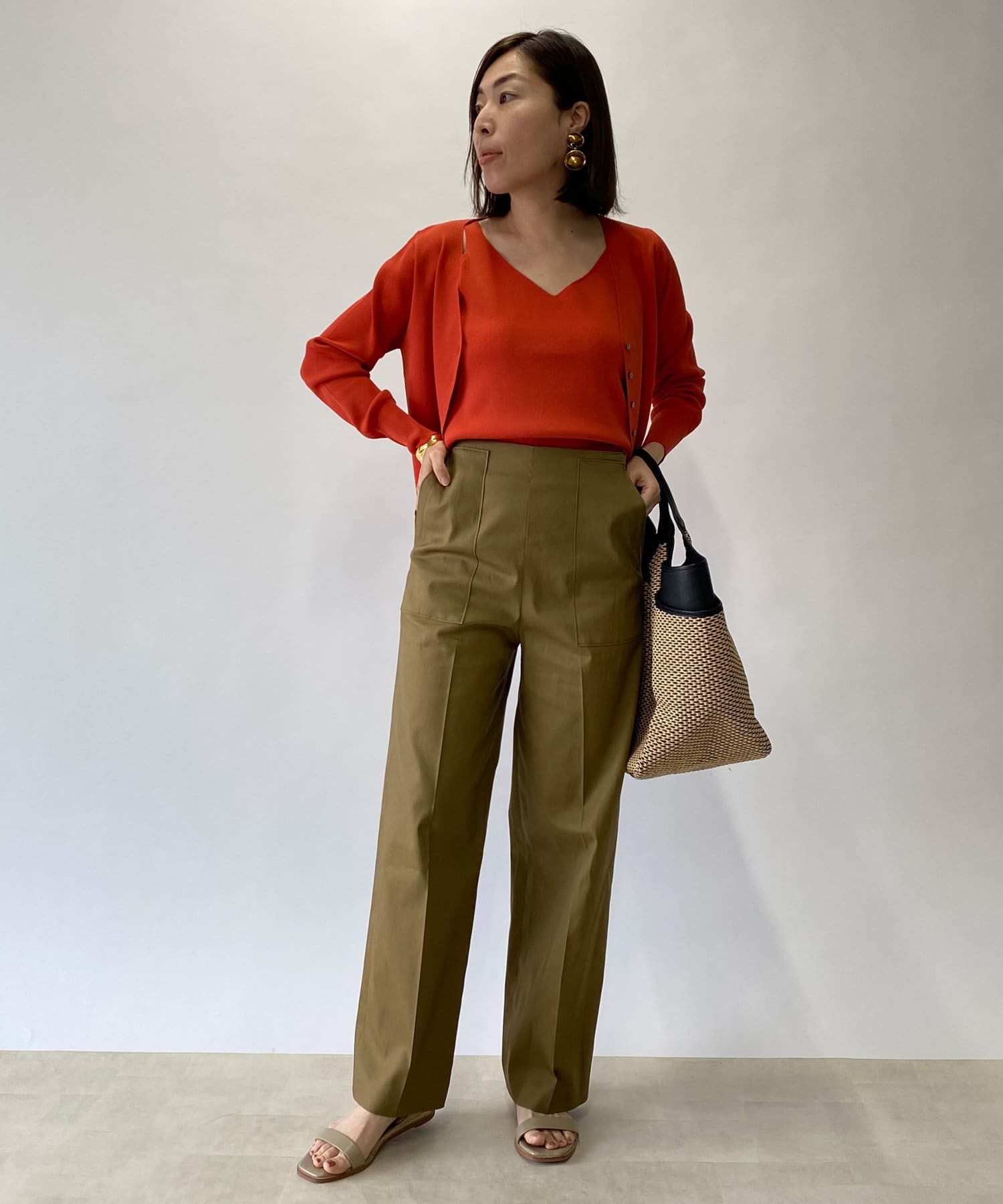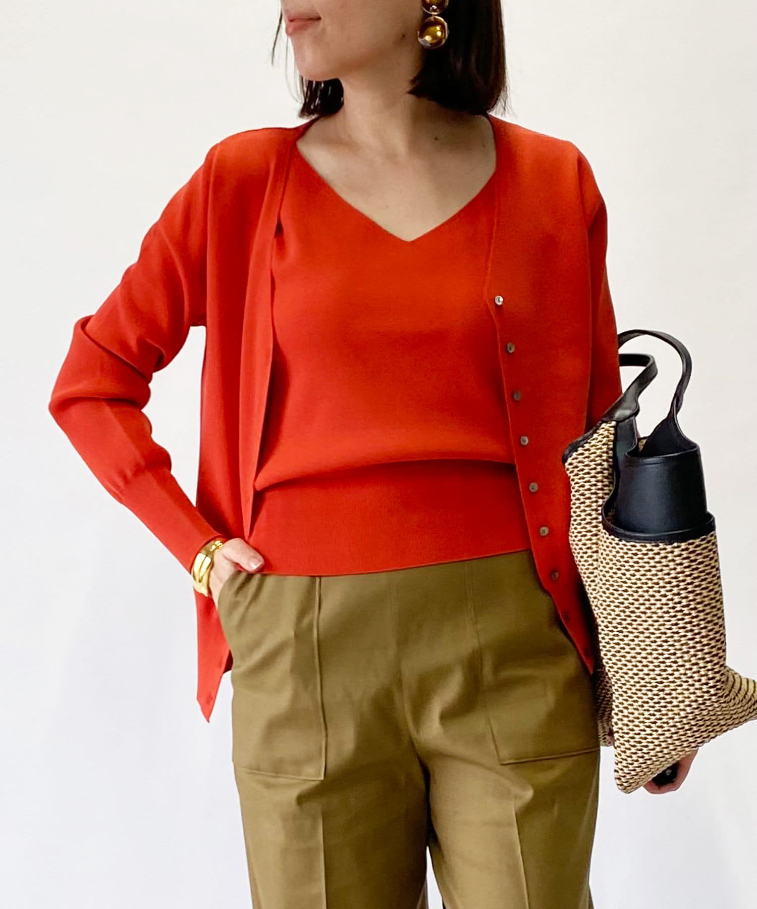 コンパクトカーデとのセットアップコーデもおすすめ。