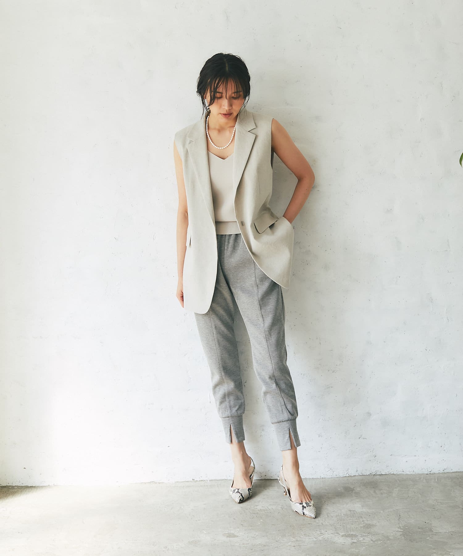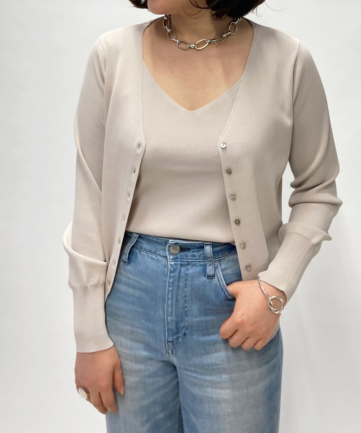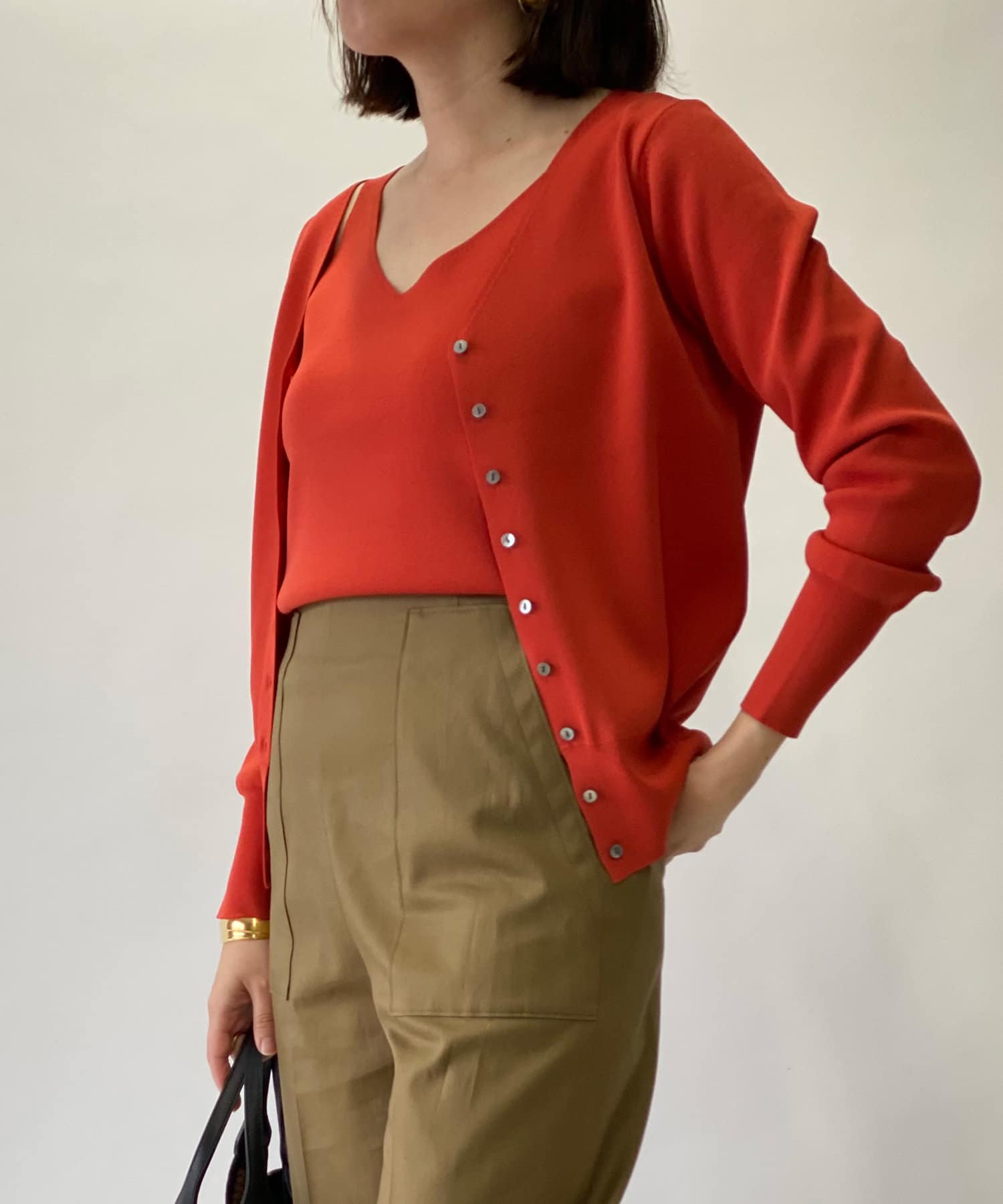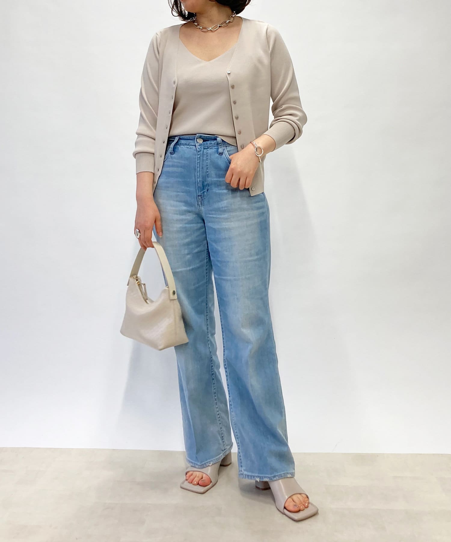 コンパクトカーデとのセットアップコーデもおすすめ。