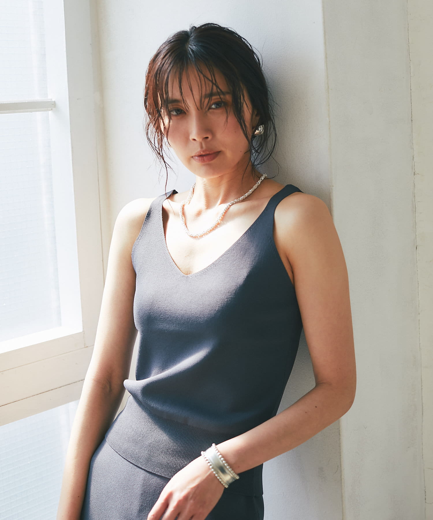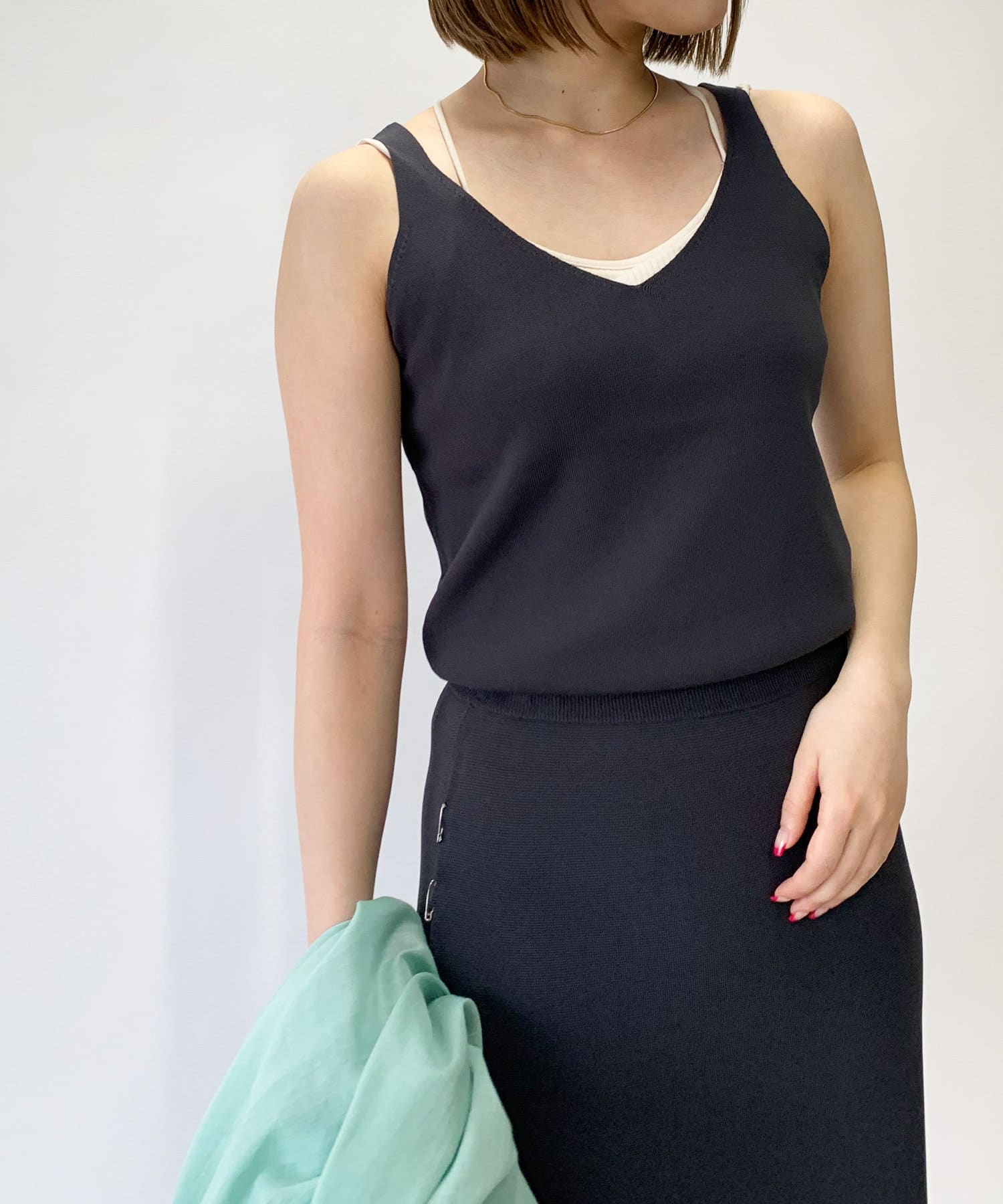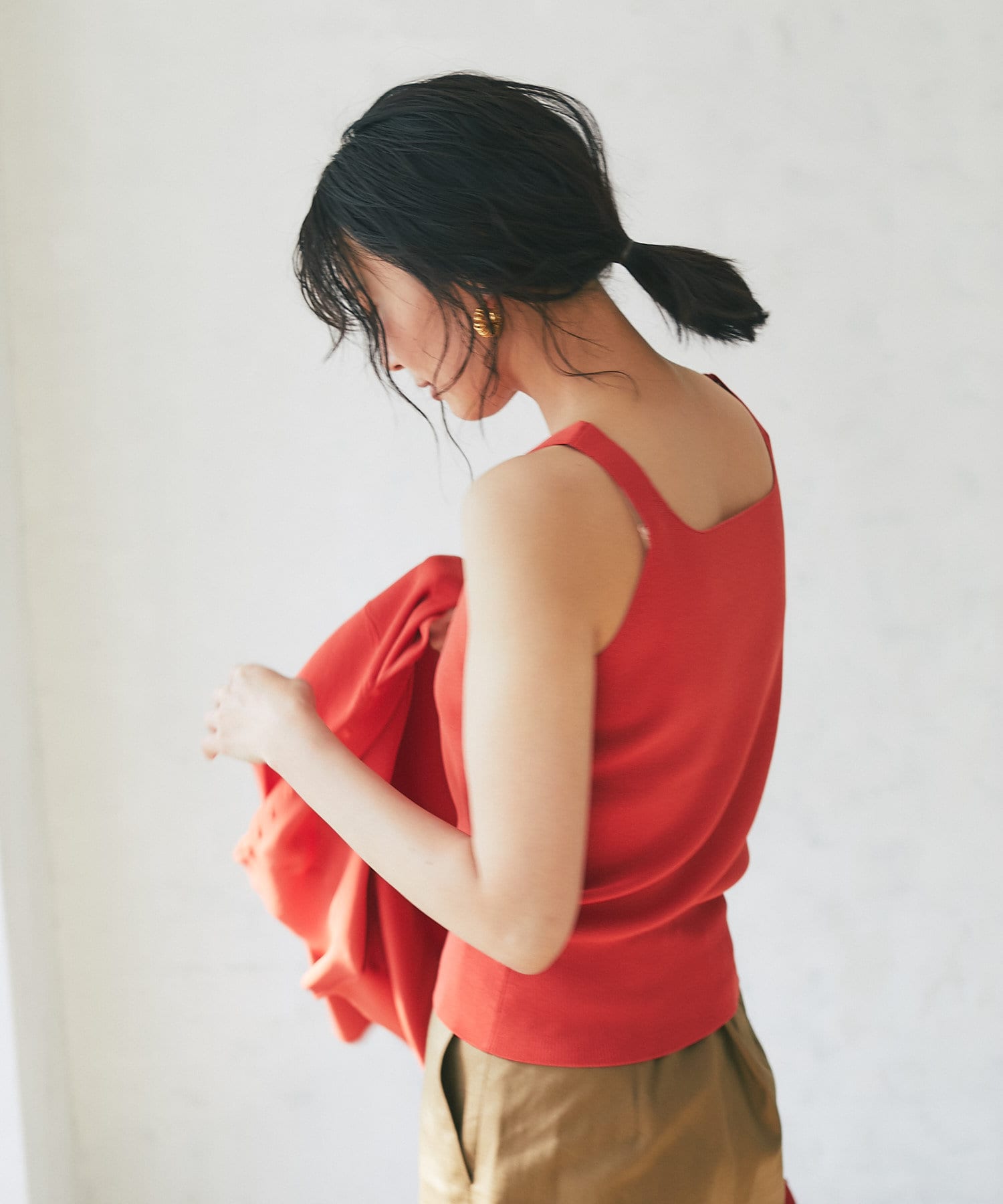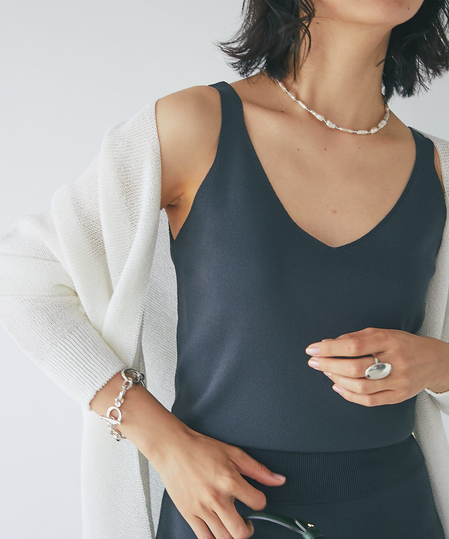 総針編みのスッキリした印象のキャミソールは、ストラップの幅にもこだわり