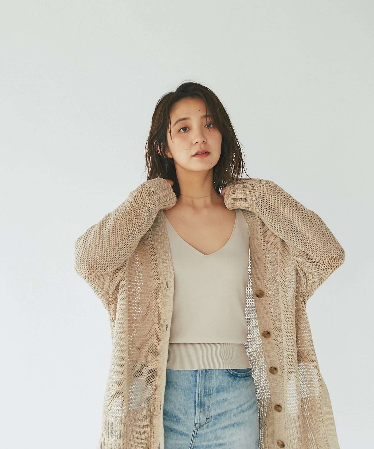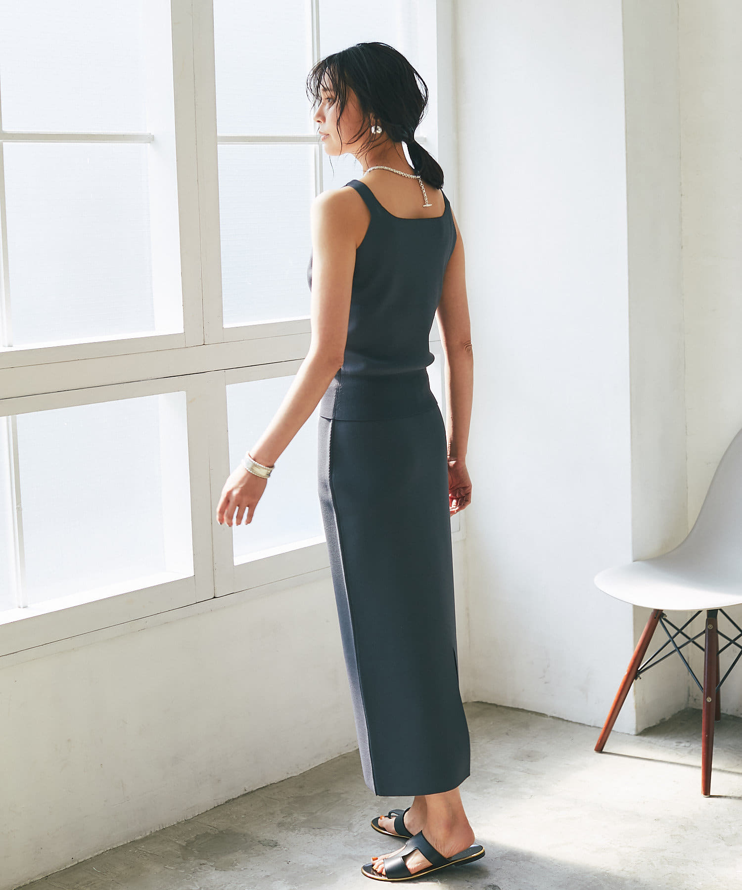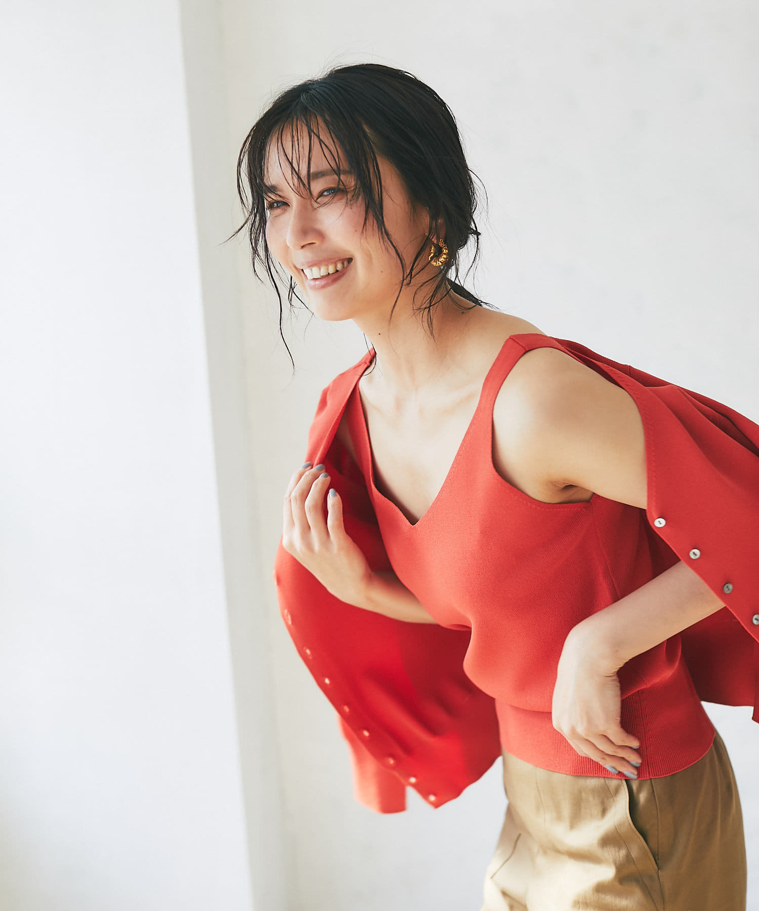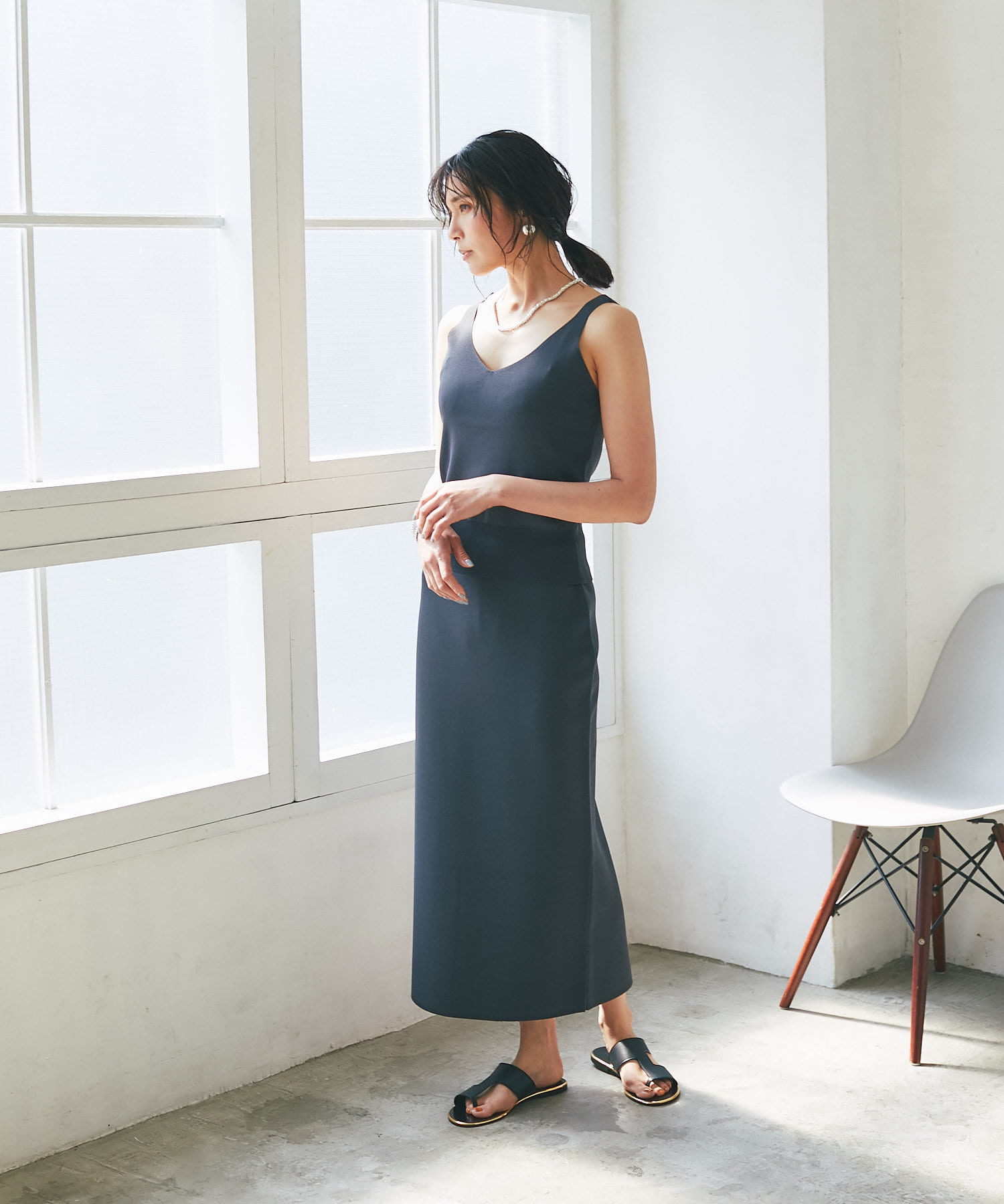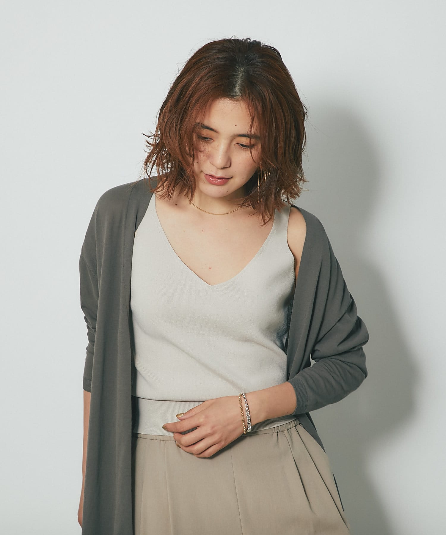総針編みのスッキリした印象のキャミソールは、ストラップの幅にもこだわり