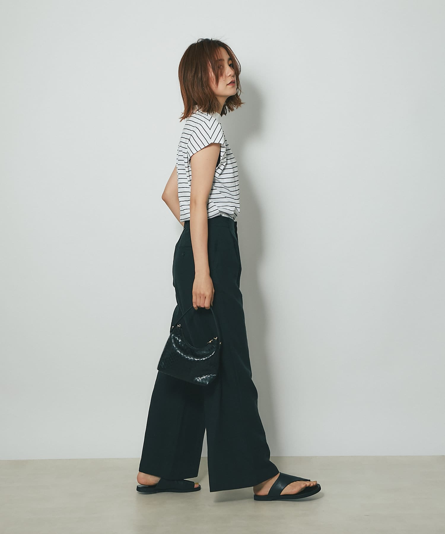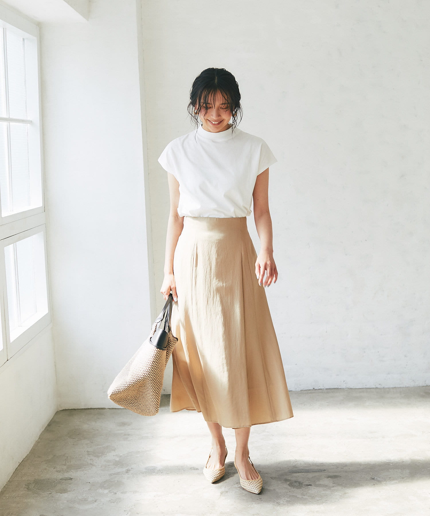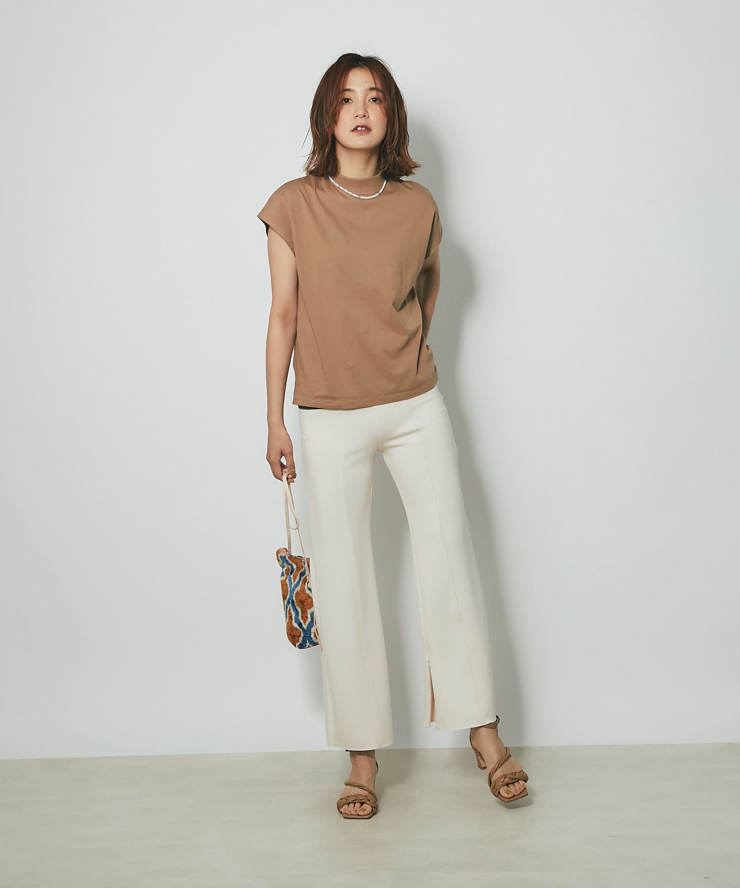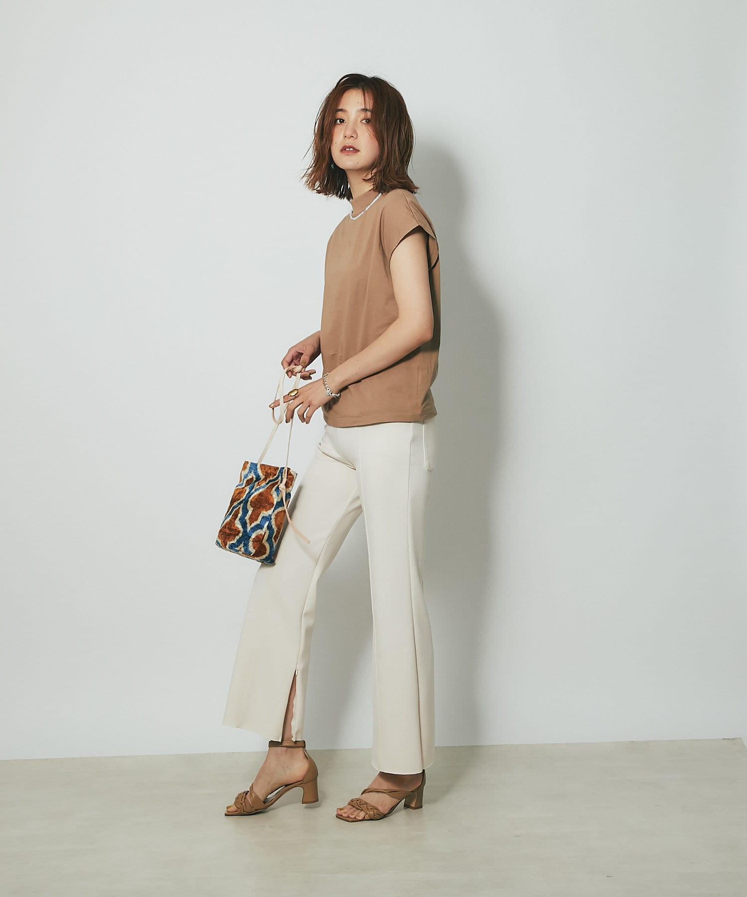 すっきりしたデザインなので、フレアやボリュームのあるボトムとの相性も抜群◎