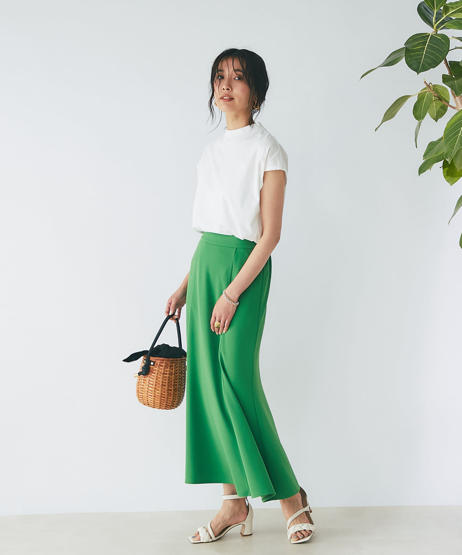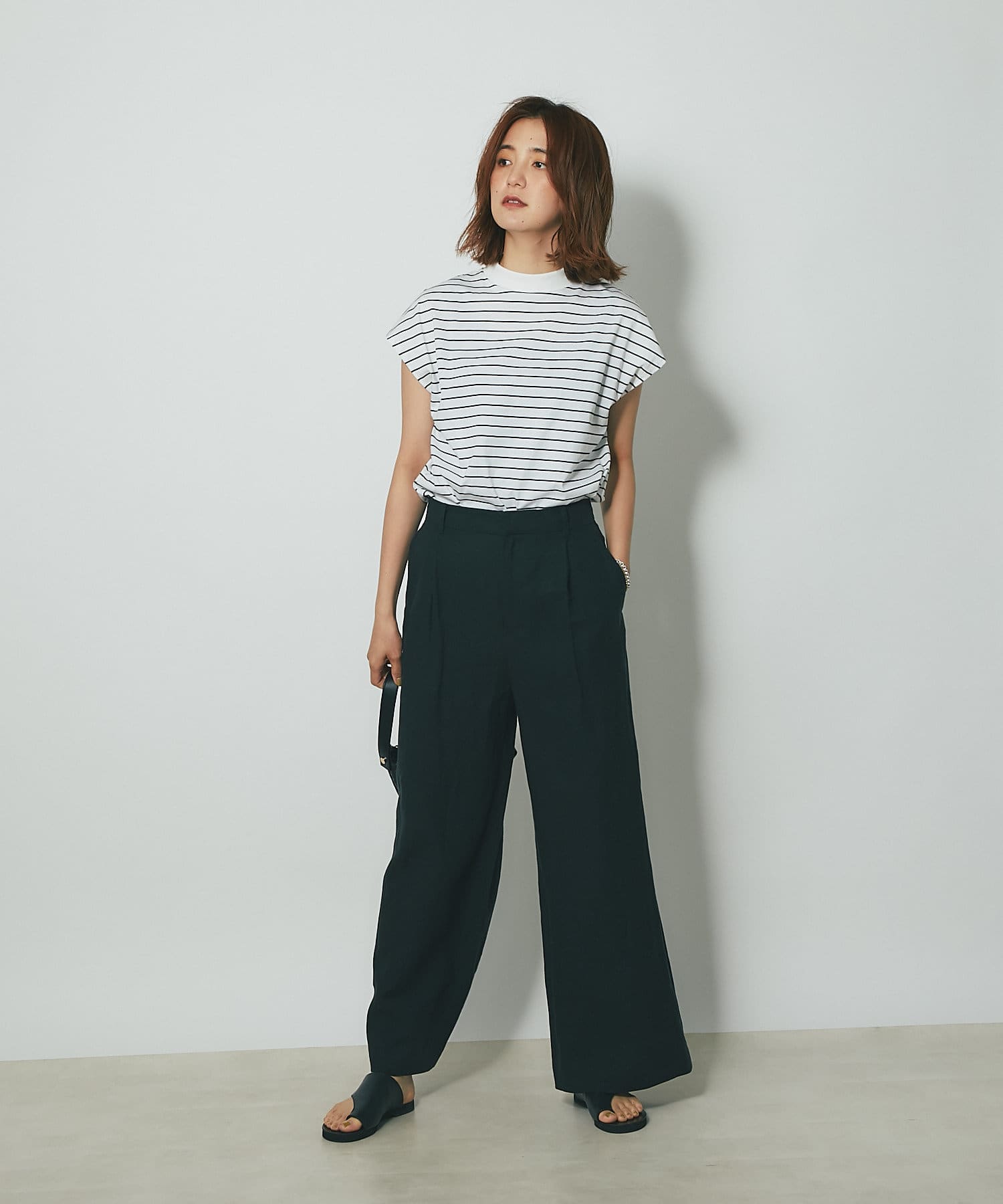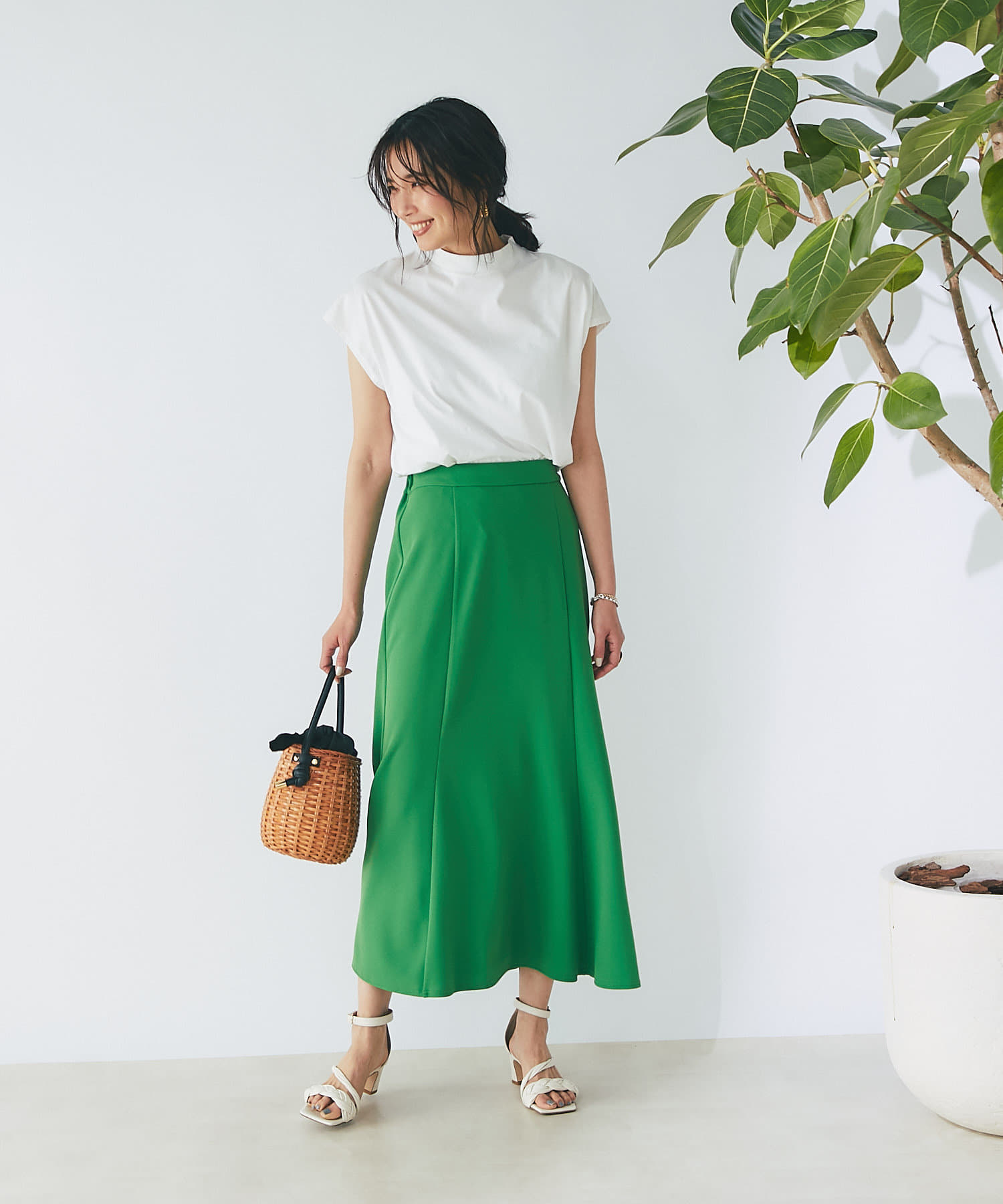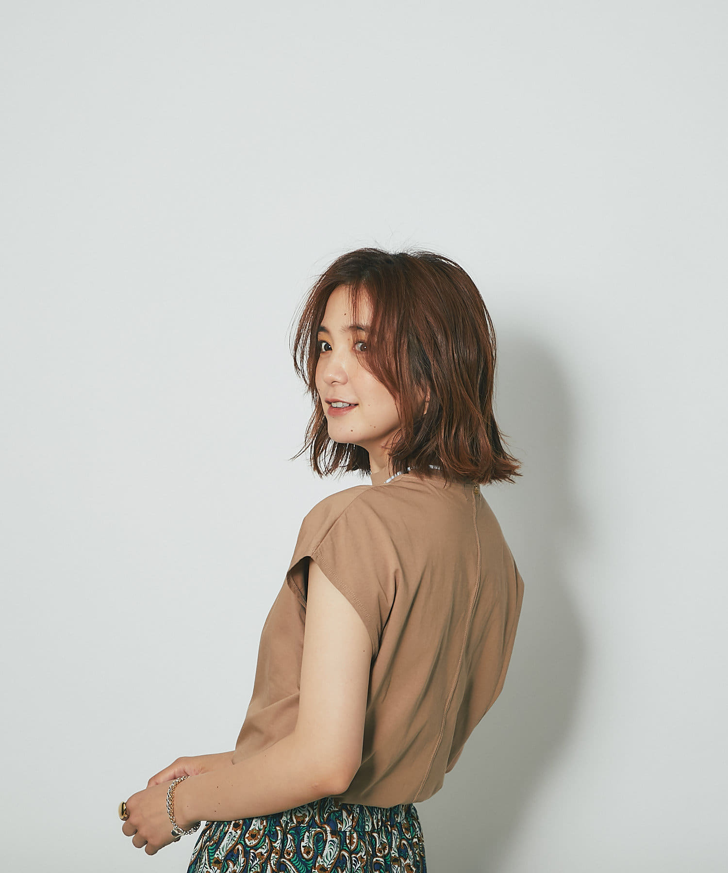 すっきりしたデザインなので、フレアやボリュームのあるボトムとの相性も抜群◎