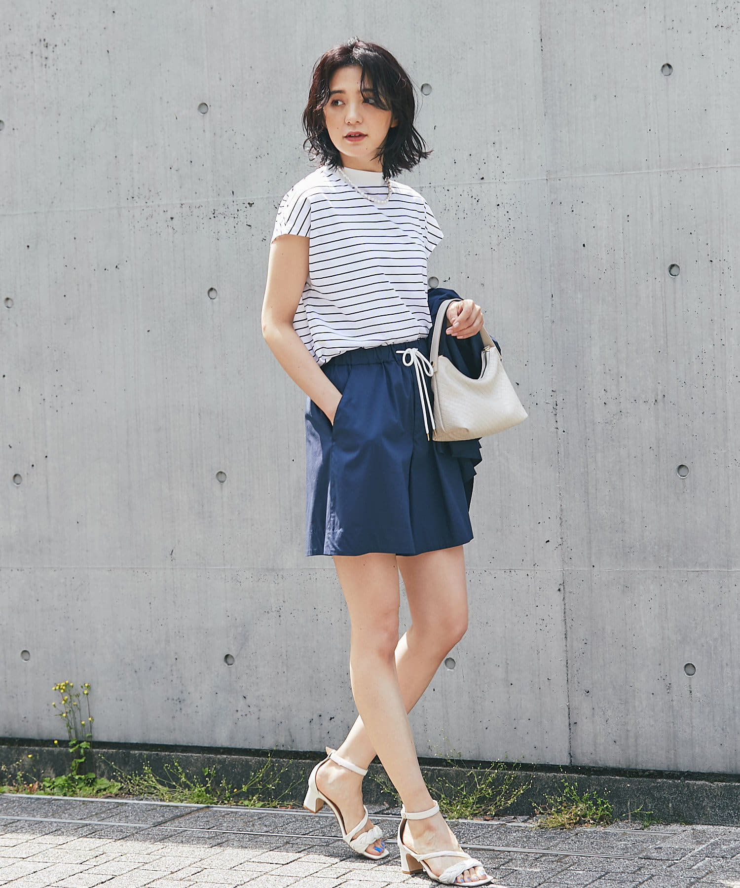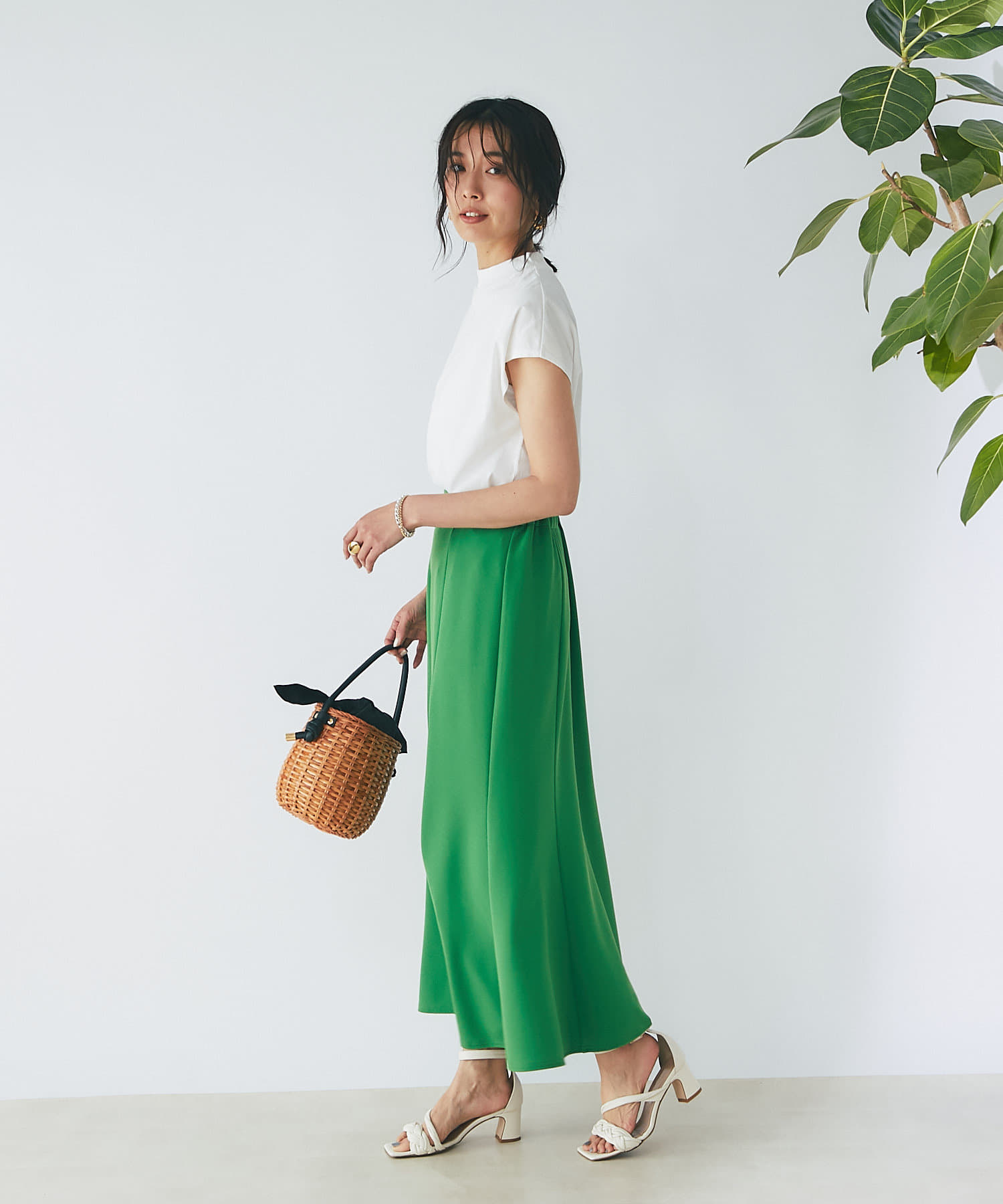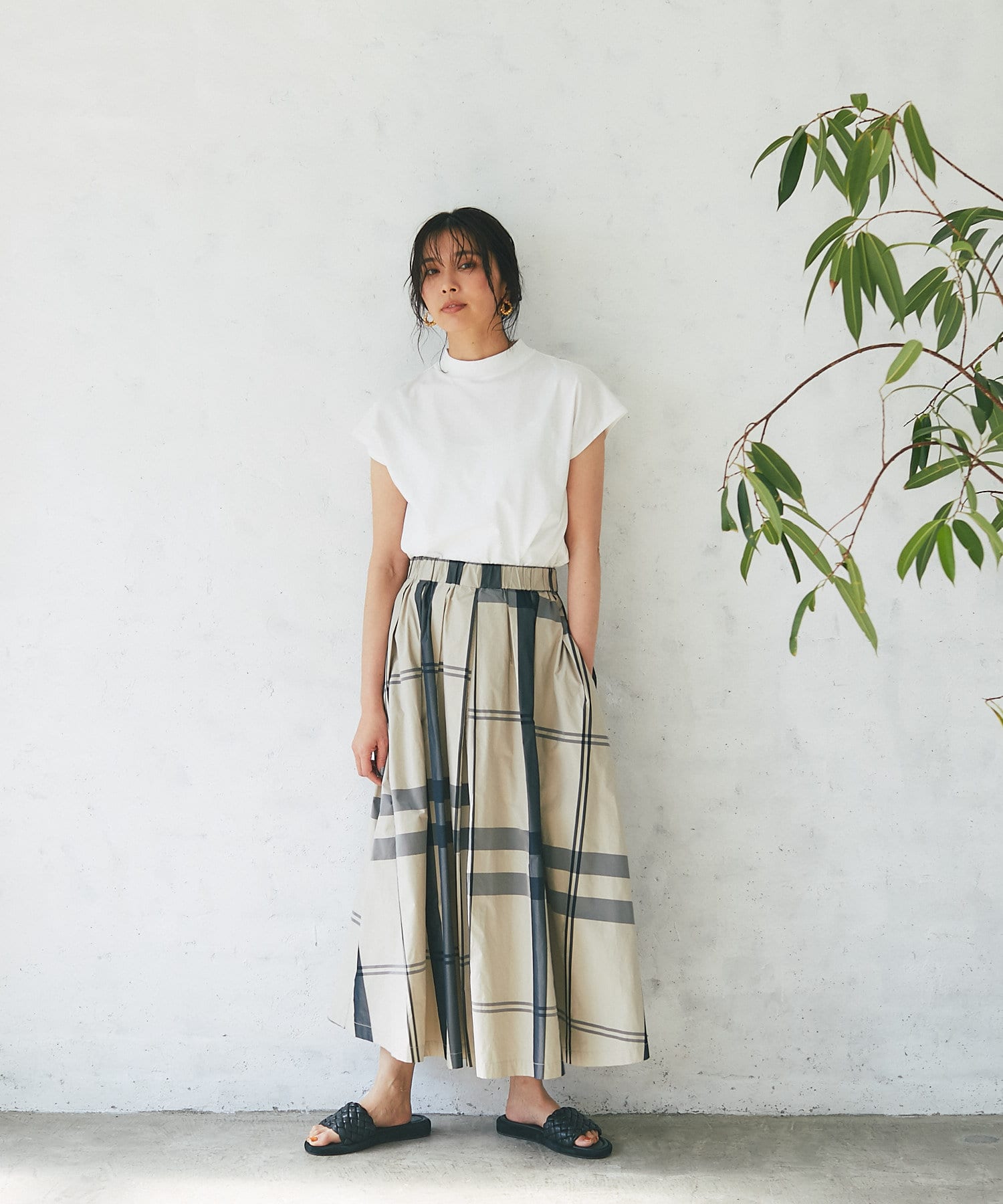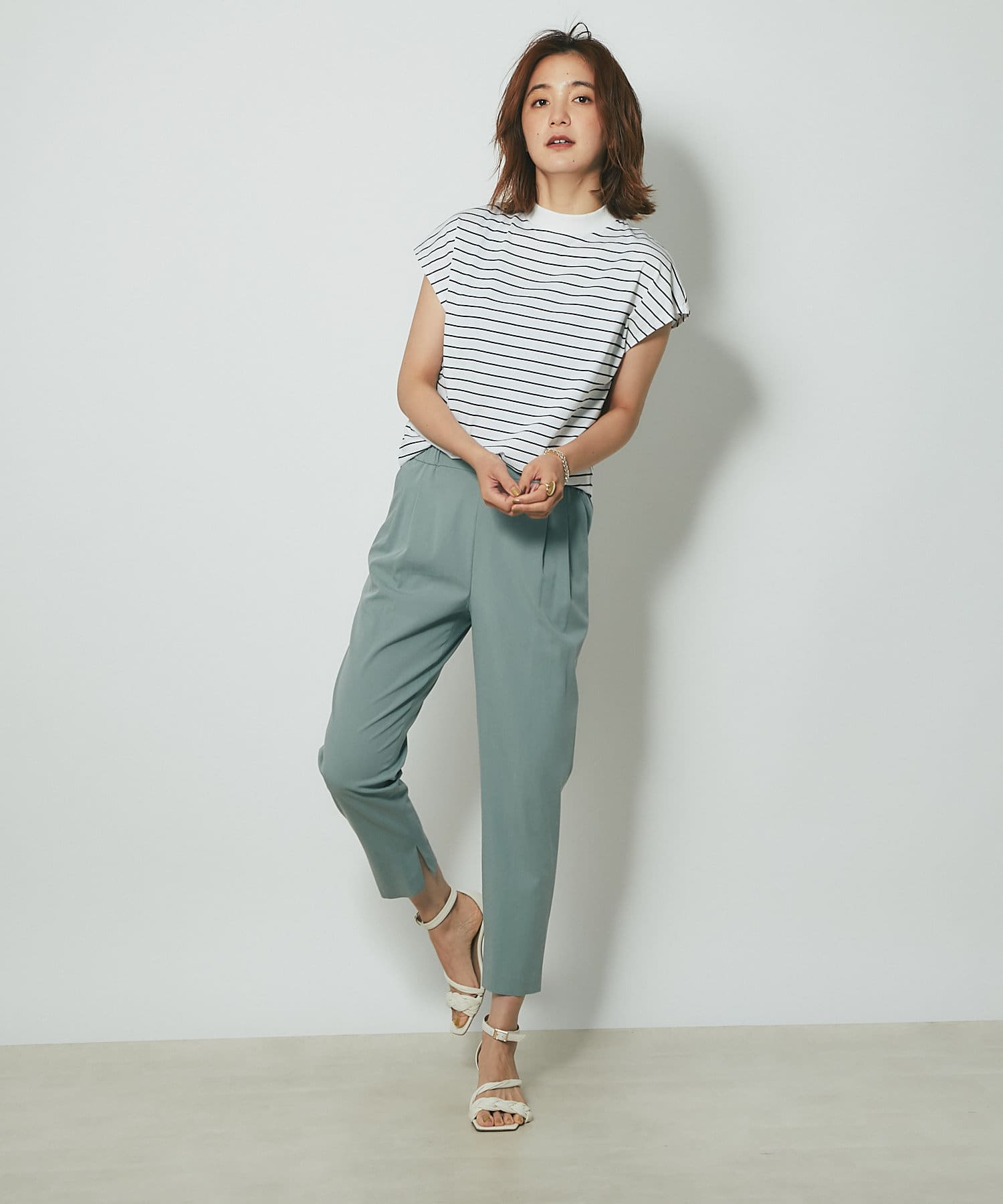すっきりしたデザインなので、フレアやボリュームのあるボトムとの相性も抜群◎