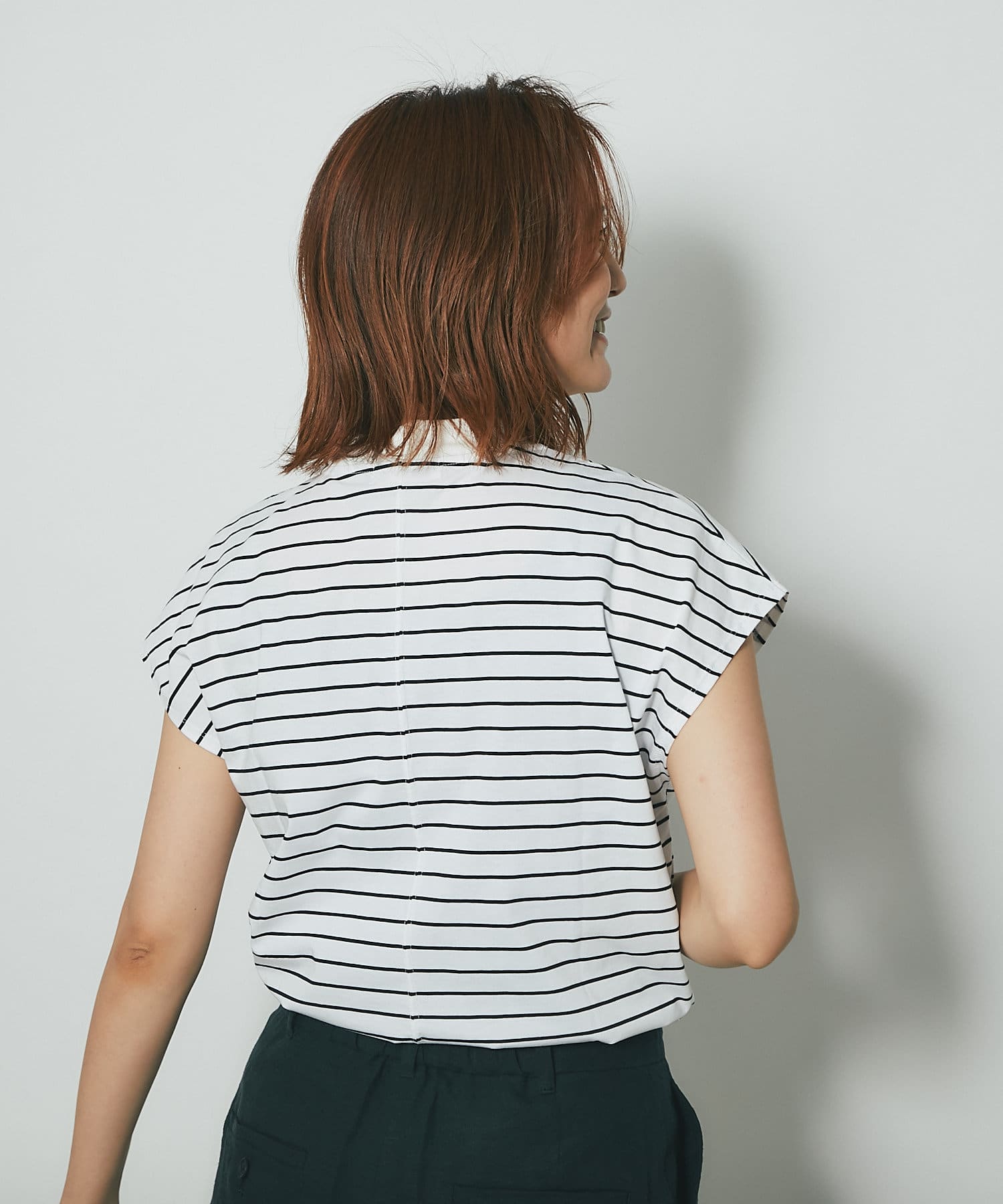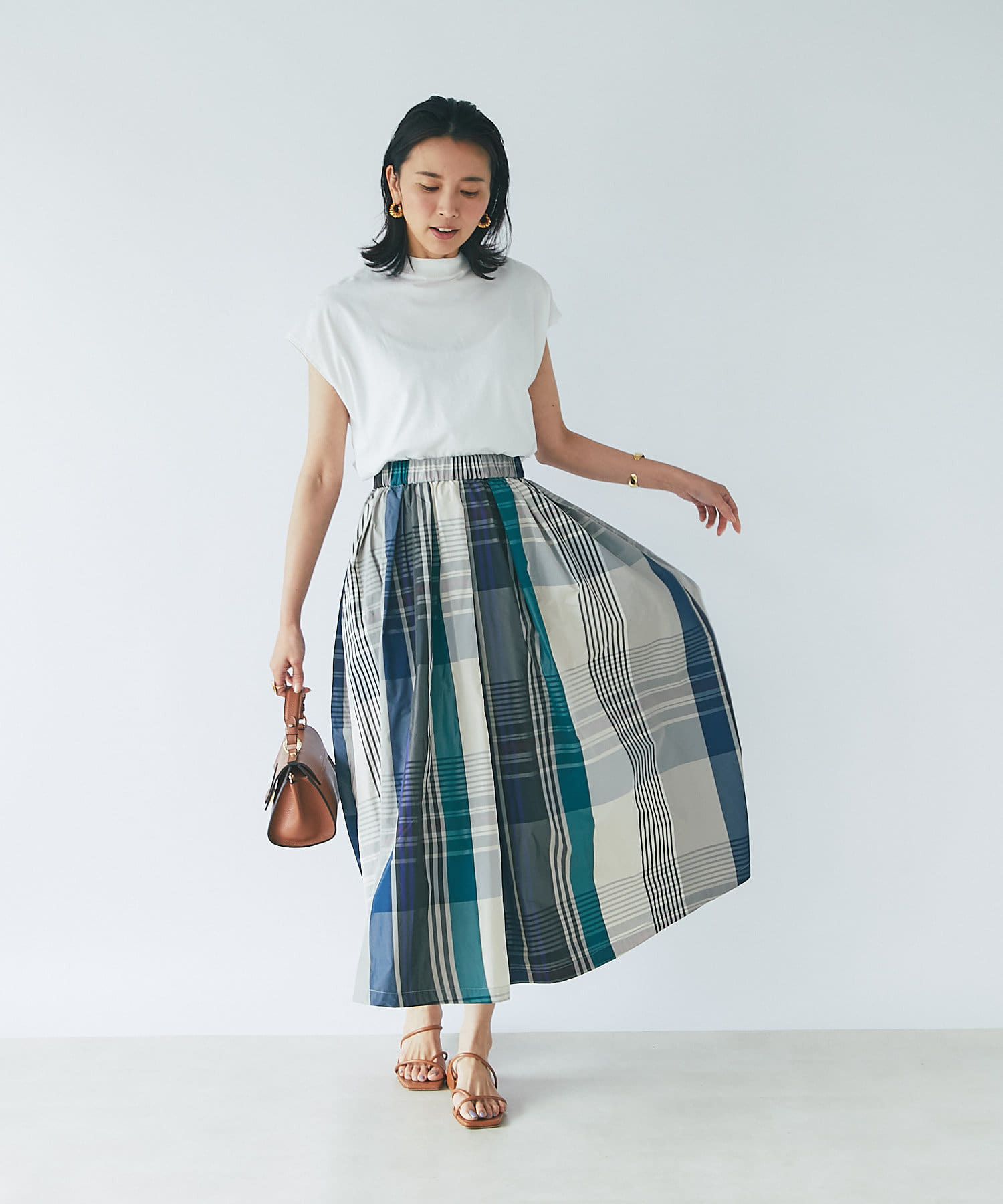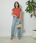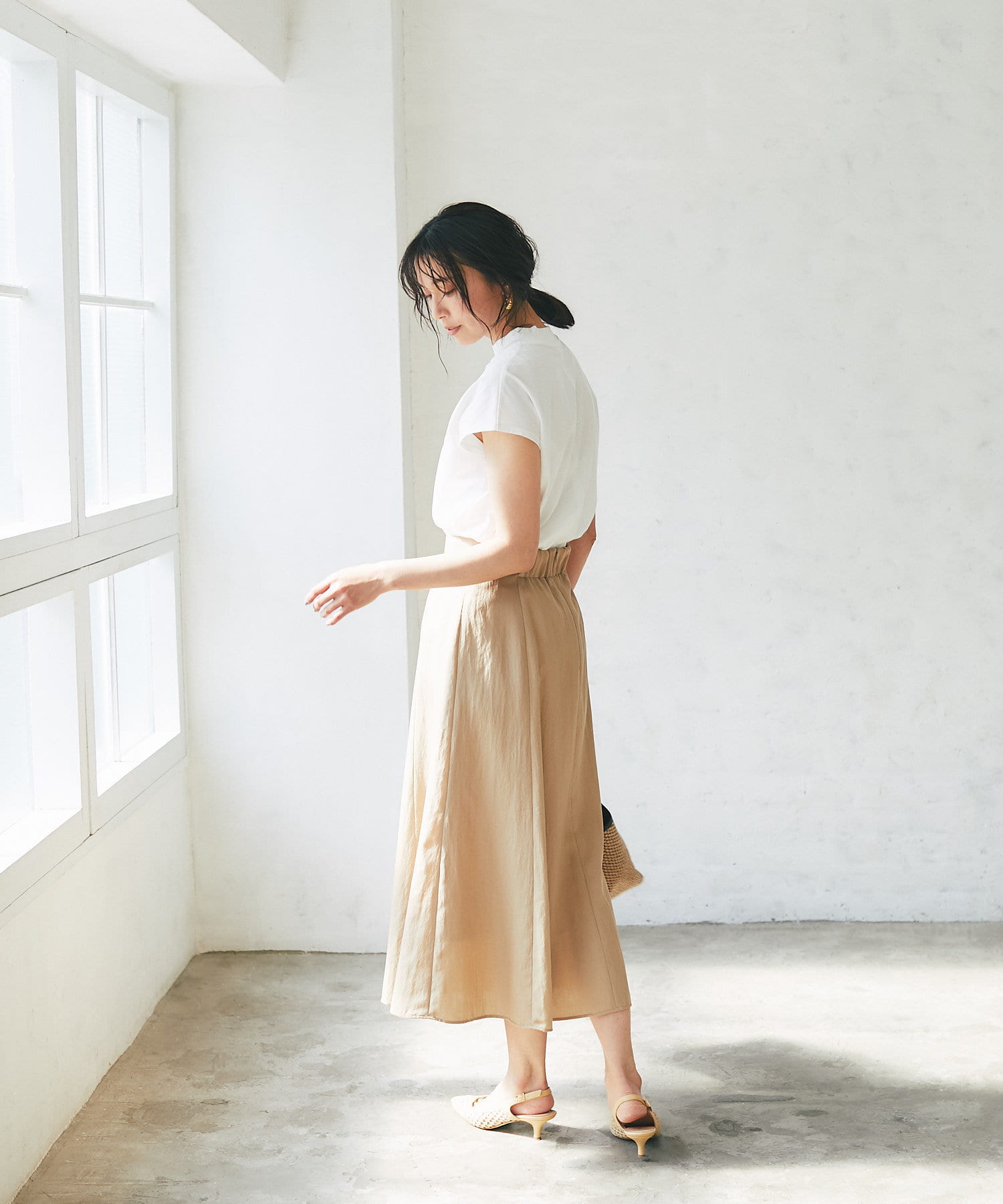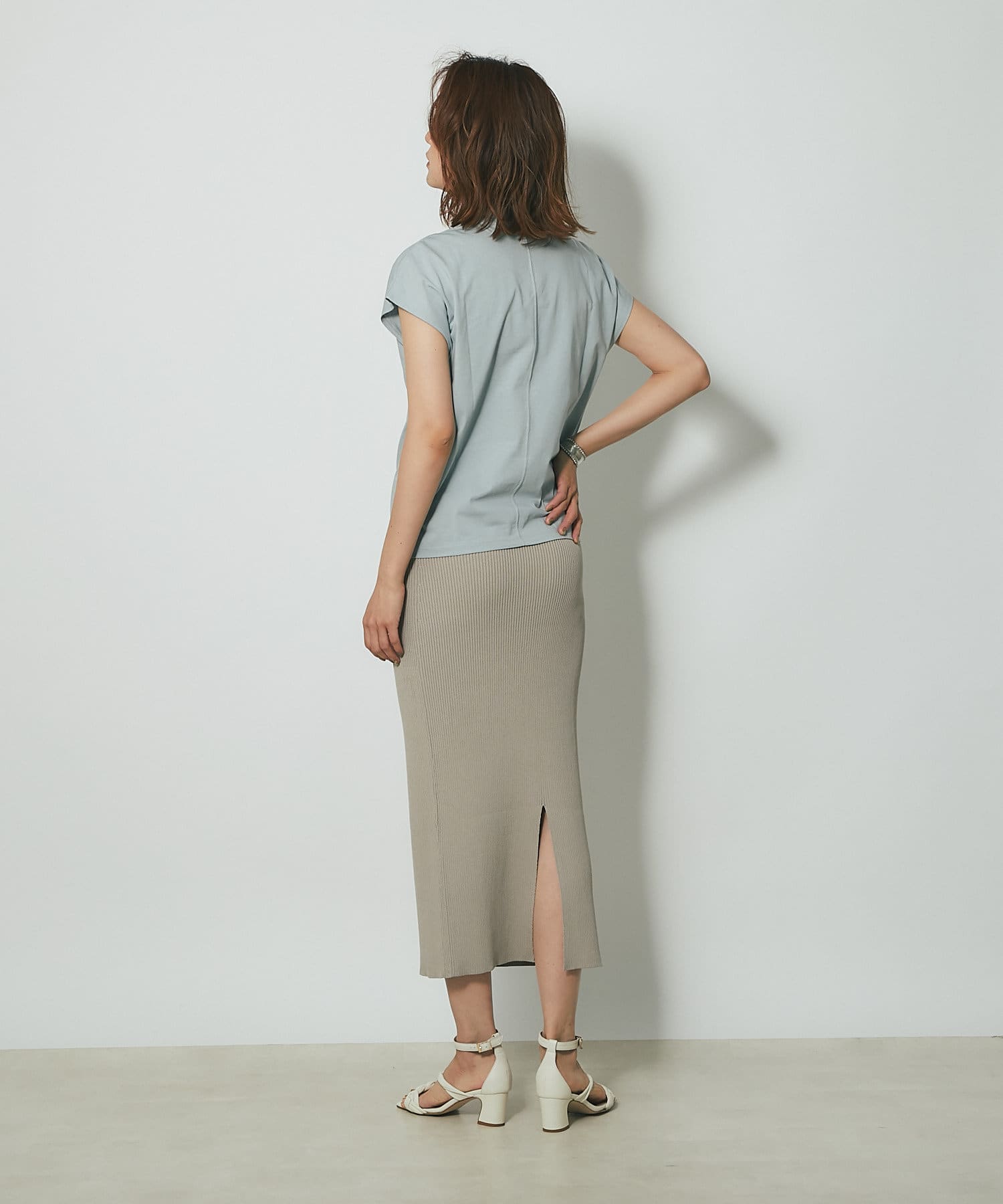 すっきりしたデザインなので、フレアやボリュームのあるボトムとの相性も抜群◎