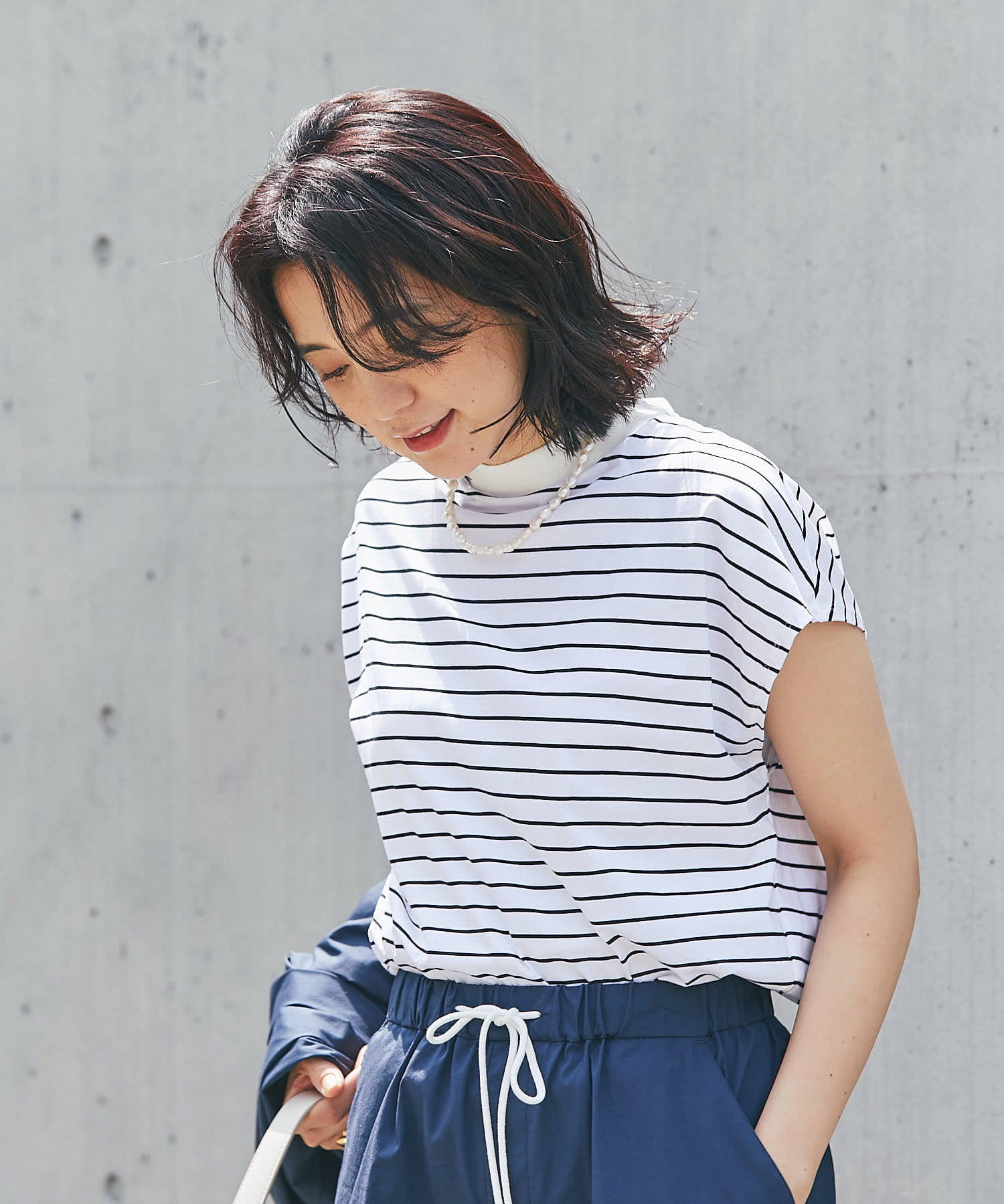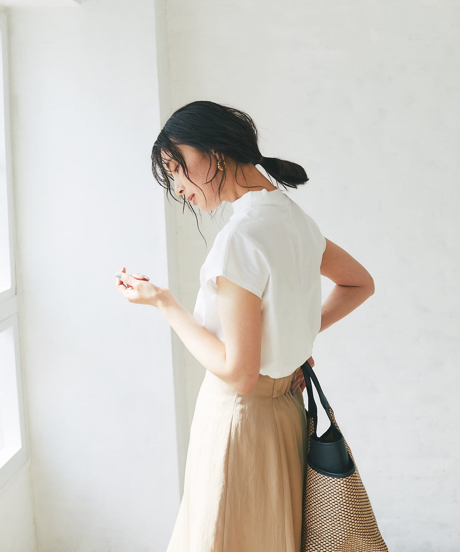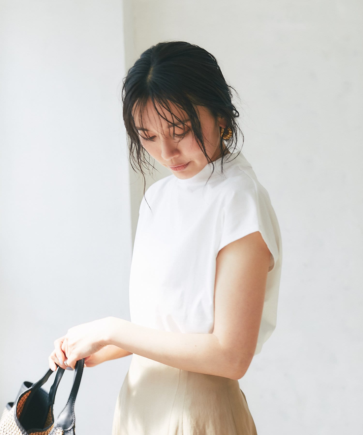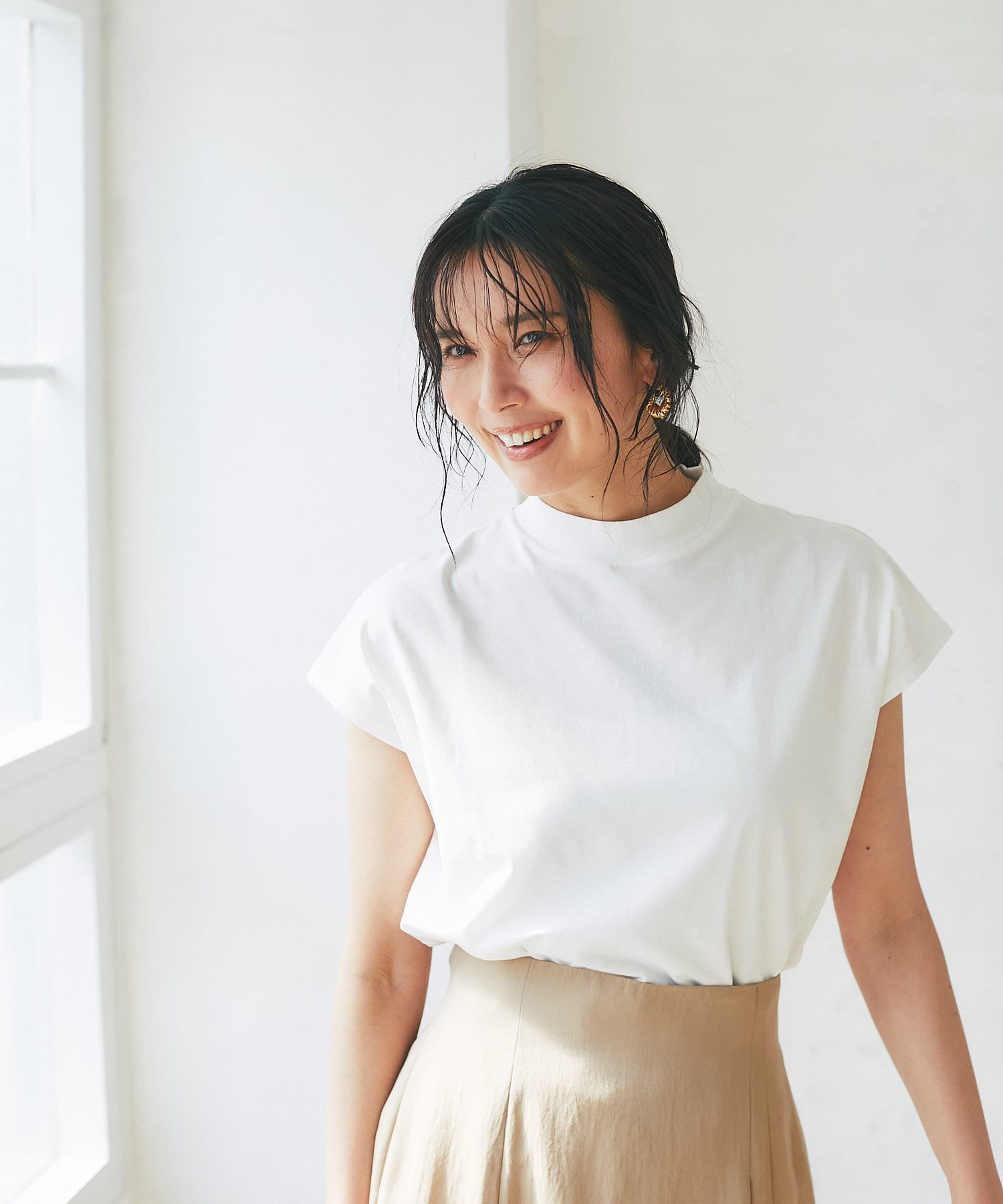 【コーディネートの感度を上げる】モックネックフレンチTシャツ