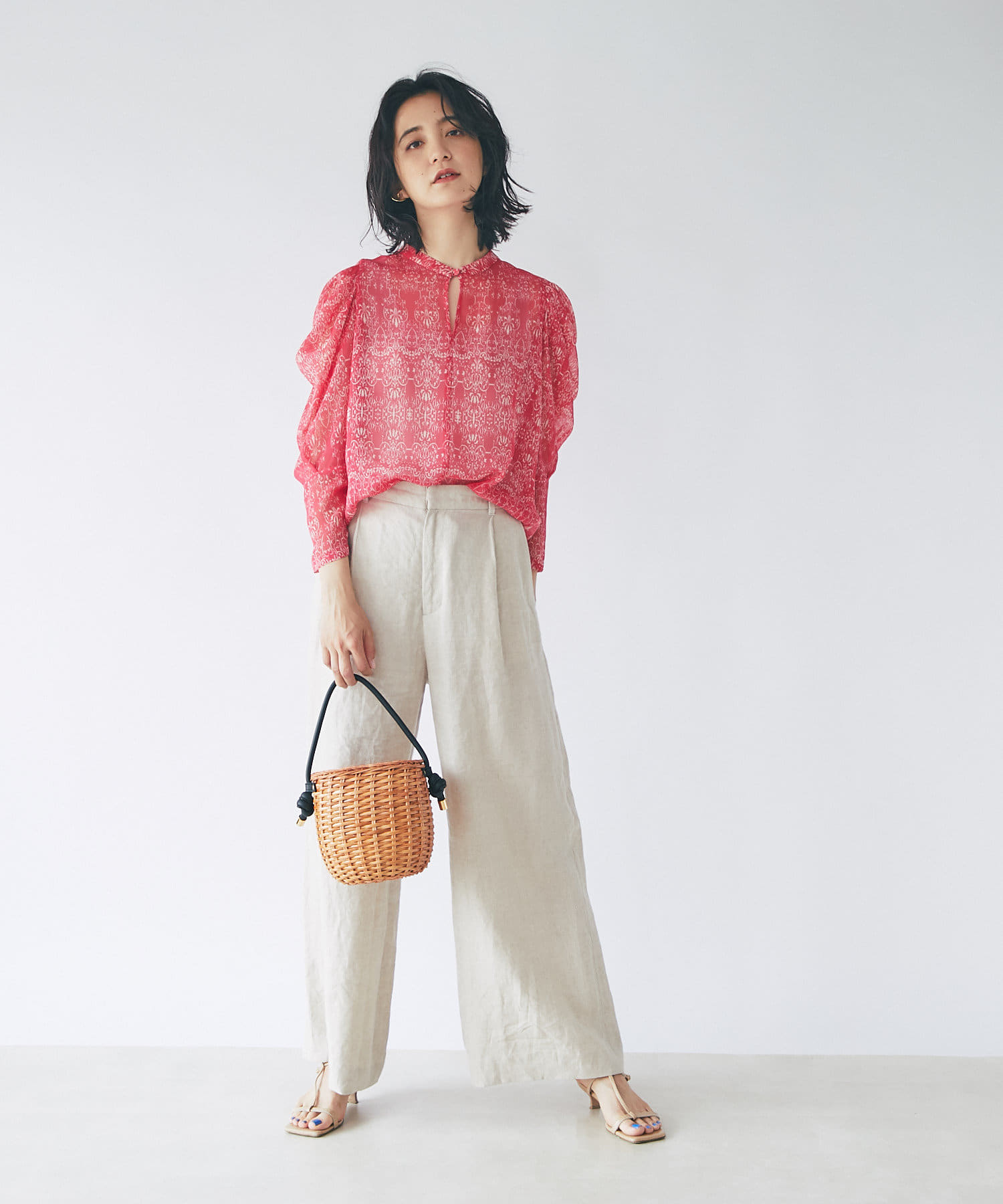 シンプルなカゴバッグにさりげなく遊び心をプラスしてくれ、着こなしにオシャレ感を漂わせます。