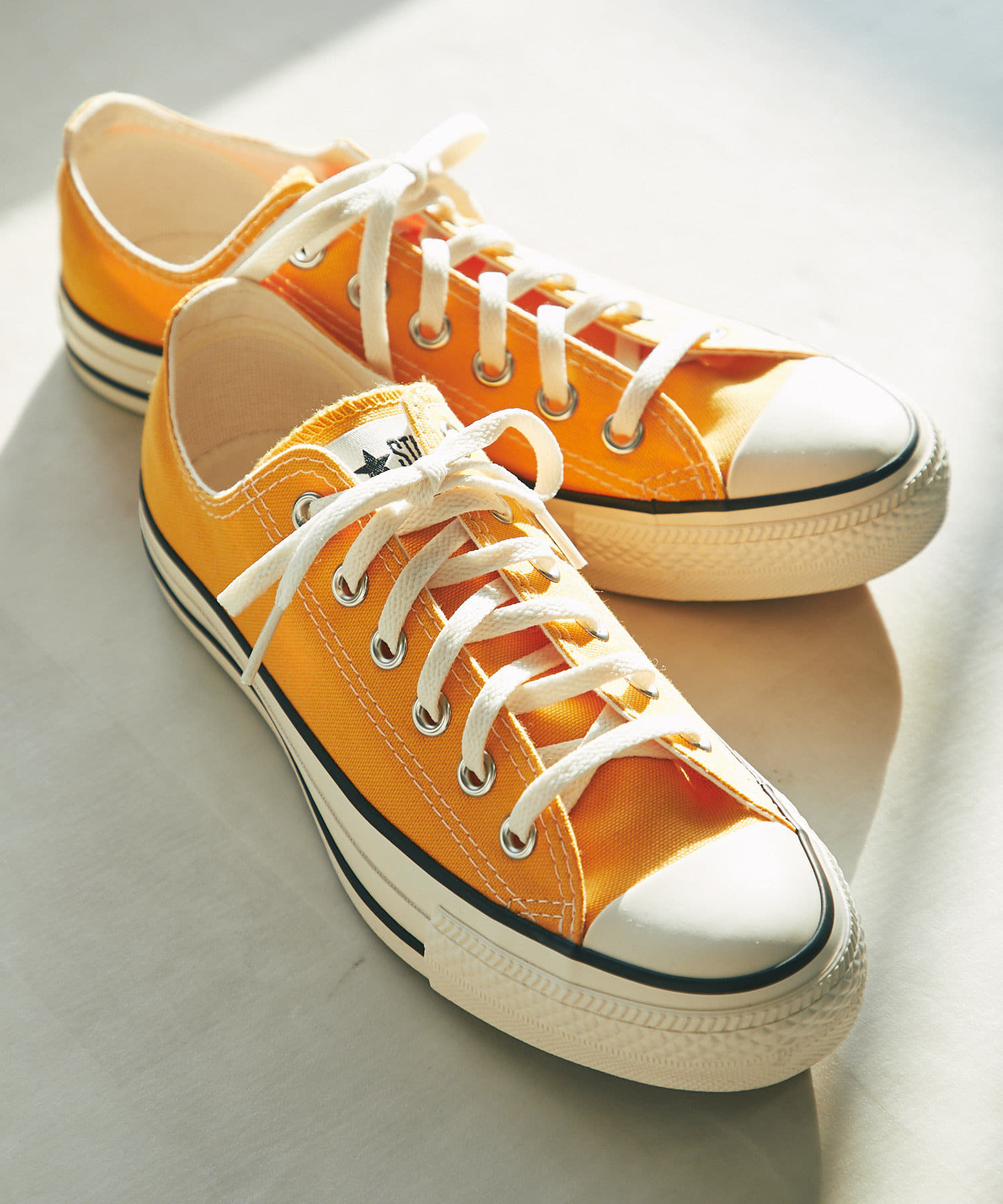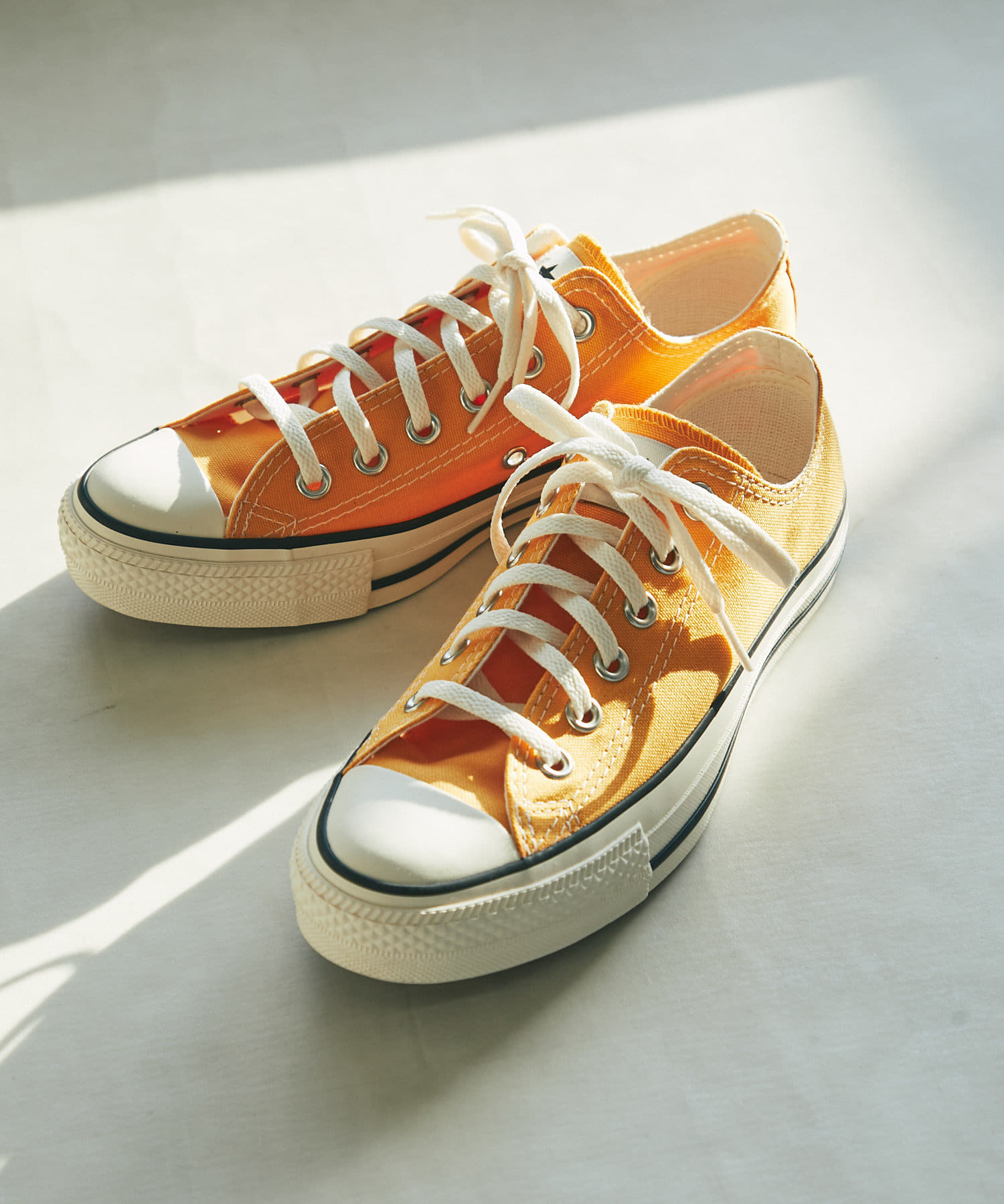 太陽を浴びて色褪せたかのようなアッパーカラーに、生成りのテープ、シューレース、ライニングを採用したオールスター。