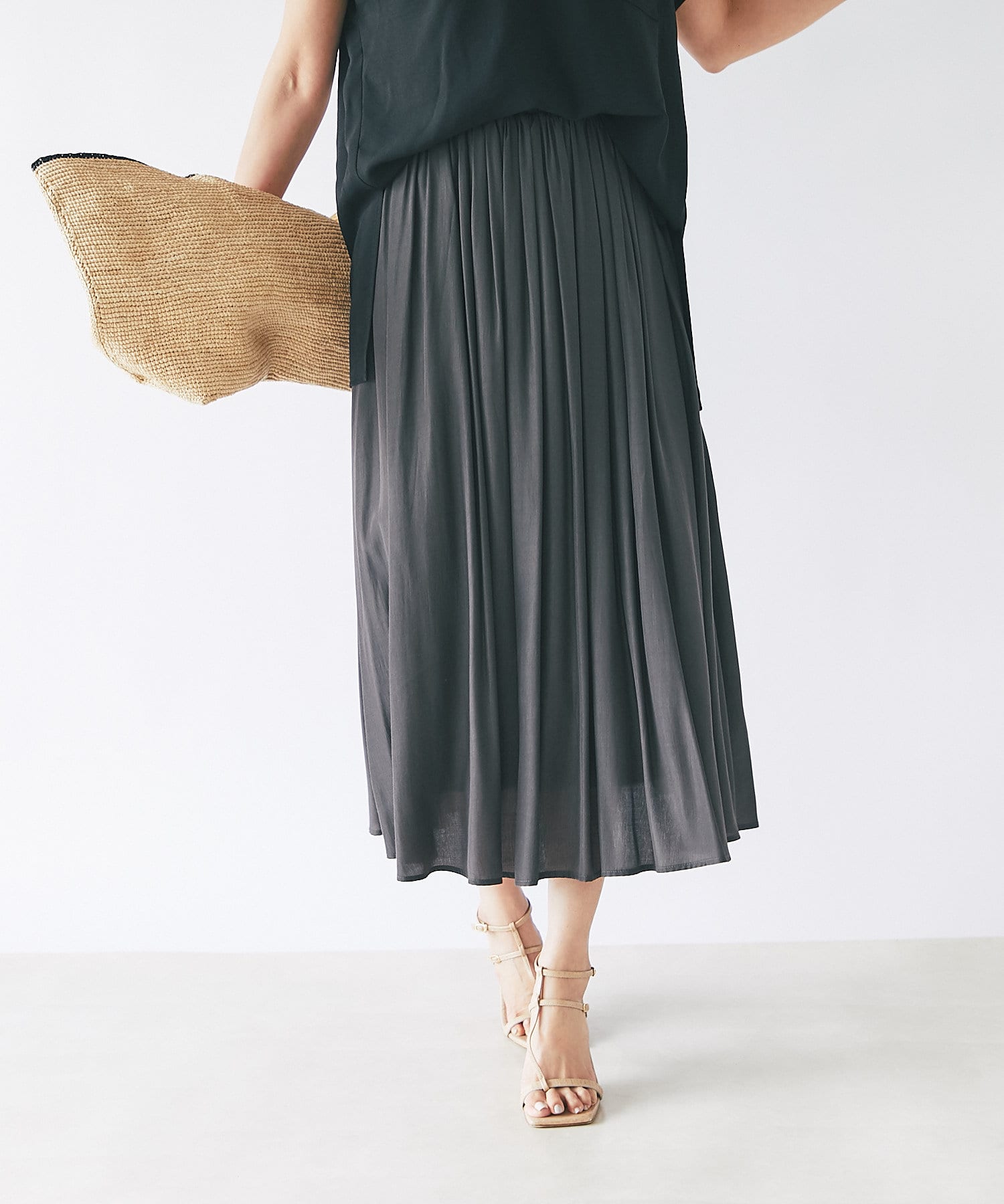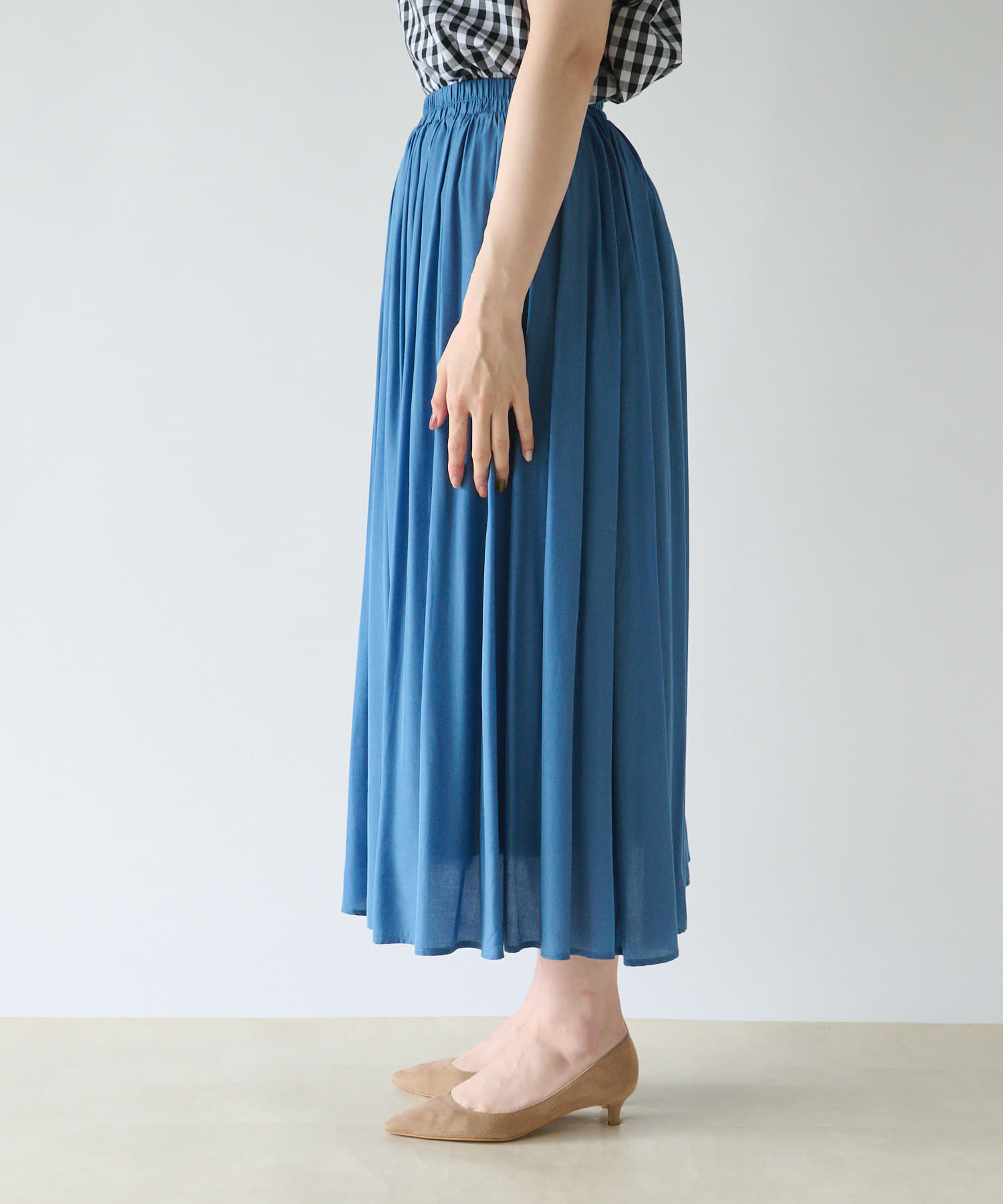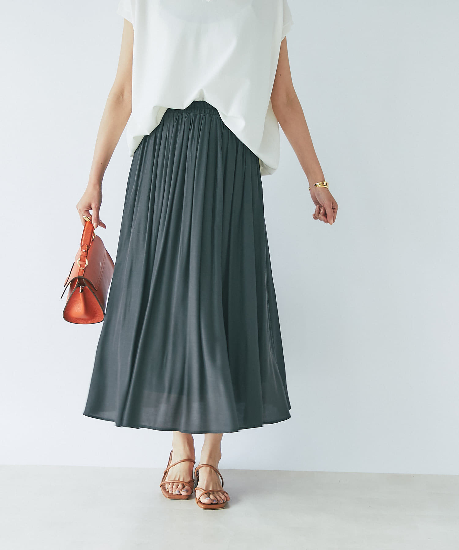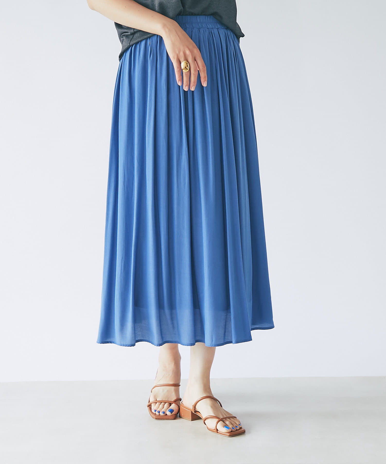 柔らかな風合いが魅力のレーヨン混ギャザースカート