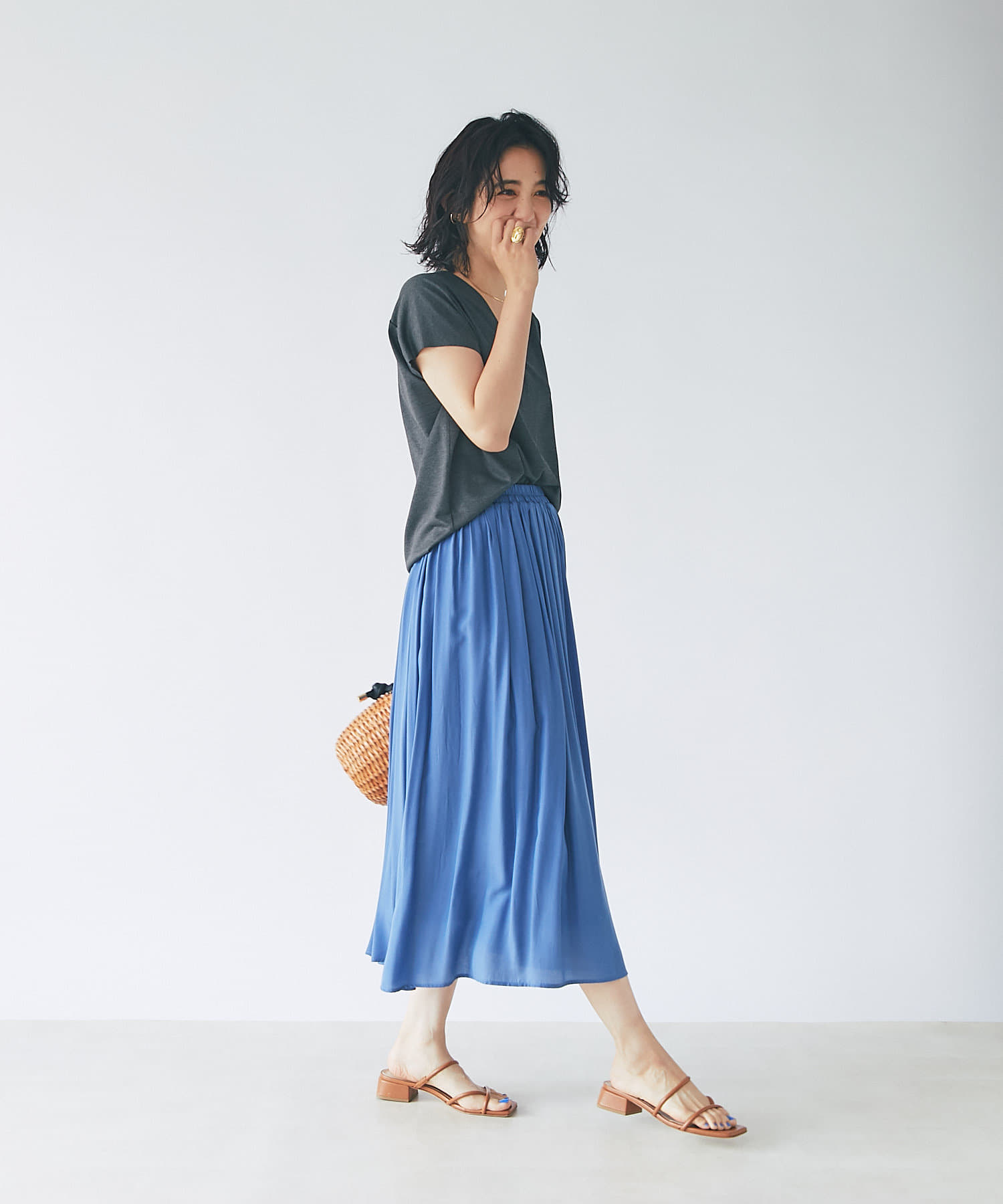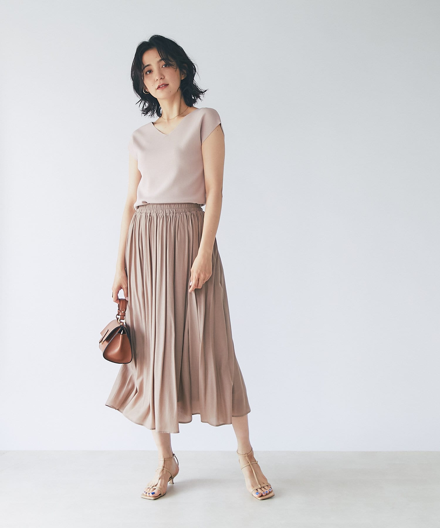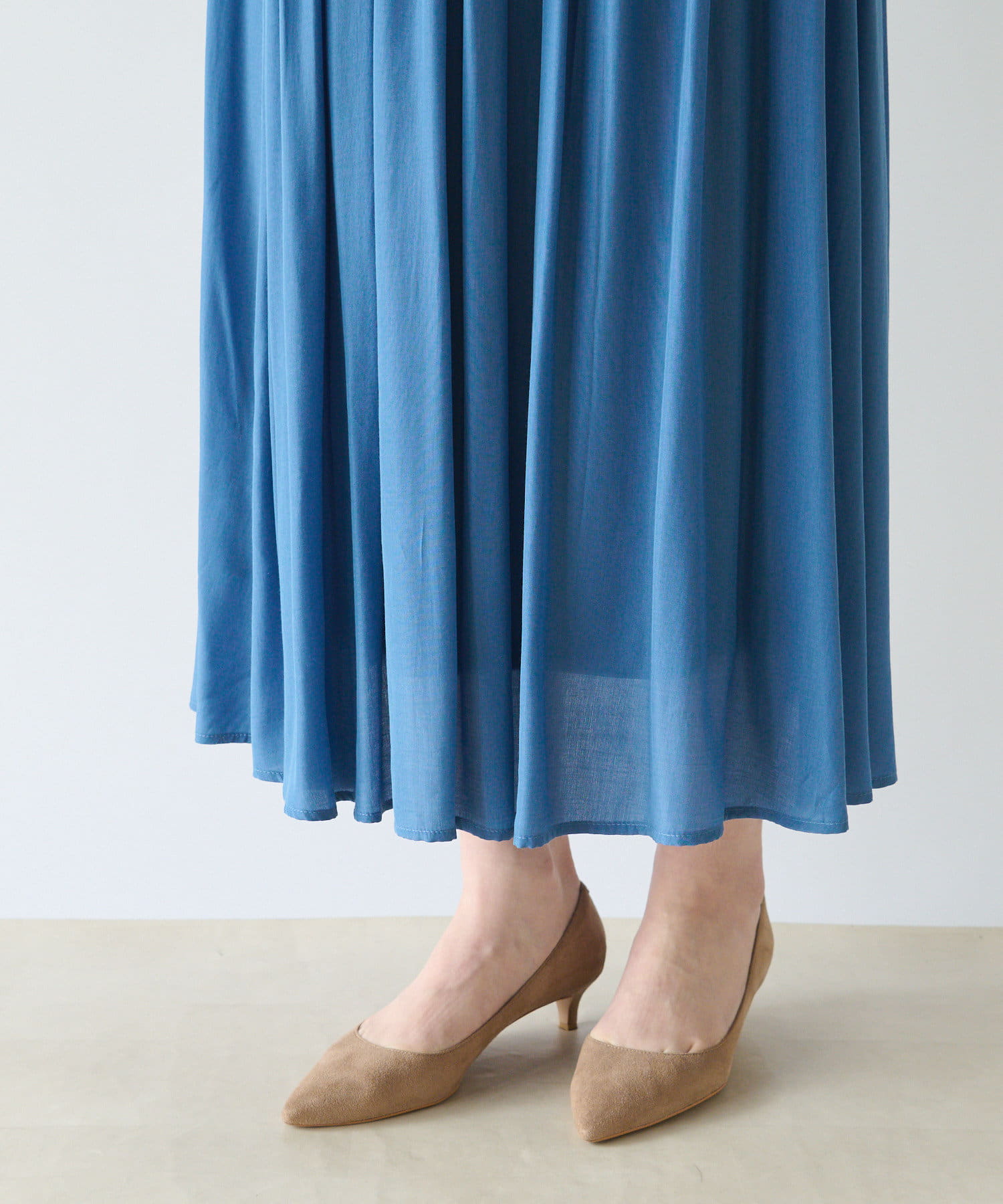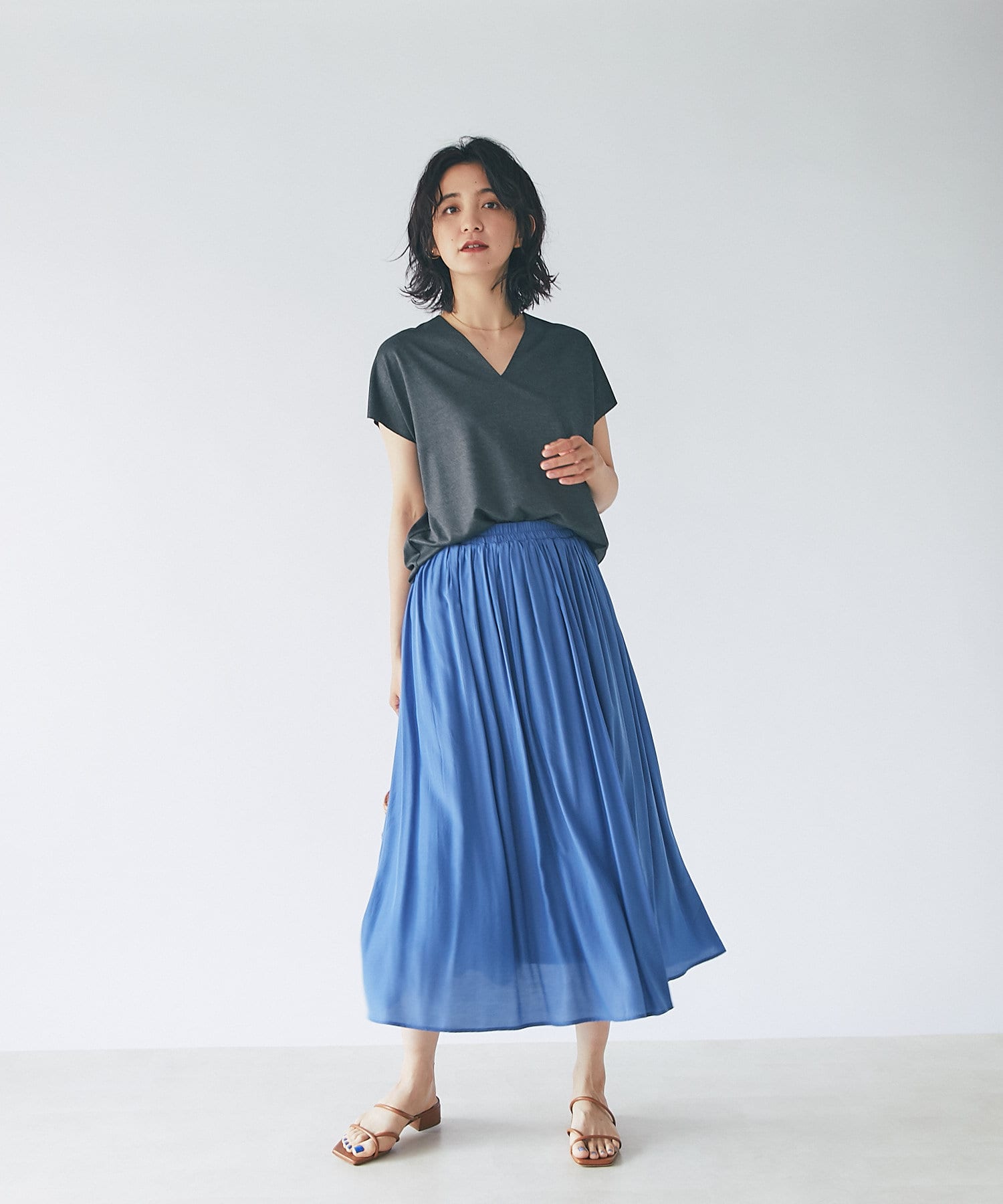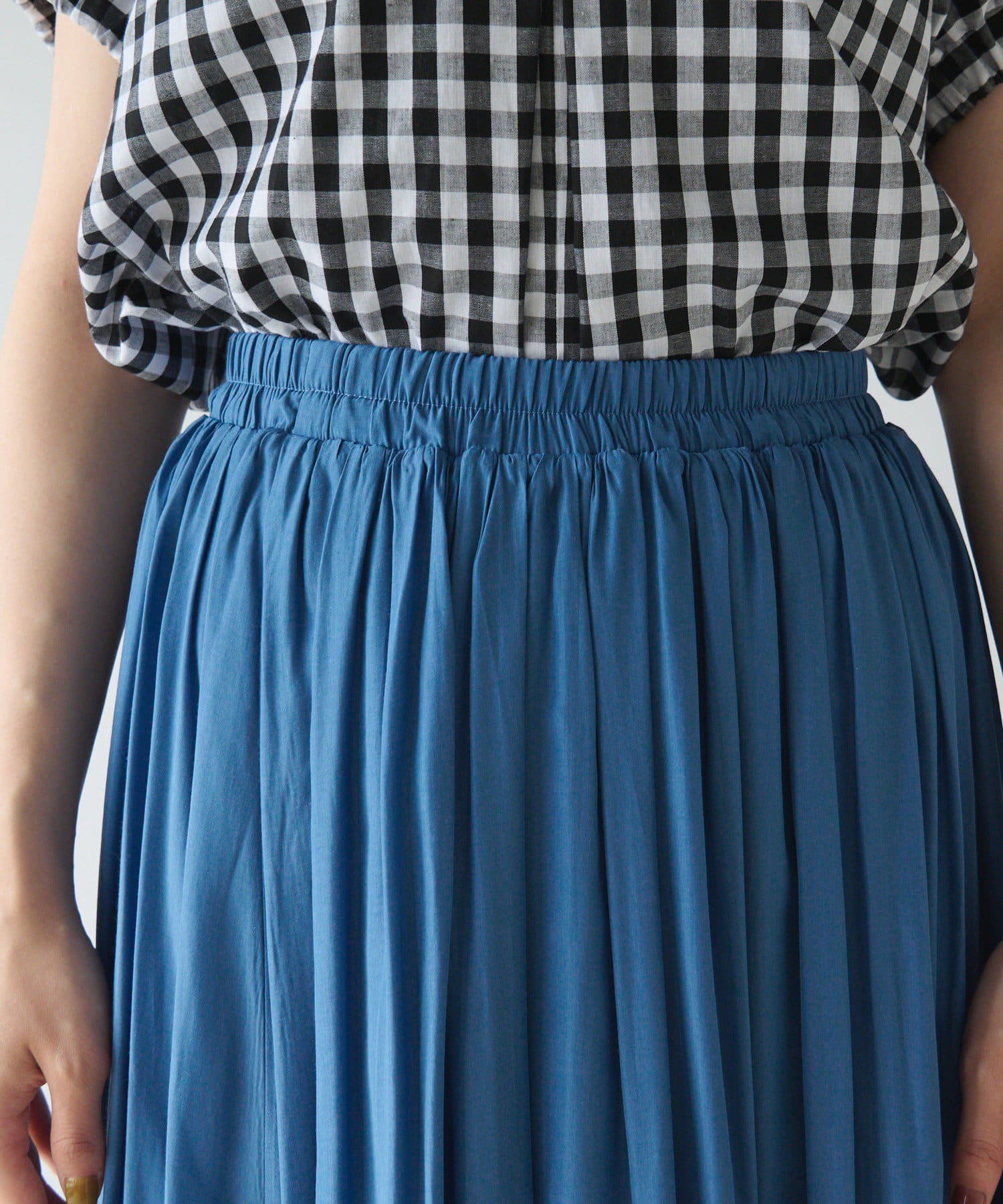 柔らかな風合いが魅力のレーヨン混ギャザースカート