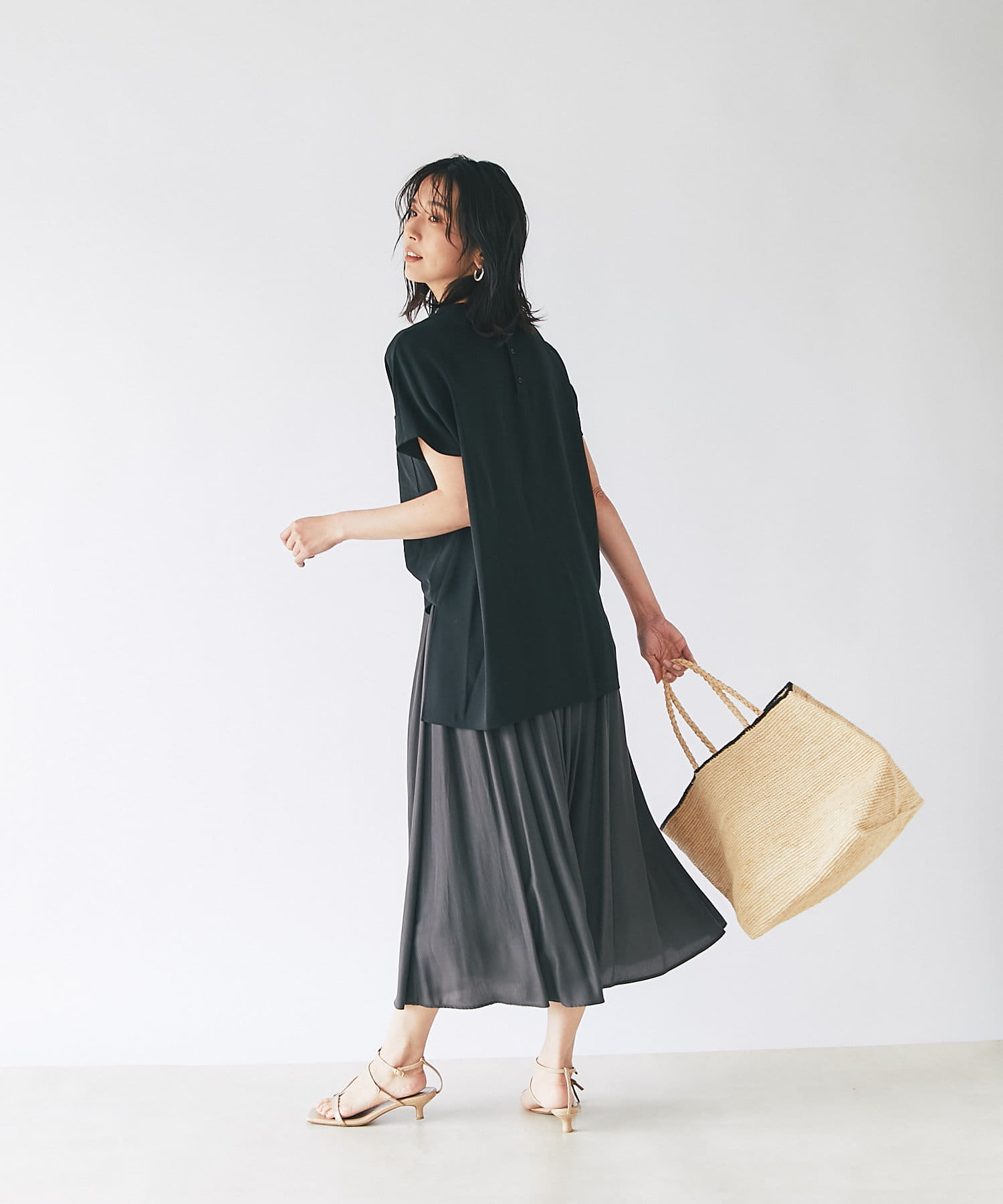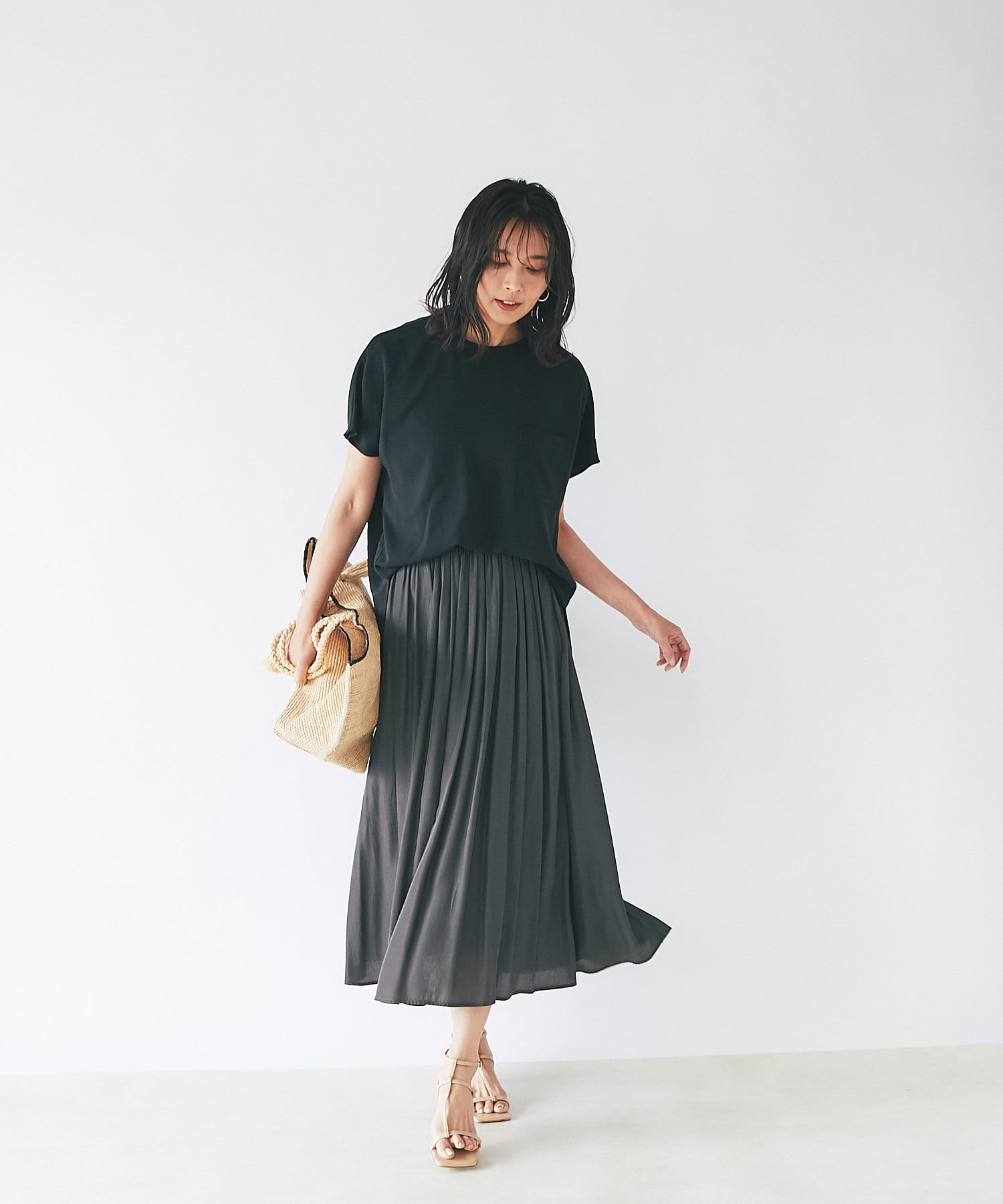 シルエットを拾わず滑らかに落ちるので、体型カバー効果も期待できます。