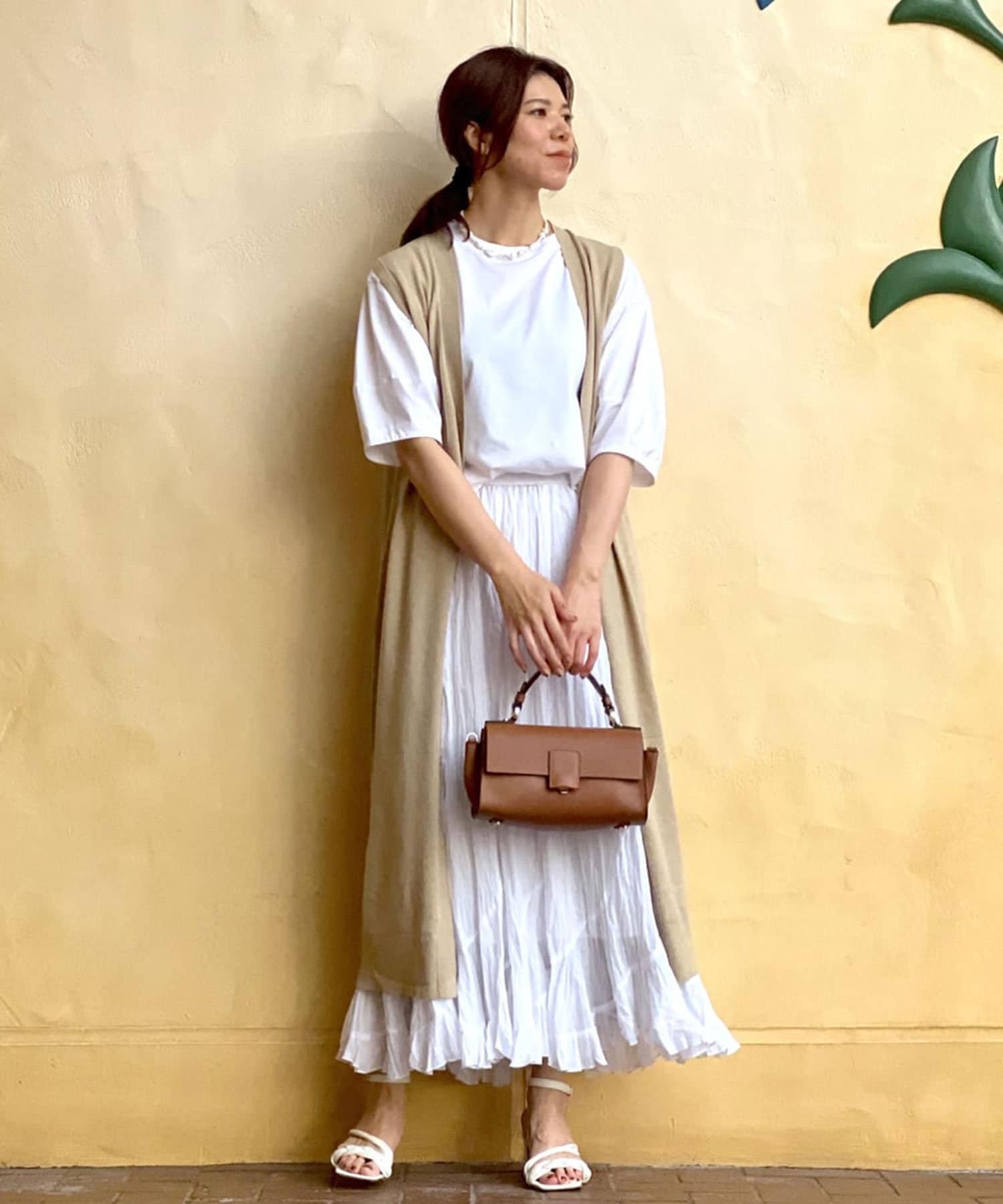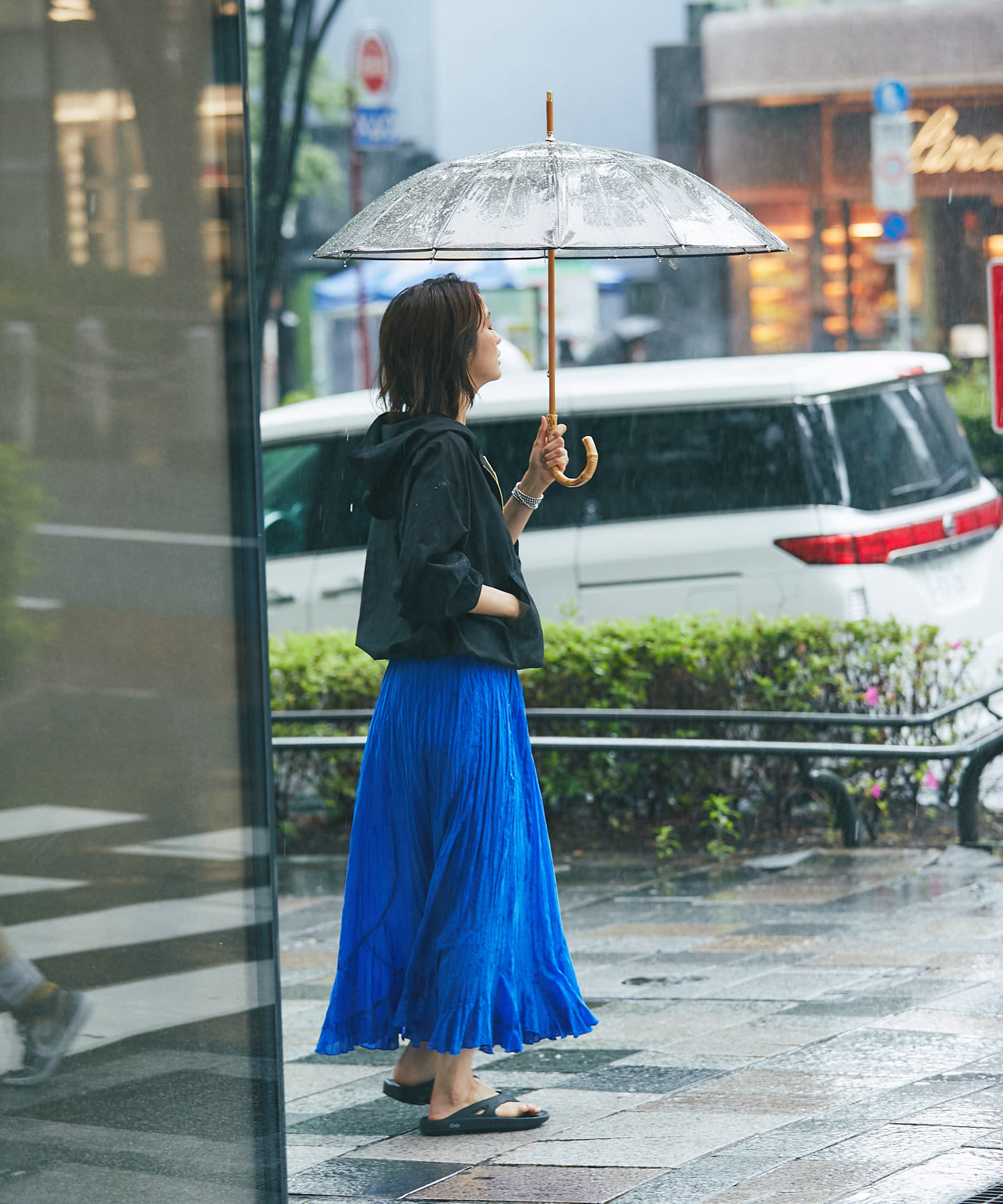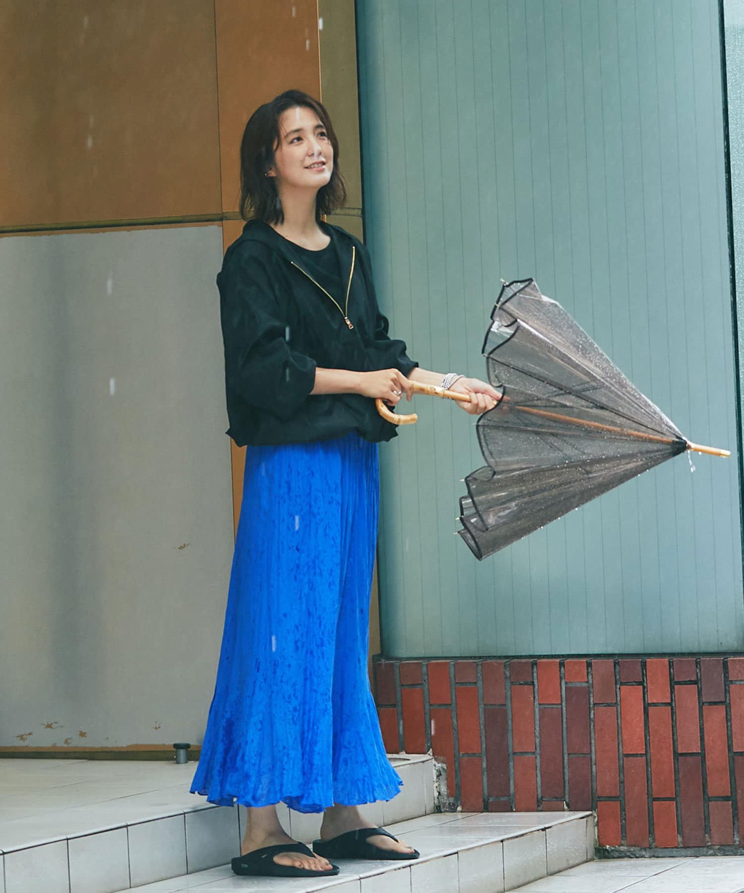 斜めに切替えたフェミニンな雰囲気のエスカルゴデザインは軽やかな生地感と相性抜群◎