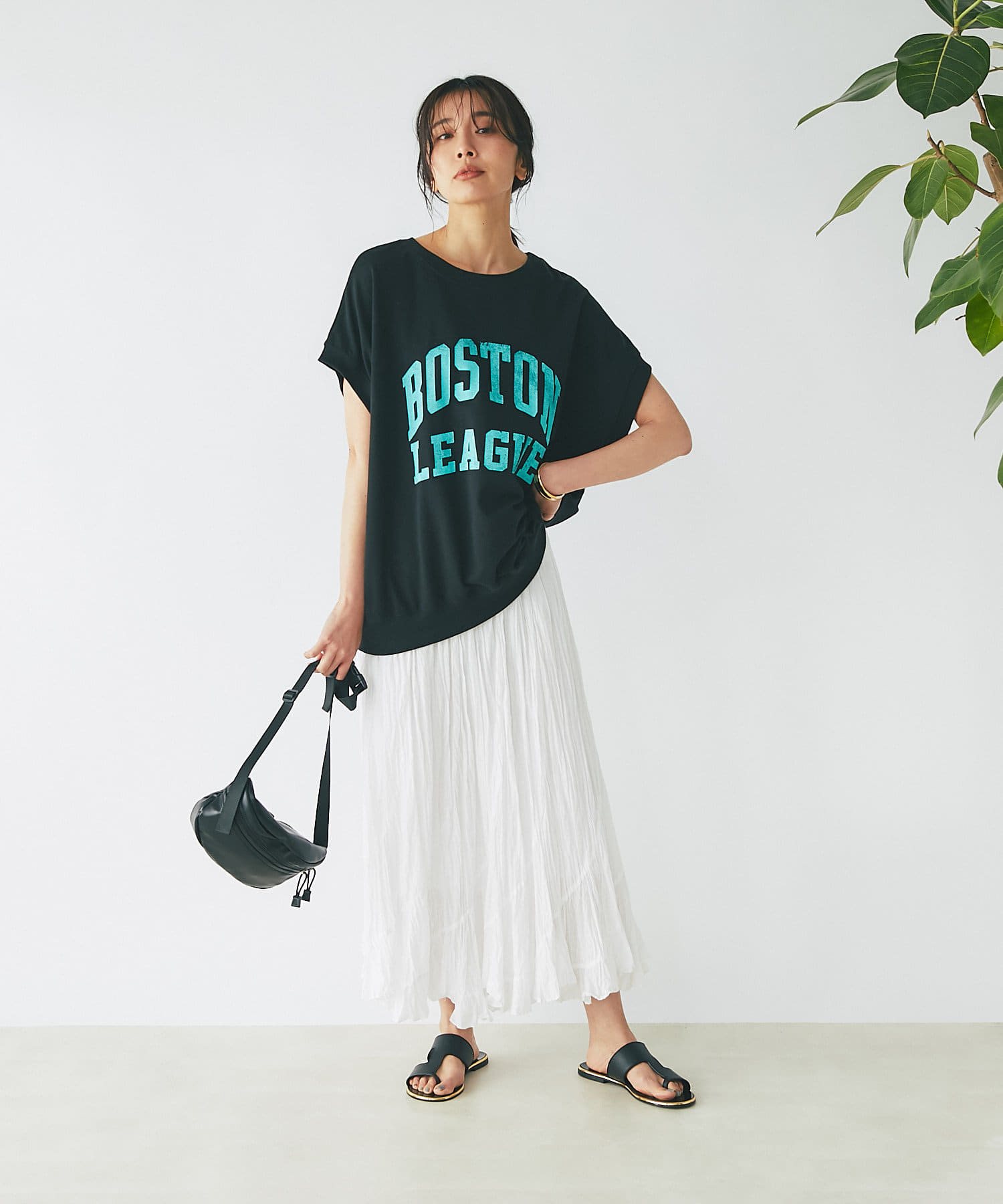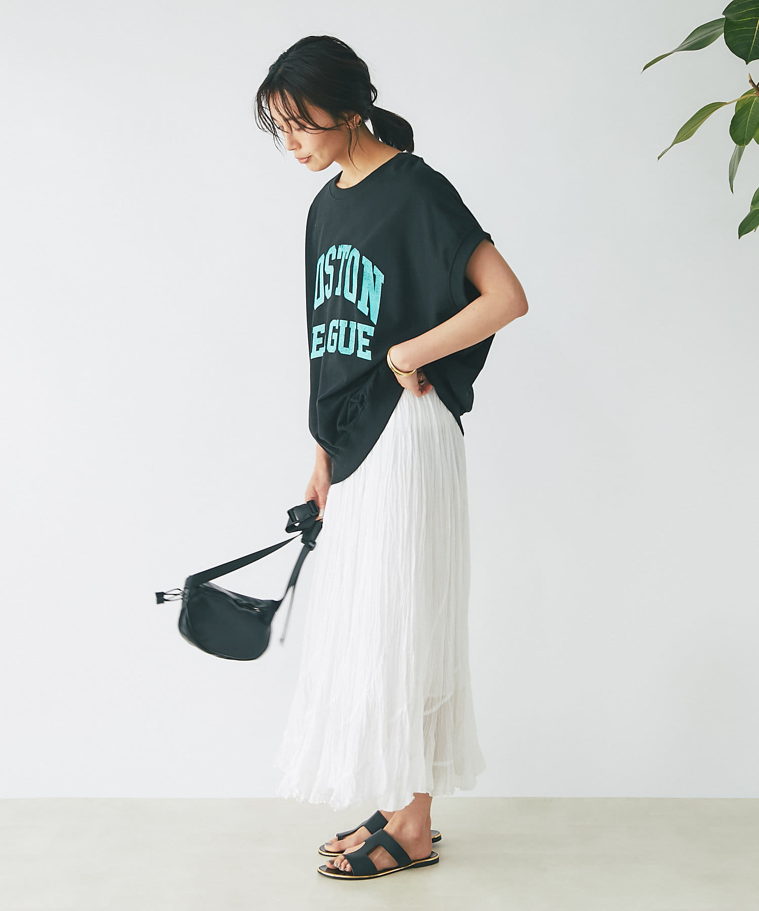ロゴTシャツなどカジュアルトップス合わせがおすすめです。