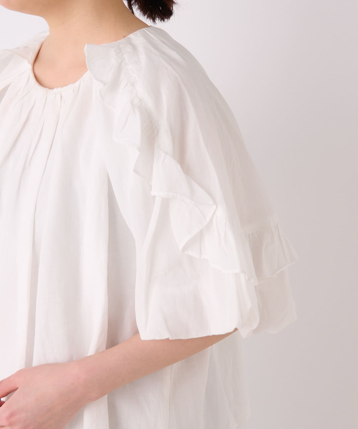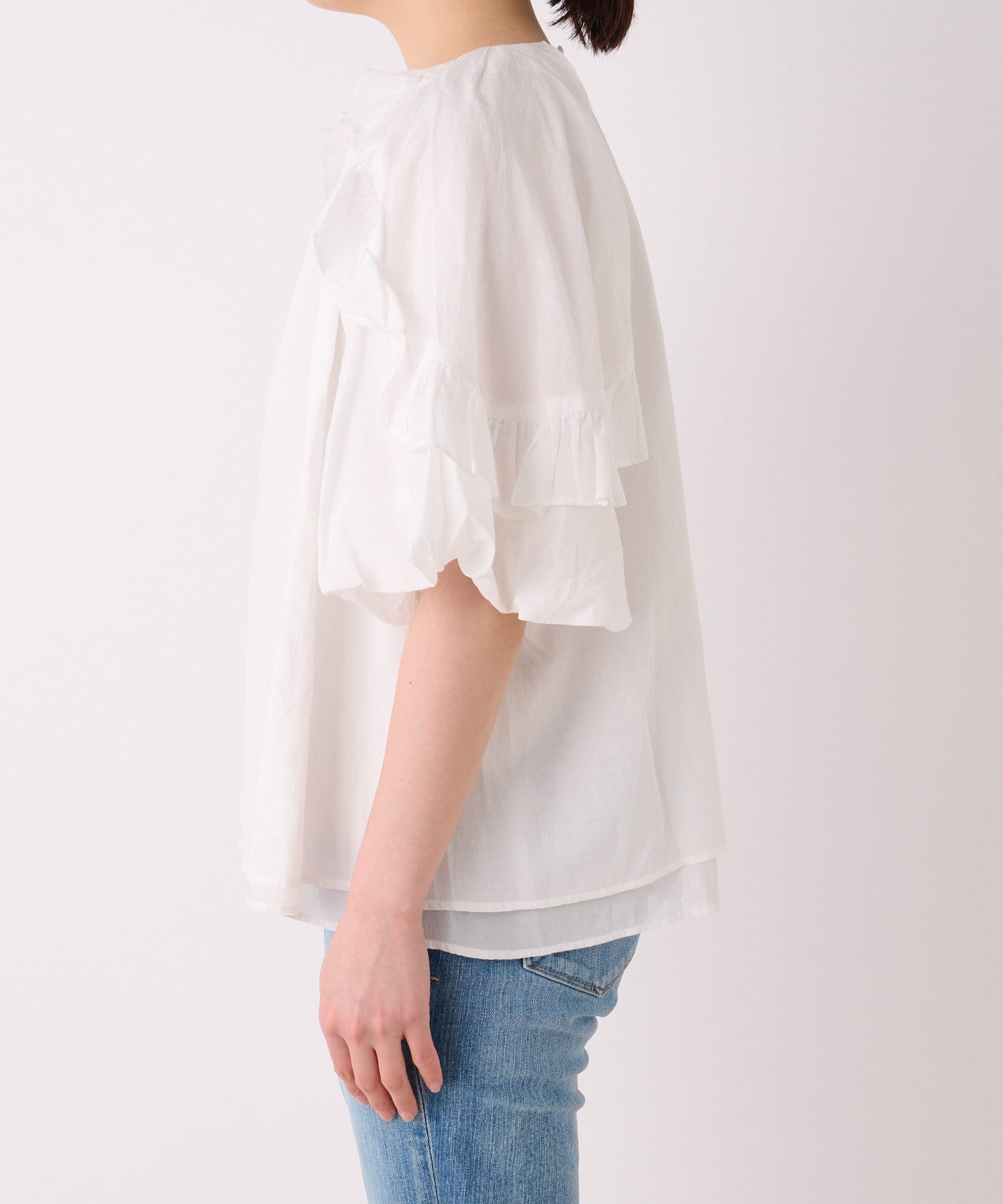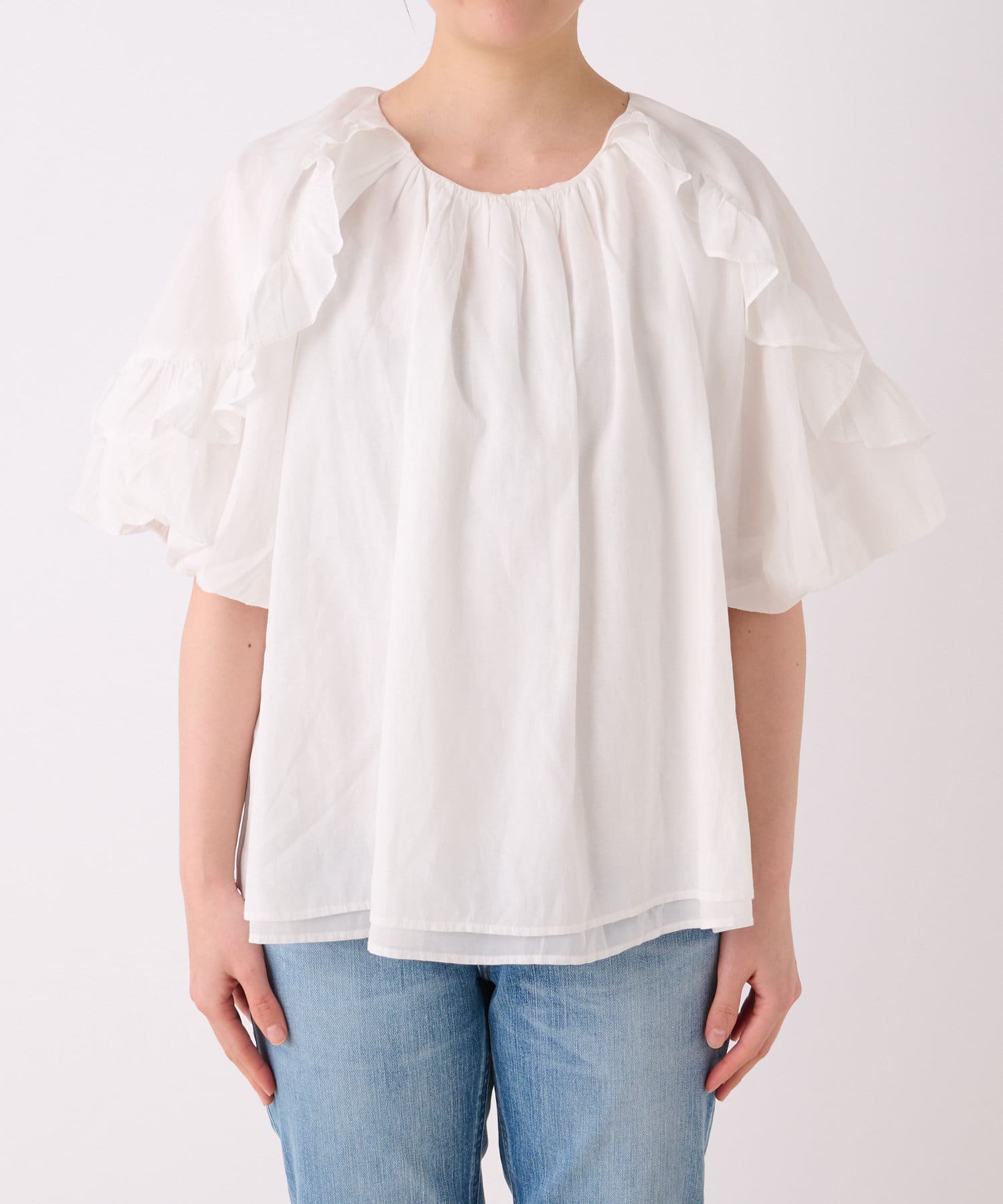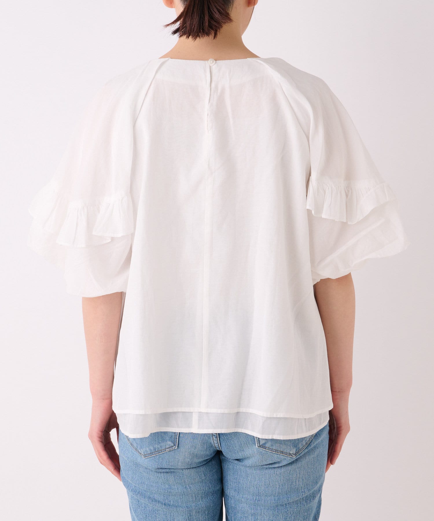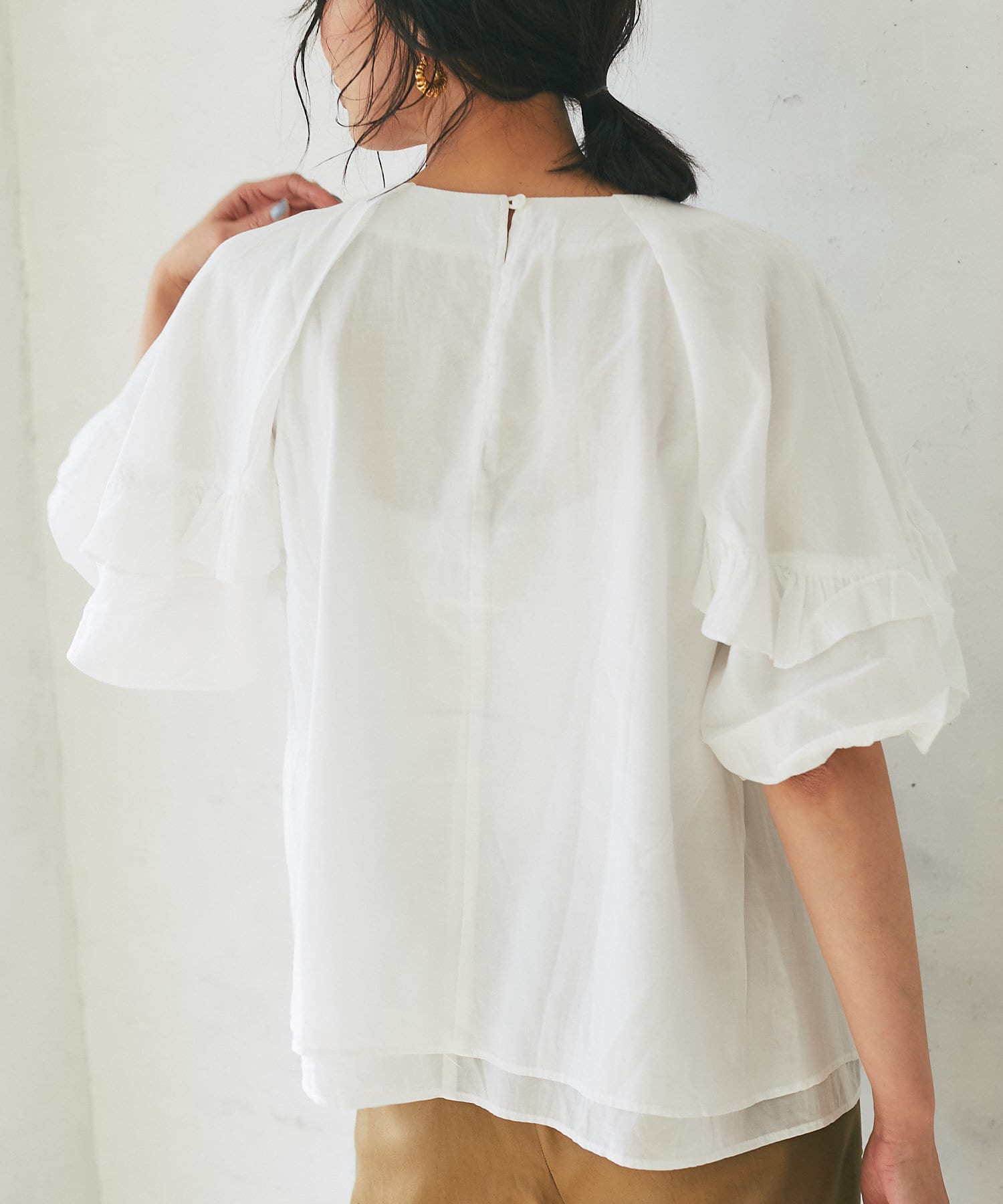 綿レーヨン混率で優しい透け感とハリ感が特徴で、春から夏まで着ていただけます。