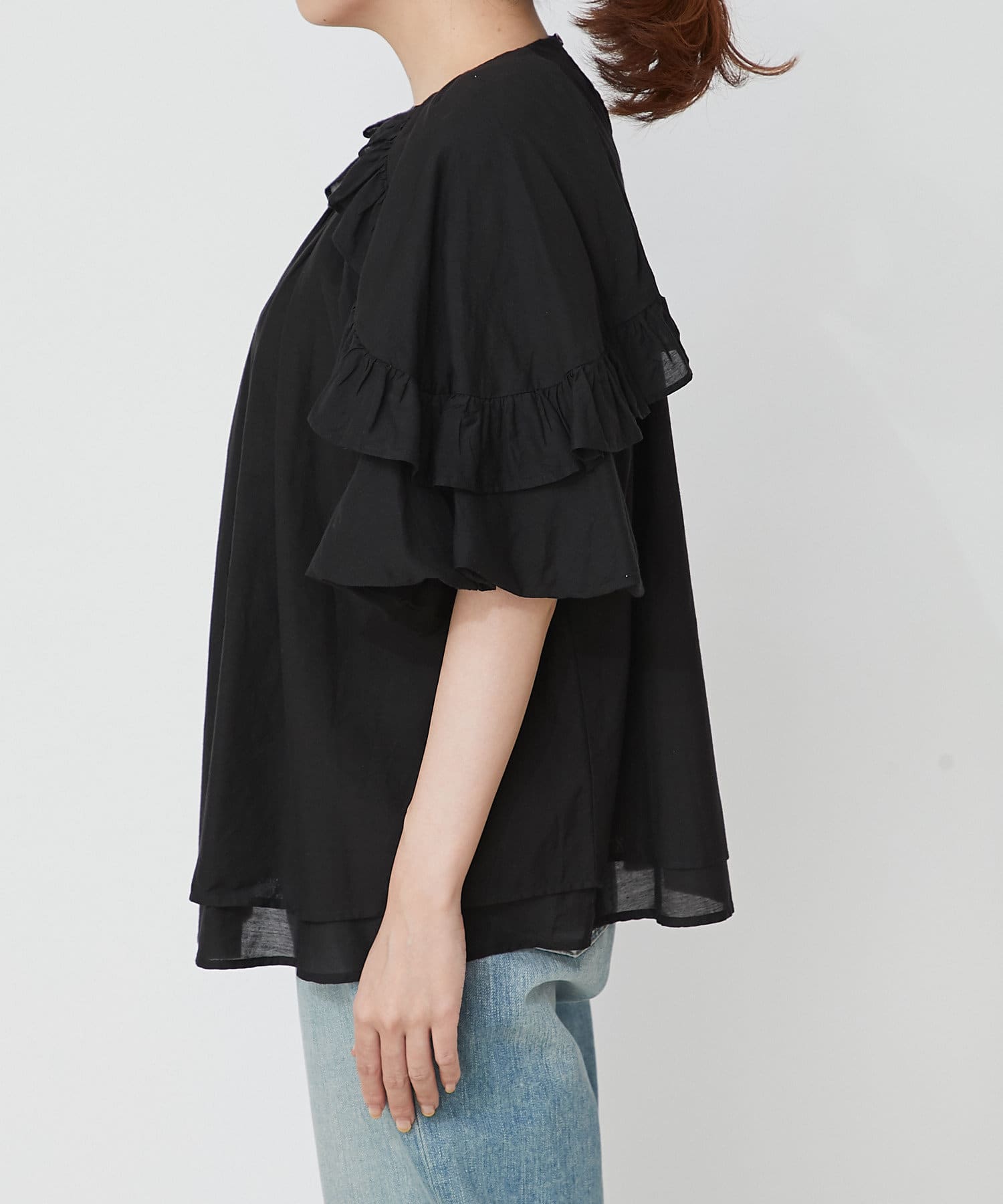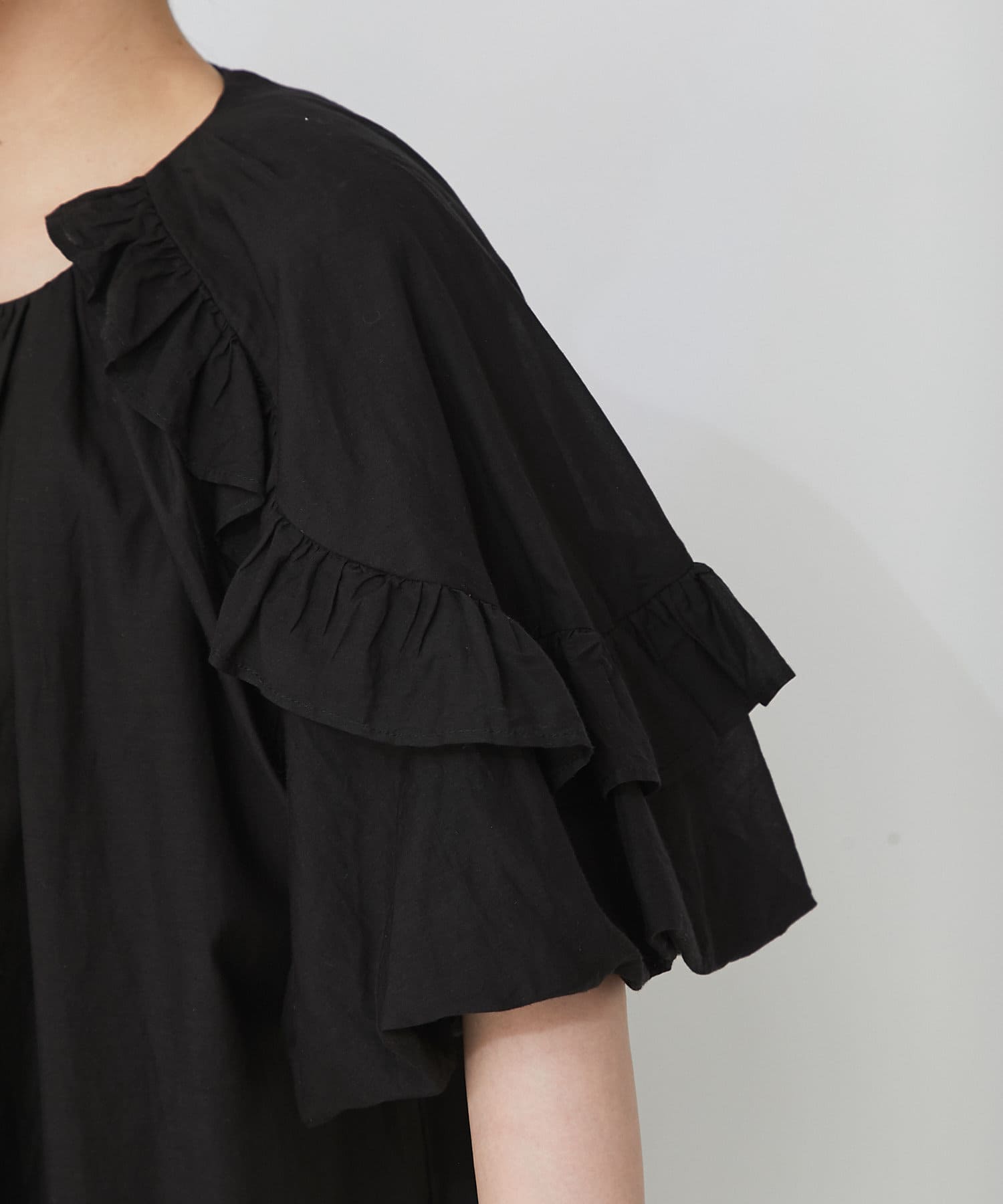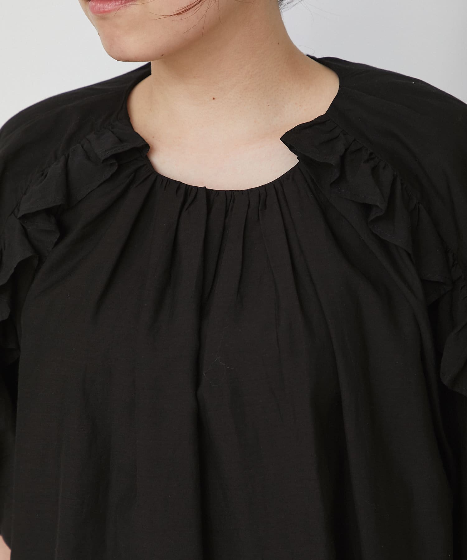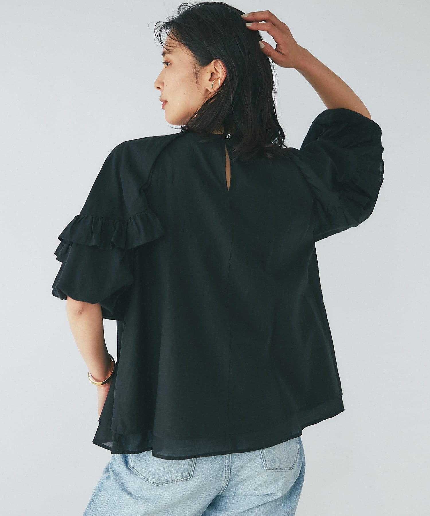綿レーヨン混率で優しい透け感とハリ感が特徴で、春から夏まで着ていただけます。