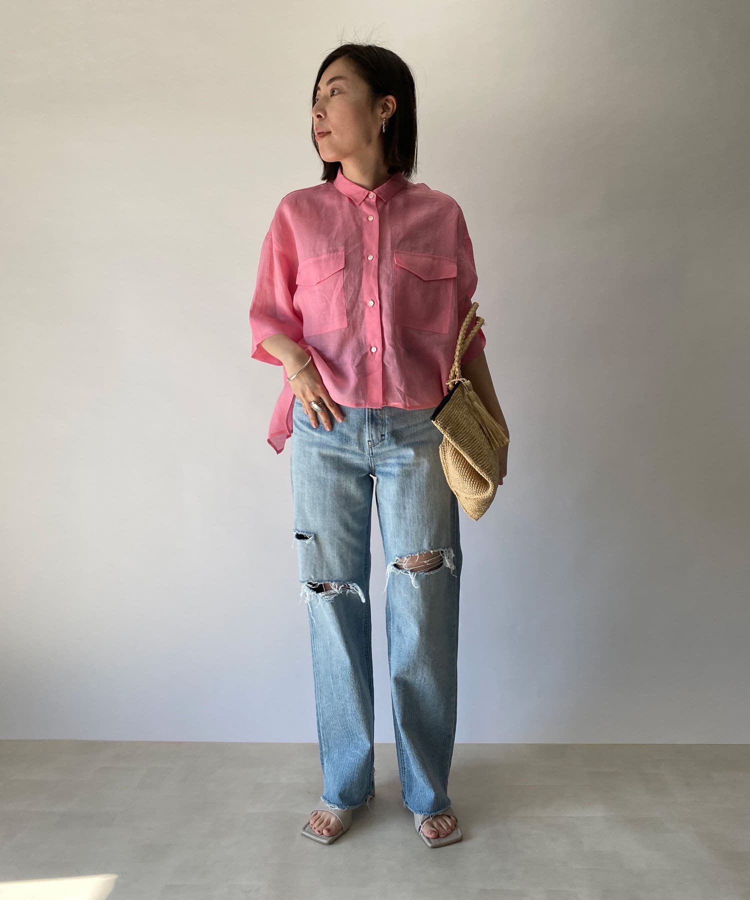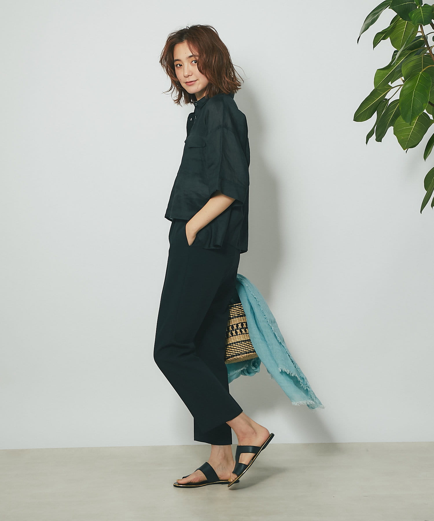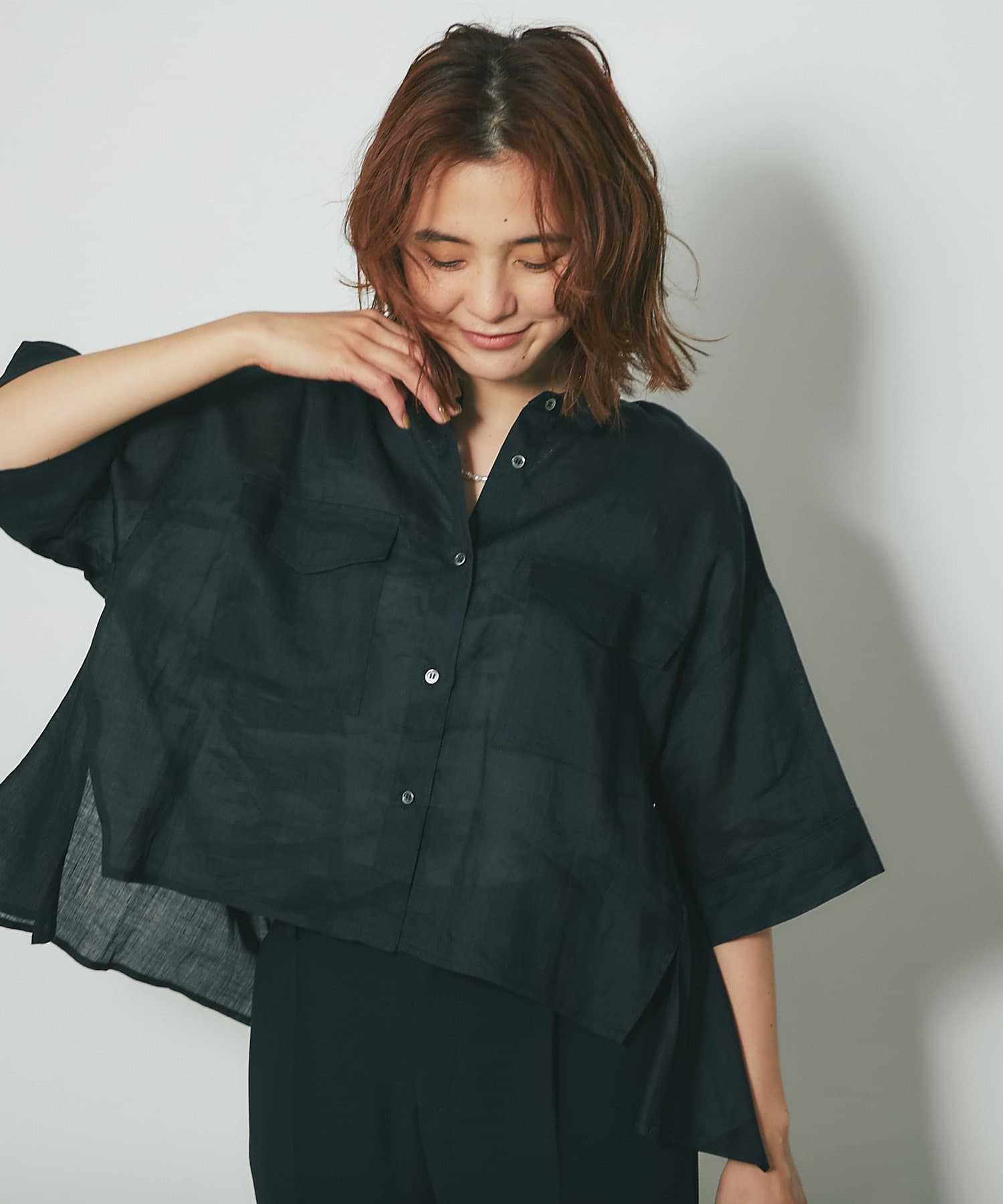 【今季注目のクロップドシャツ】ペーパーリネンクロップドシャツ