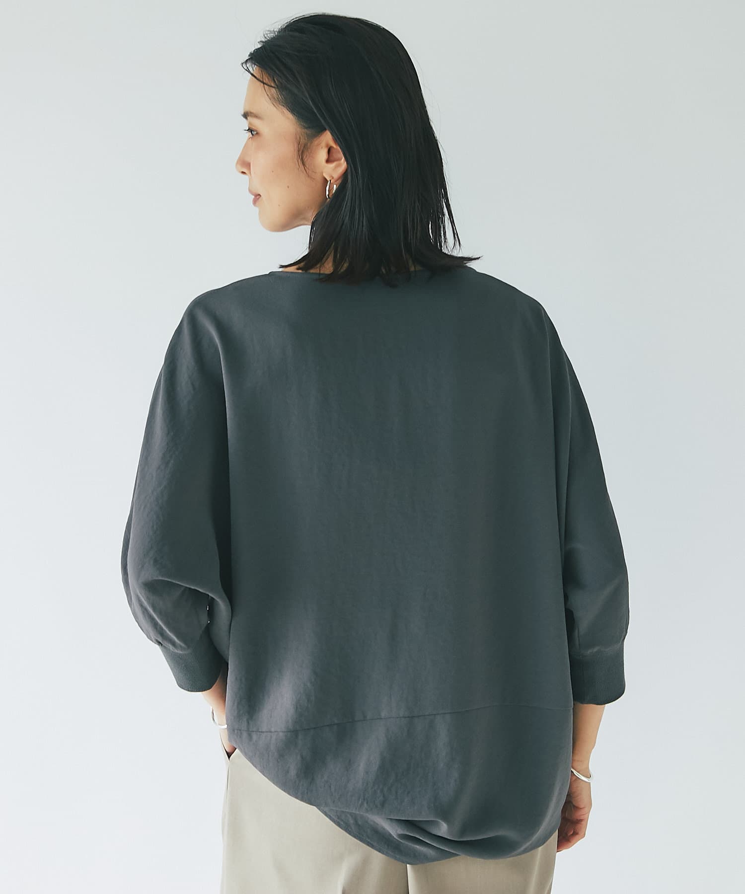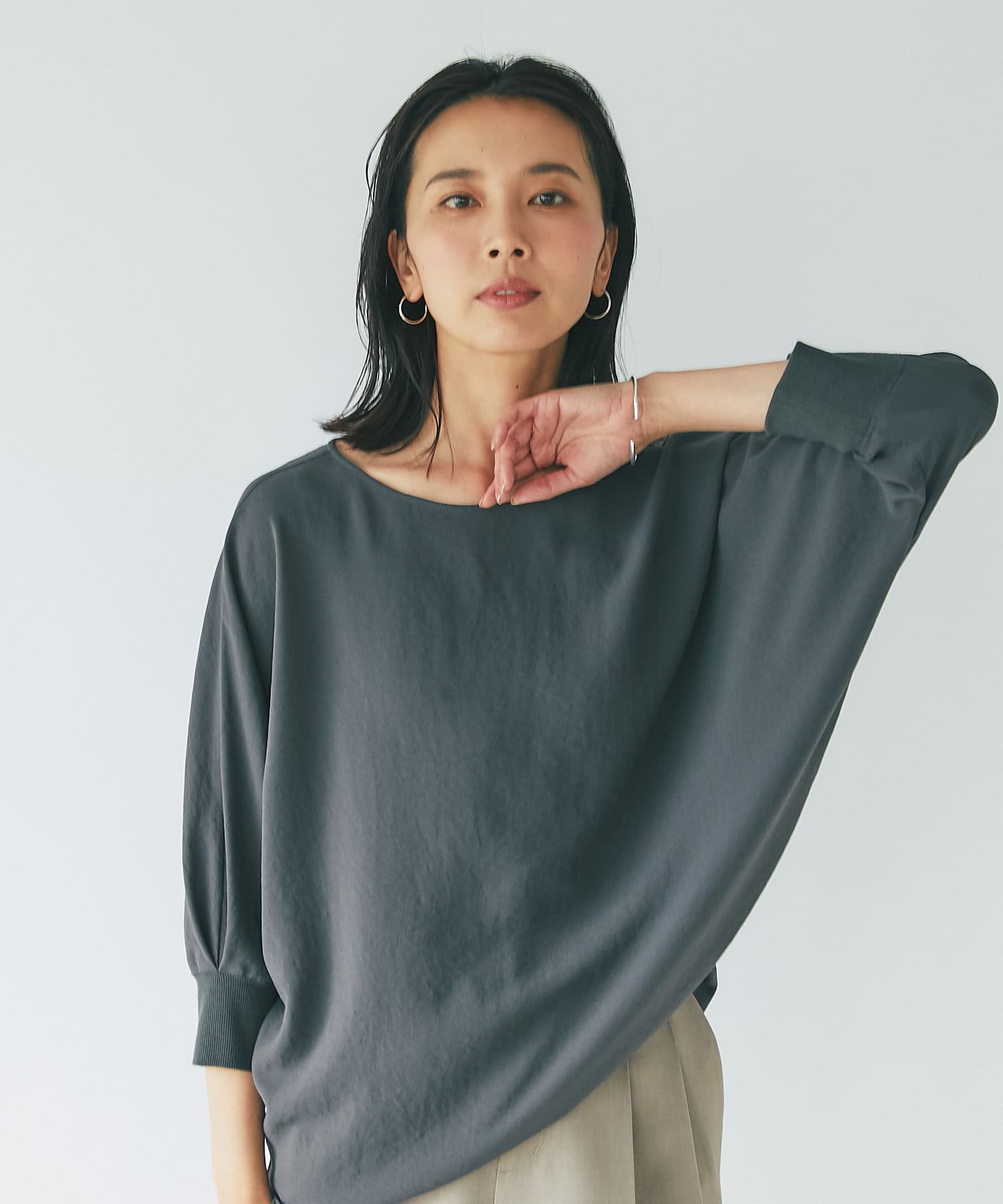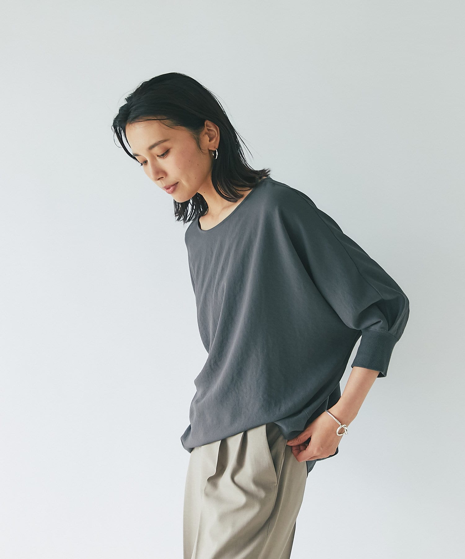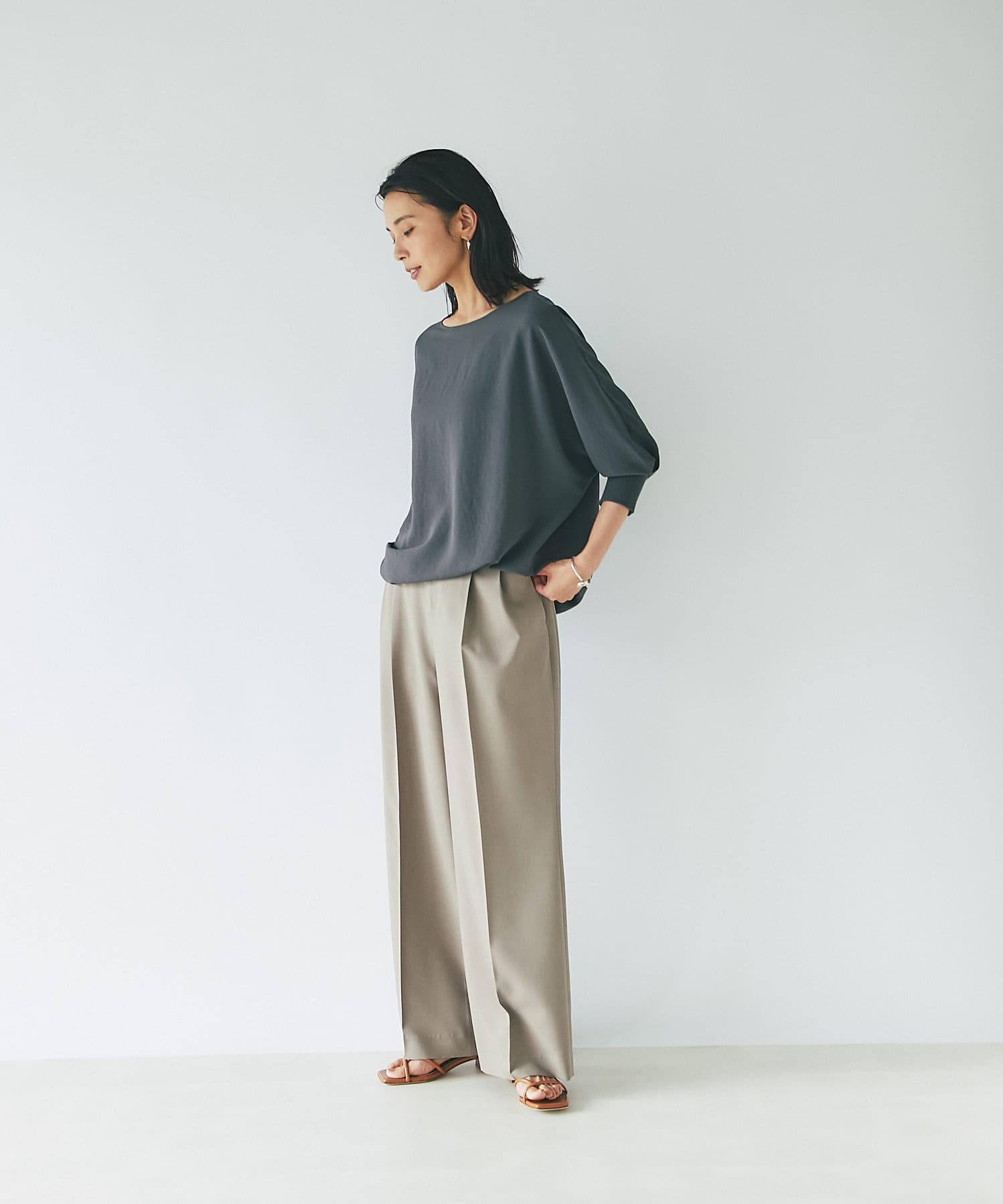 生地には繊細な表面感と落ち感があり、リラクシーで女性らしい印象で着用頂けます。