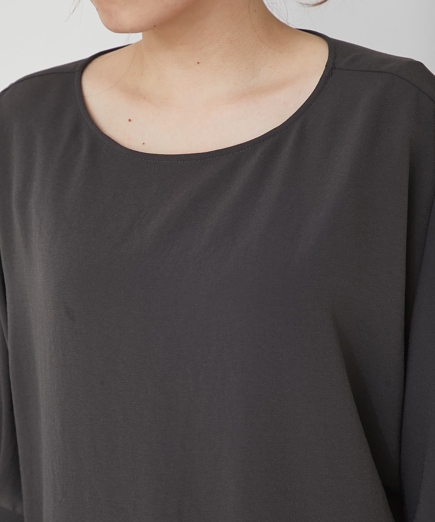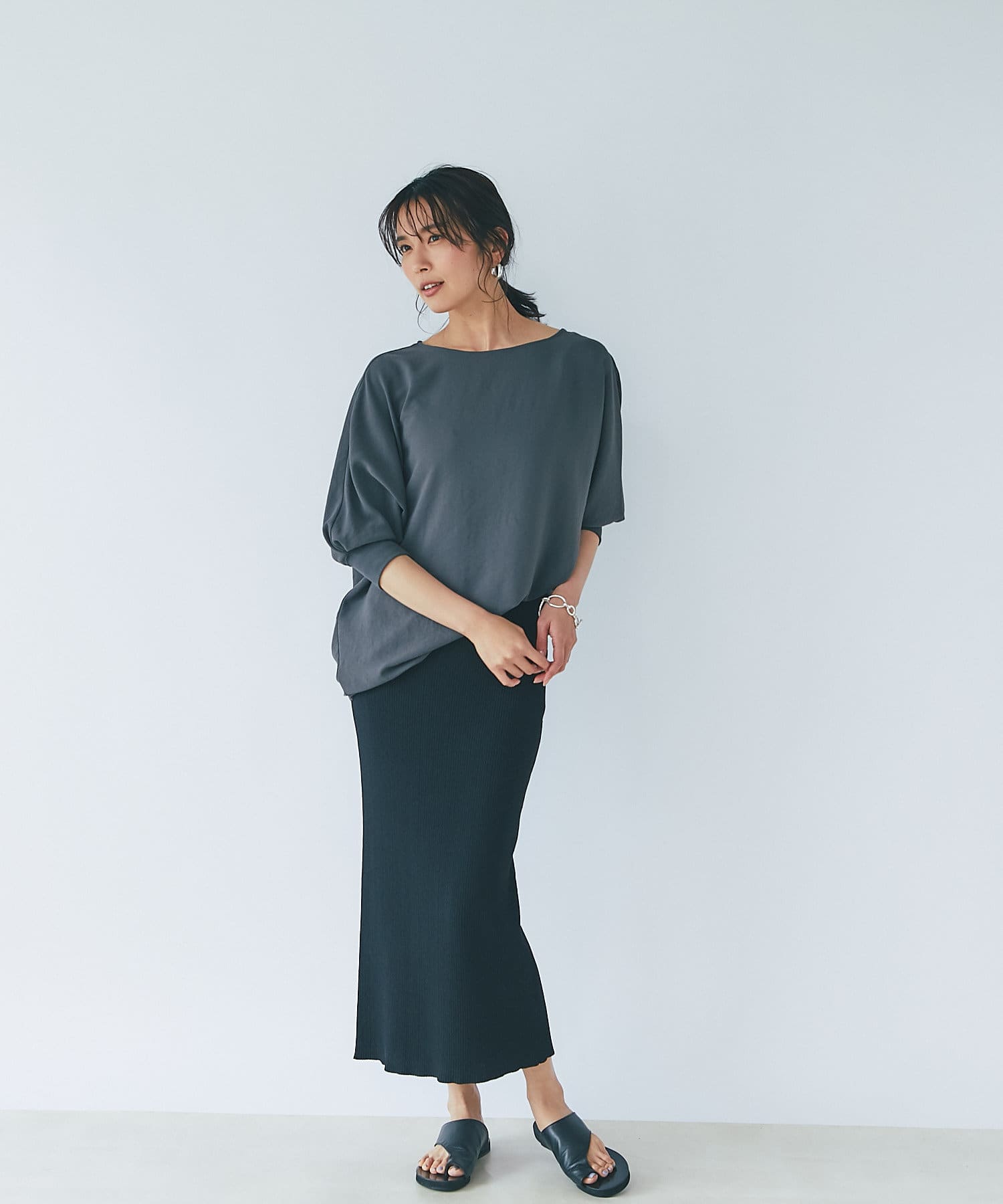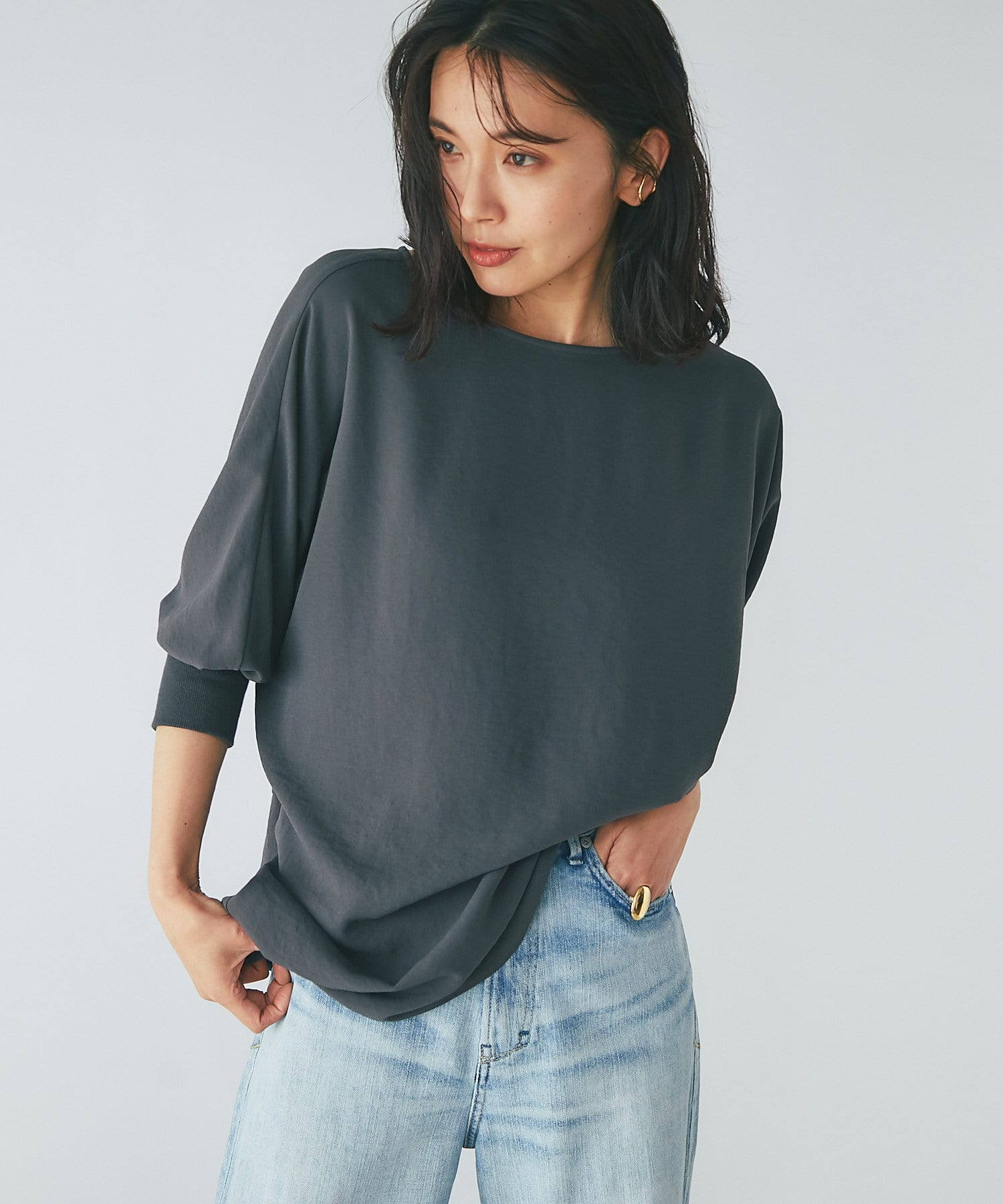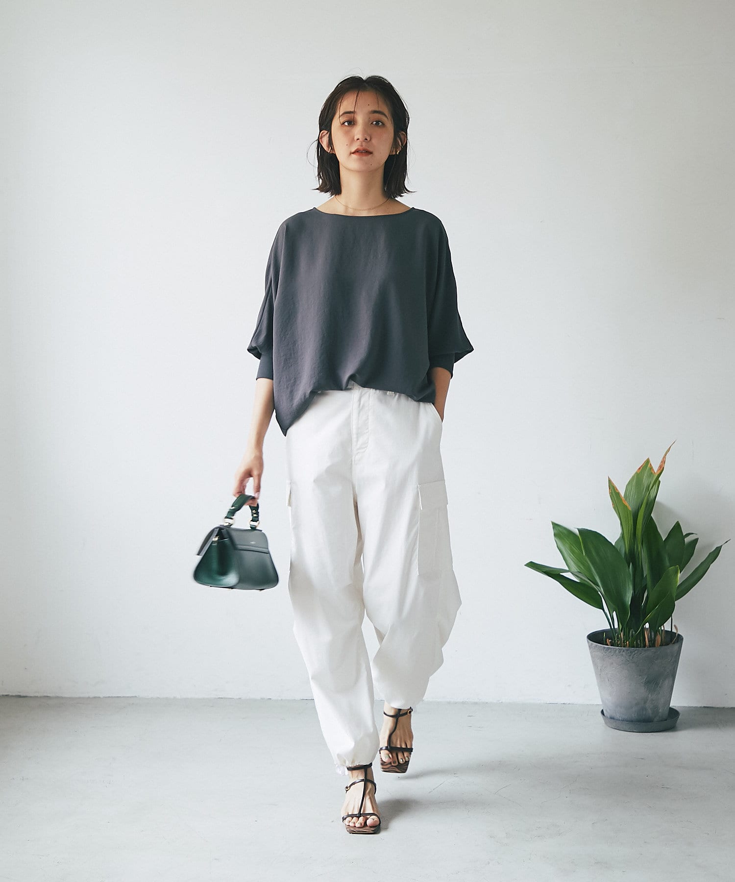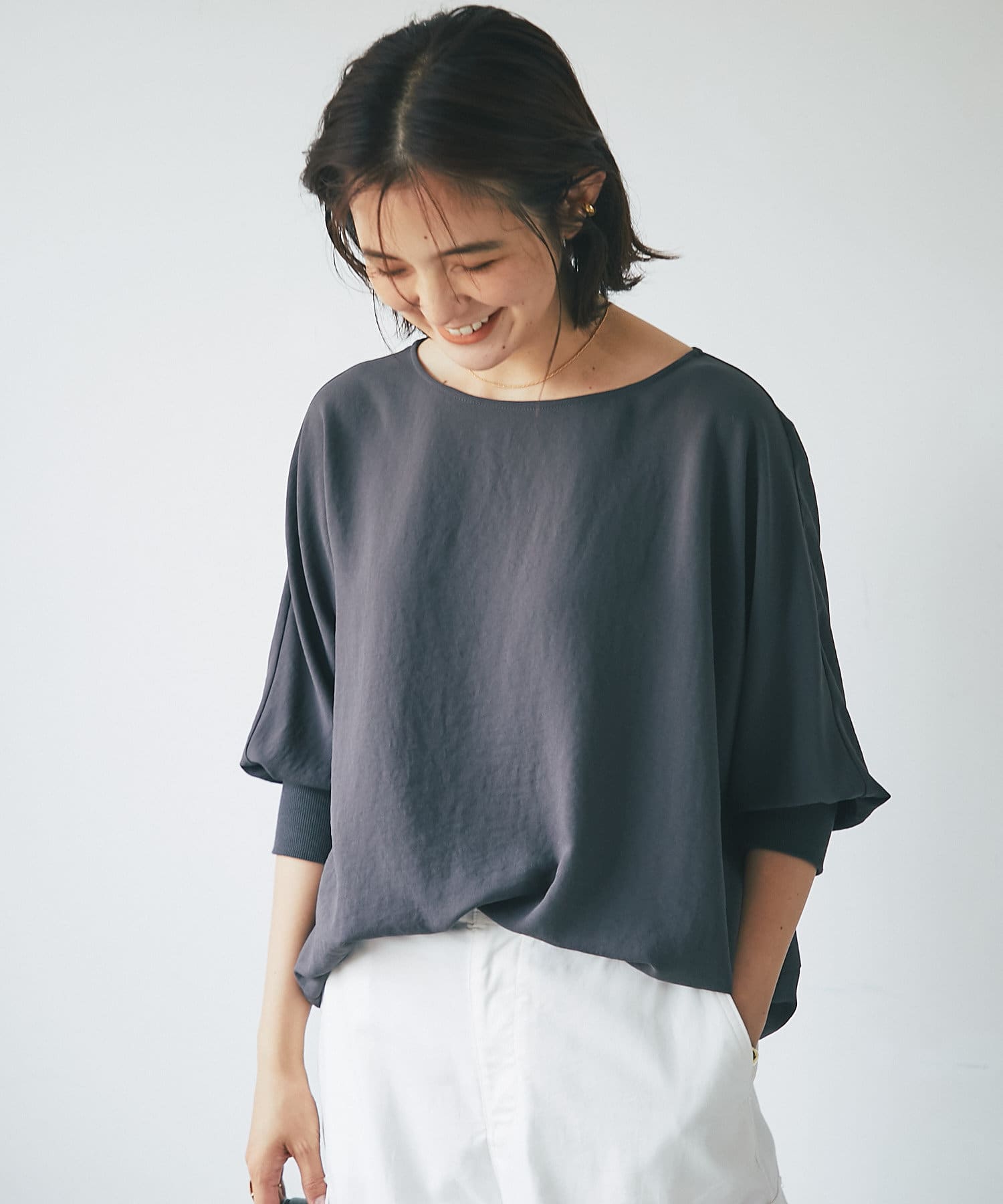 生地には繊細な表面感と落ち感があり、リラクシーで女性らしい印象で着用頂けます。