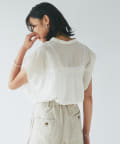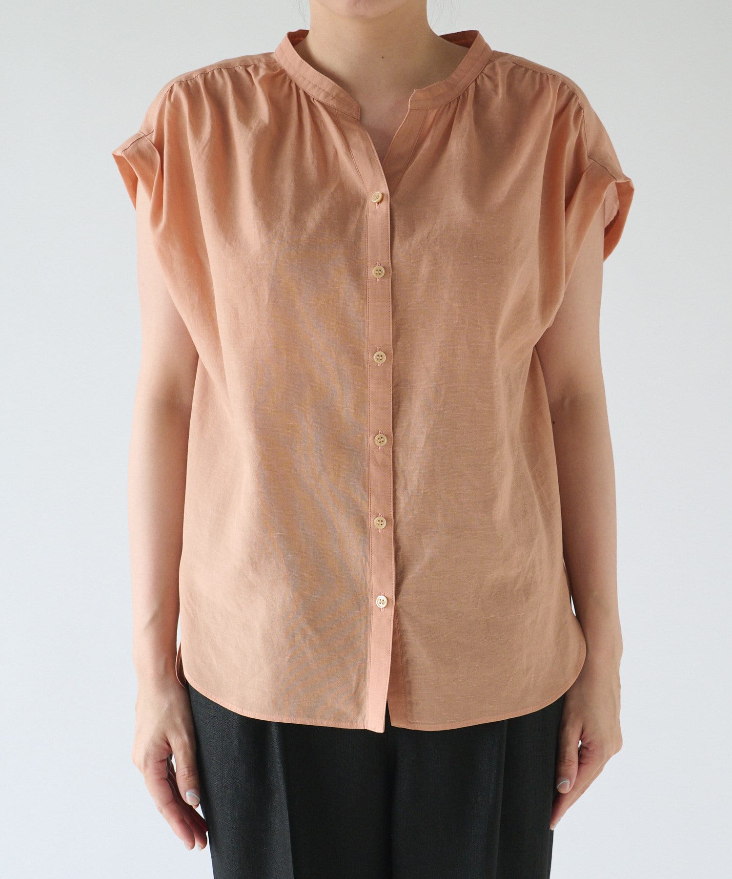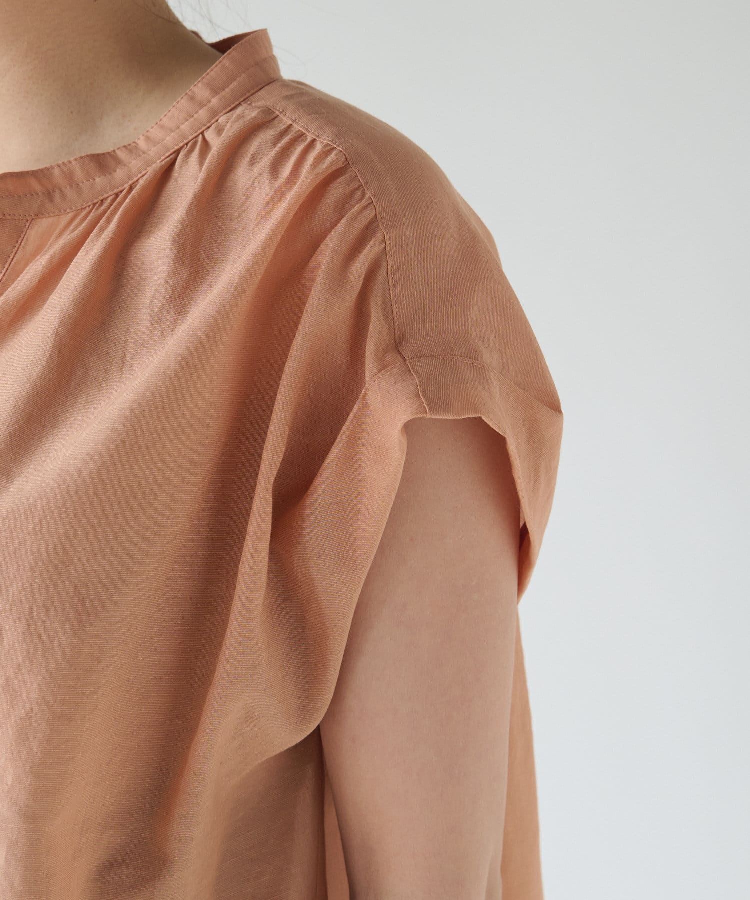ギャザーを入れたフレンチスリーブブラウス。