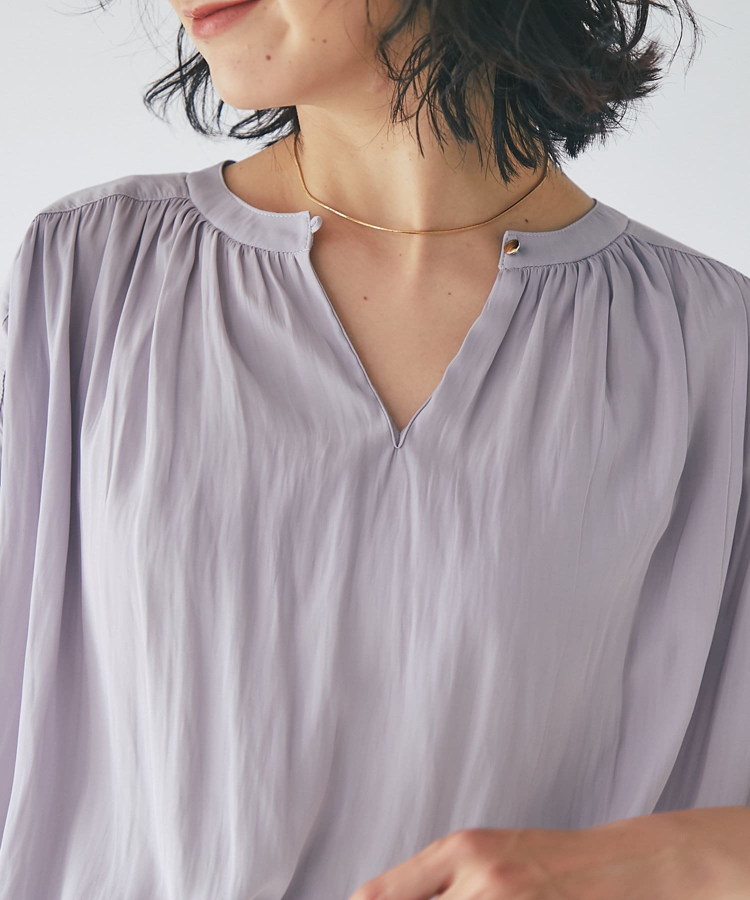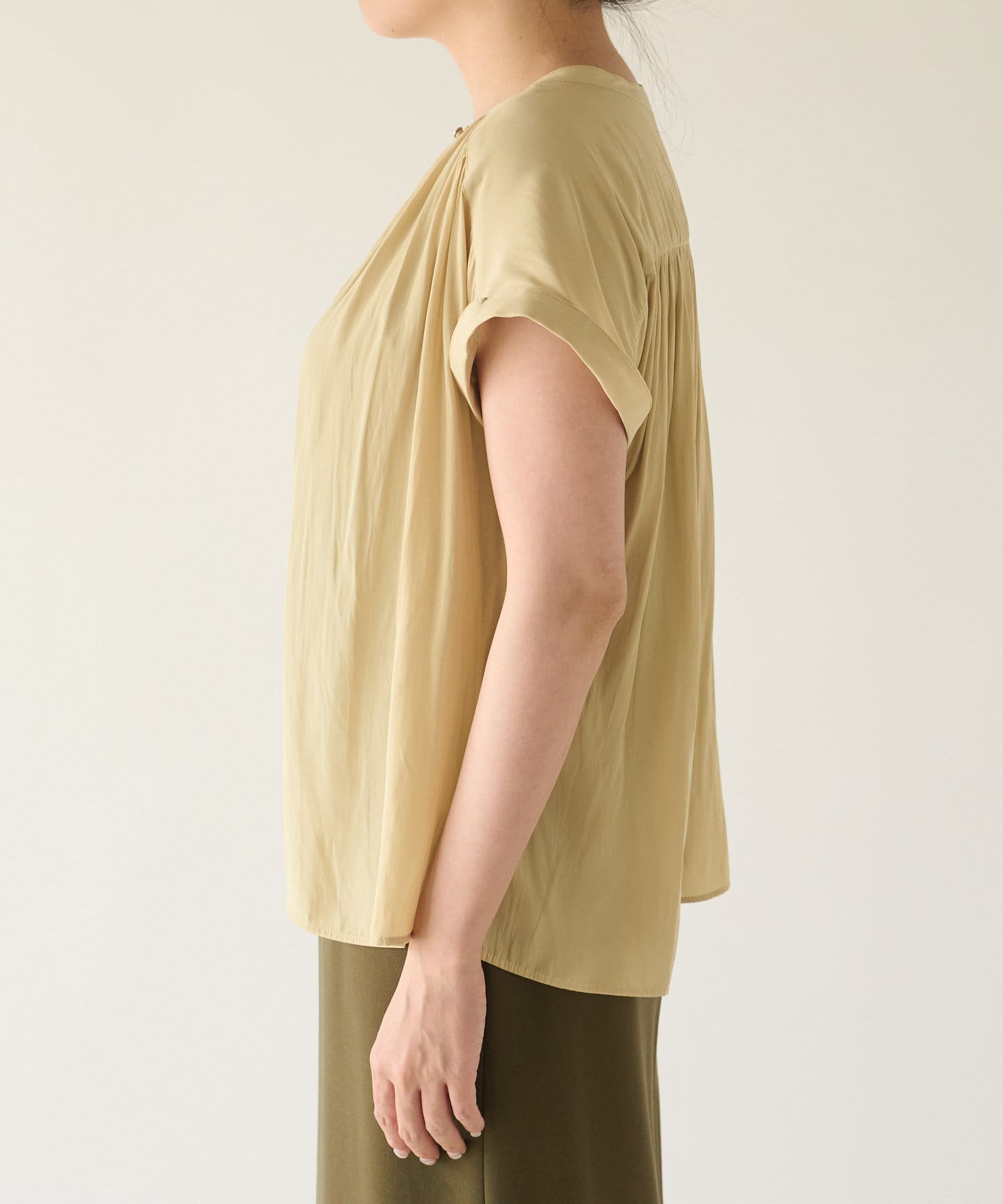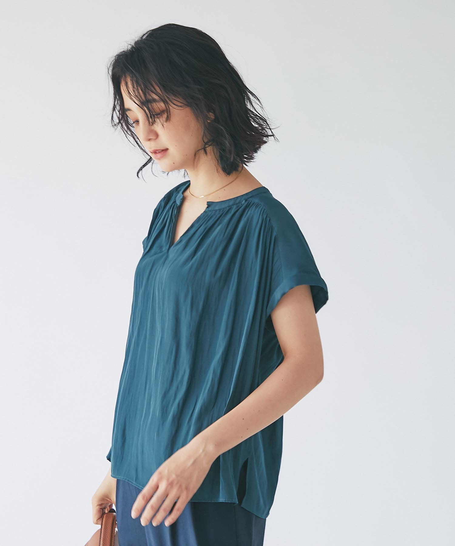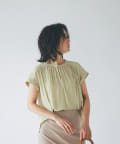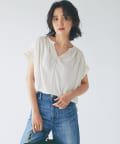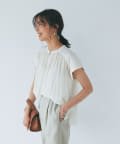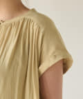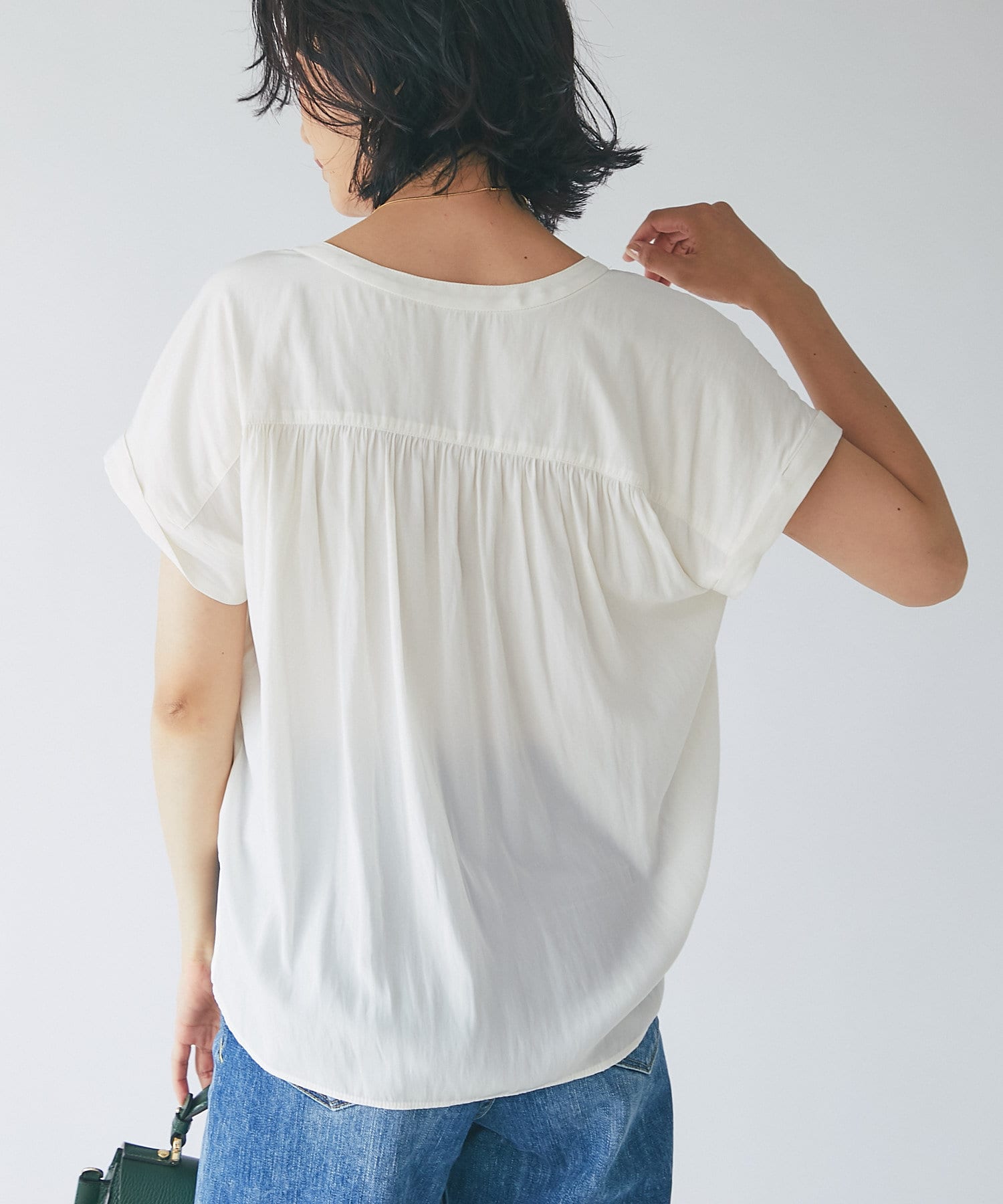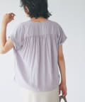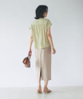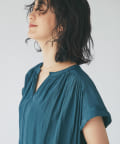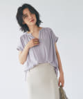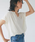 スッキリとした襟元とフレンチスリーブで、ジャケットのインナーなどオフィススタイルに◎